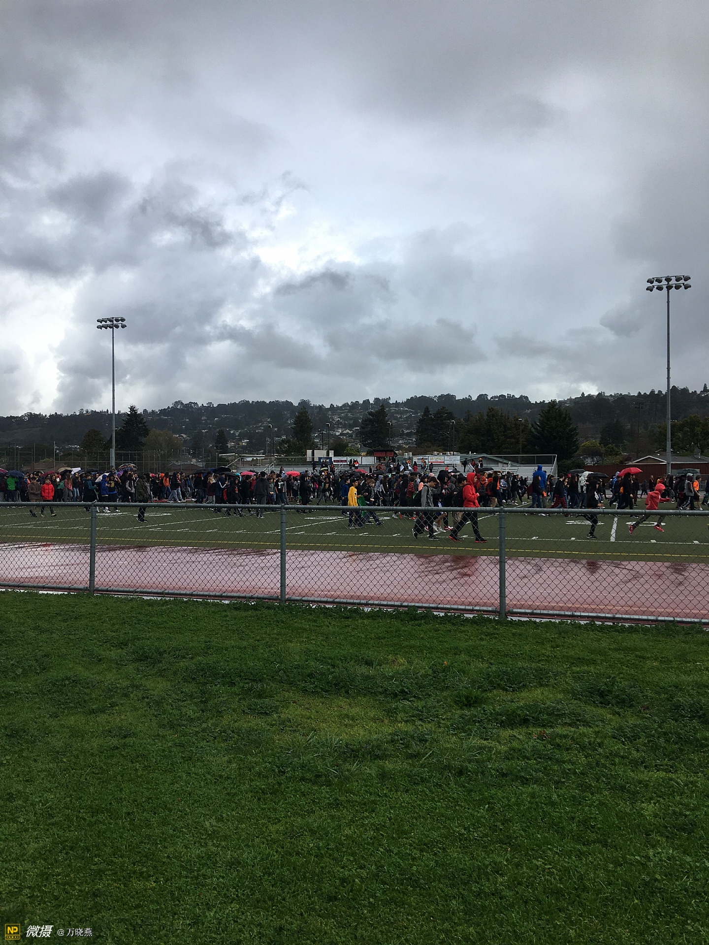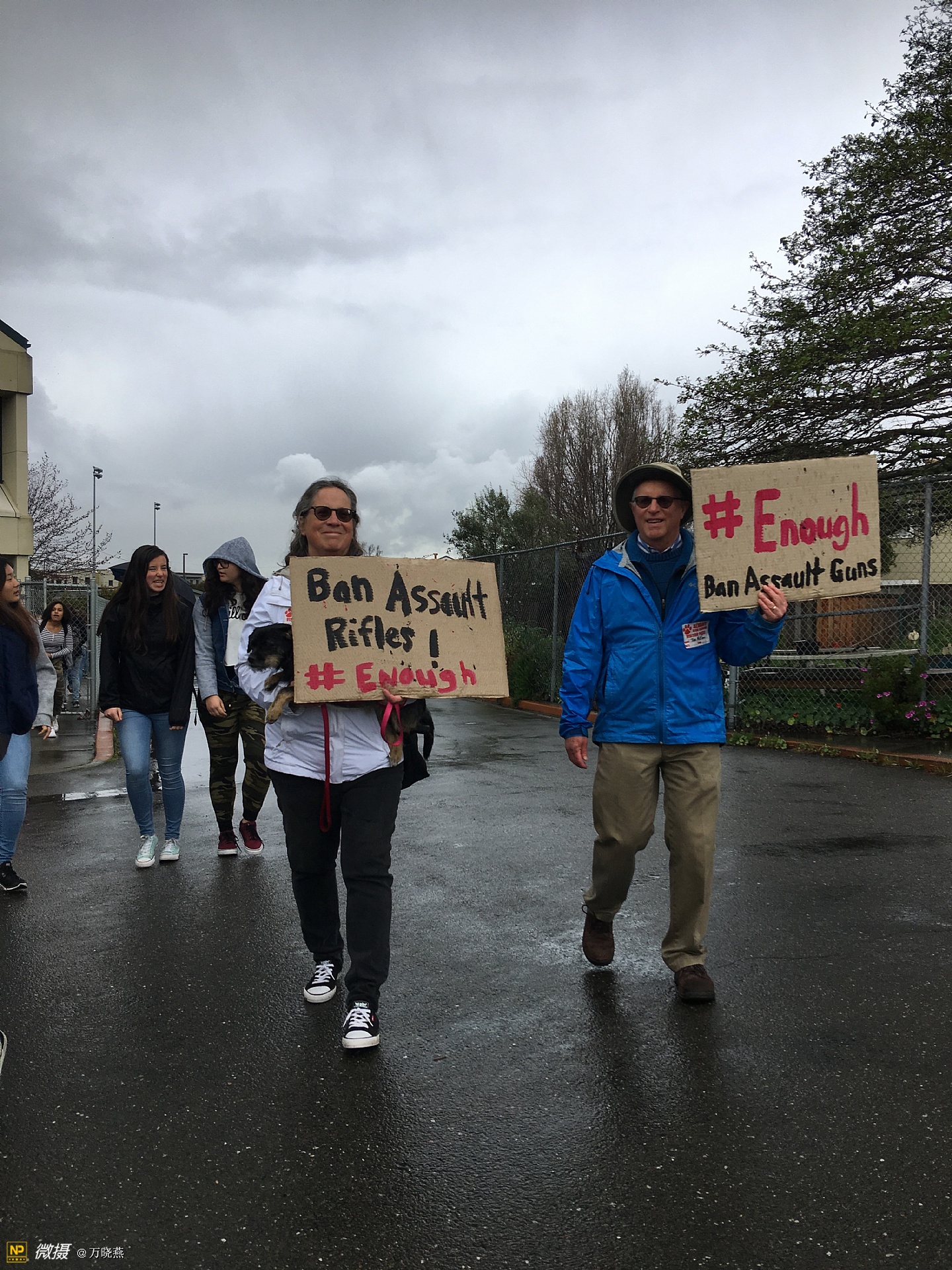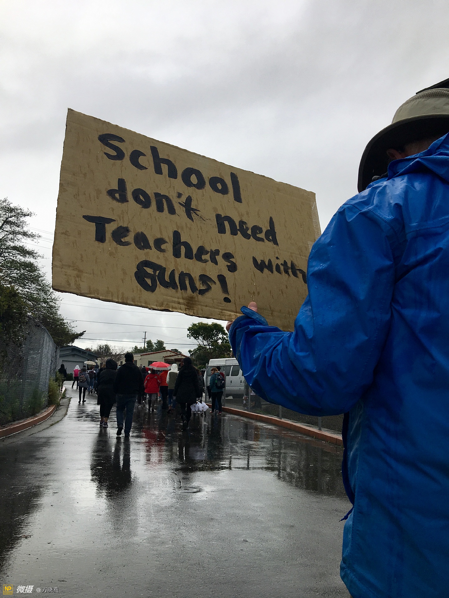 今天上午10::00,东湾阿尔巴尼亚高中师生集体罢课,冒雨悼念全国枪击案中无辜遇袭的死难者、抗议枪子弹药的暴力事件给校园师生带来的恐惧与伤痛...佛州的悲剧、更激起师生对同类事件的强烈反响,据悉湾区多个校区今日发出响应罢课抗议,”.....淅淅沥沥的雨水老天眷顾,动容