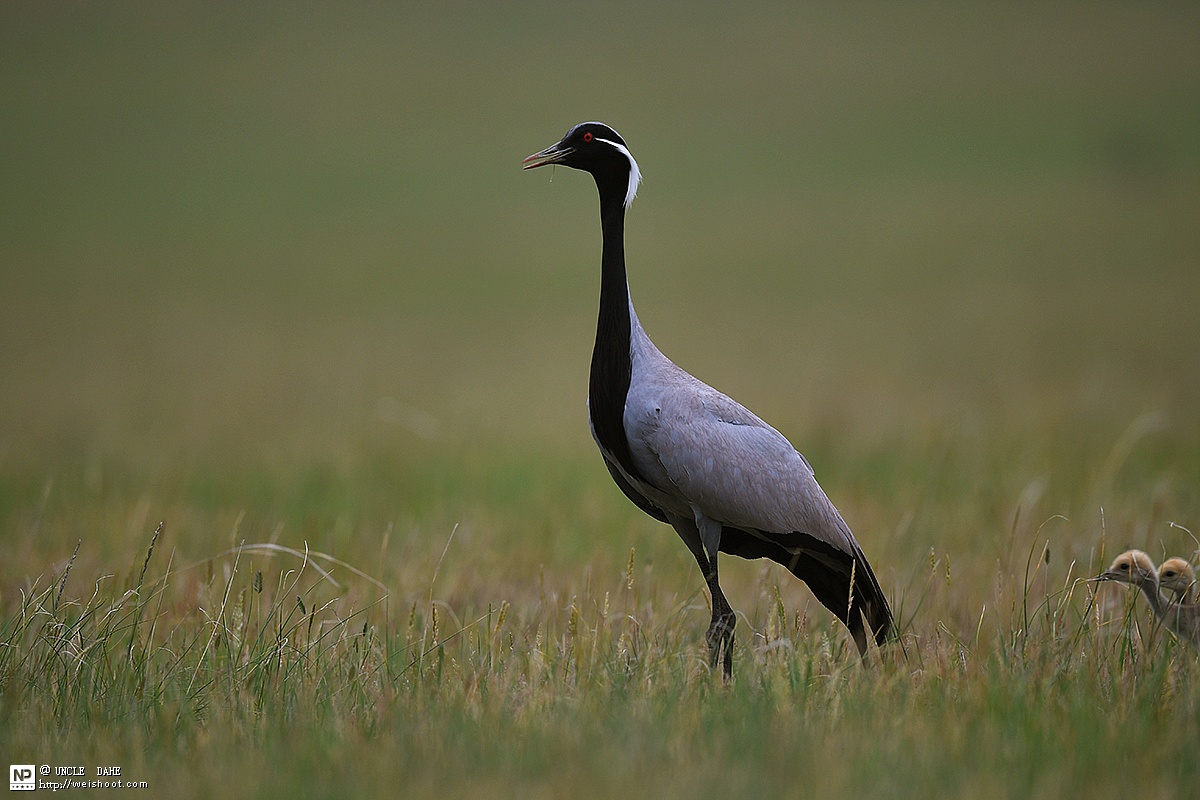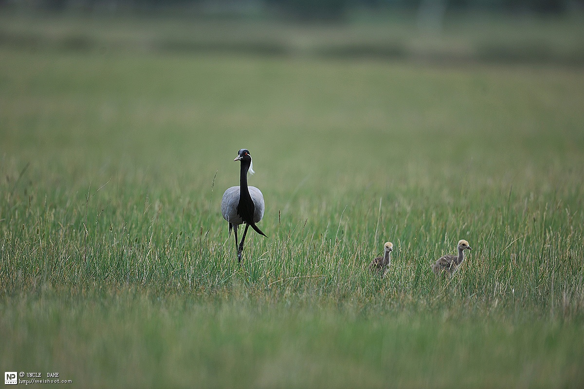 另一对蓑羽鹤带着宝宝也出现在我们的镜头中……