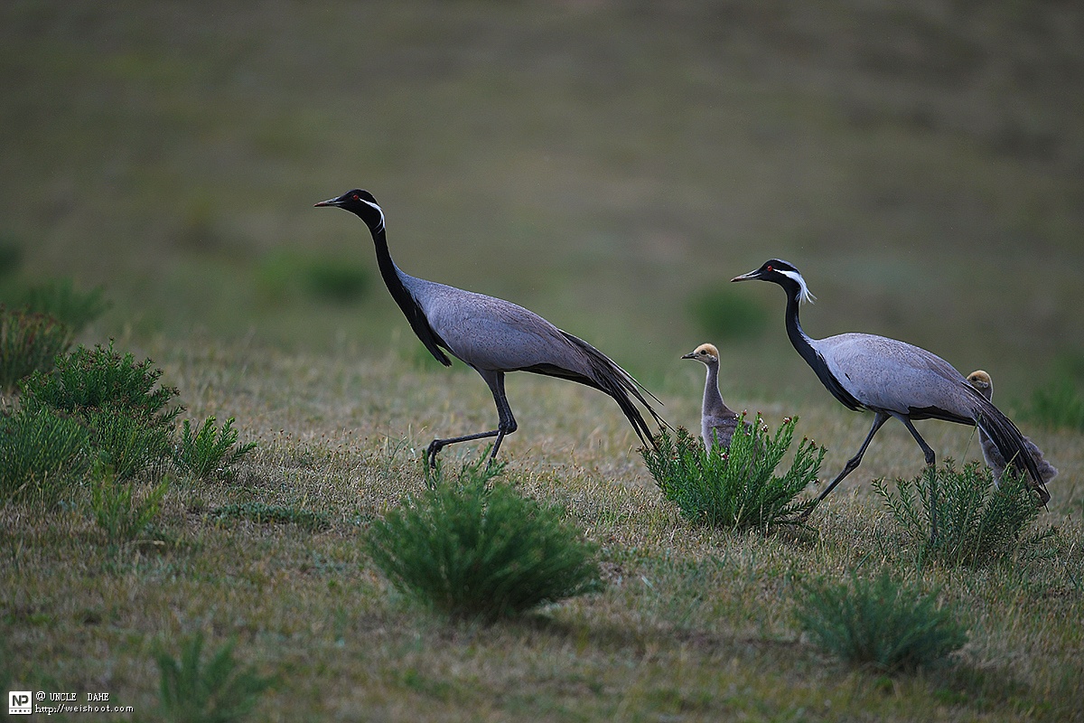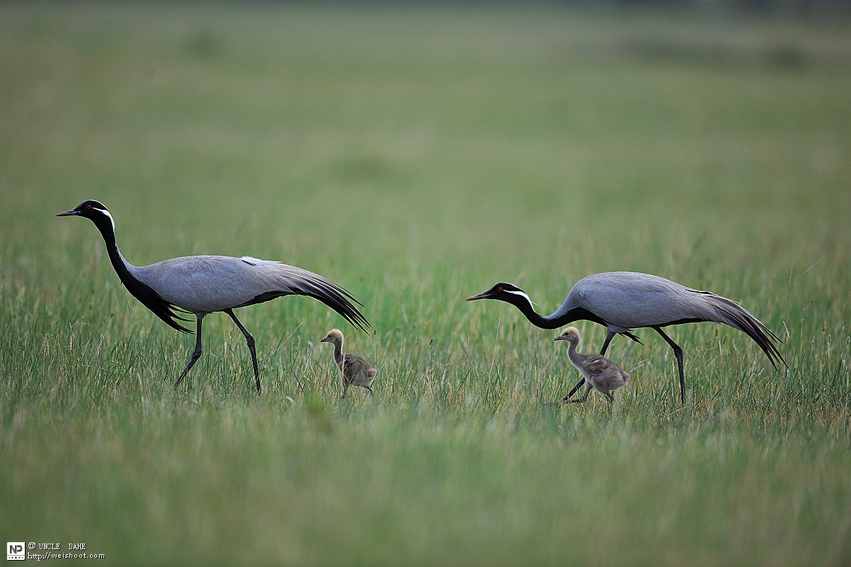 两小时后,我们又在另一个地方找到了另一对蓑羽鹤和它们的两个宝宝。