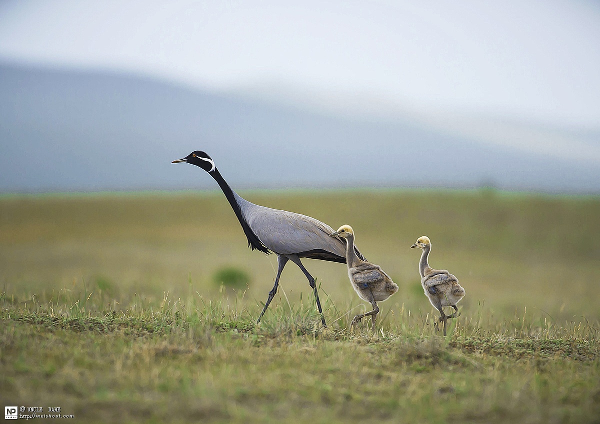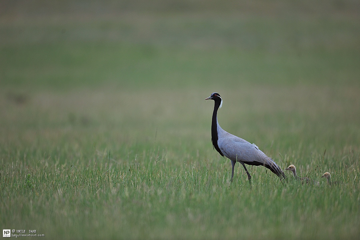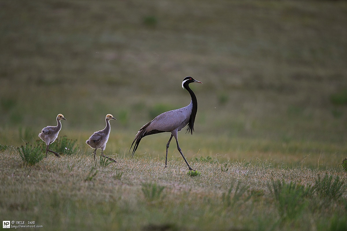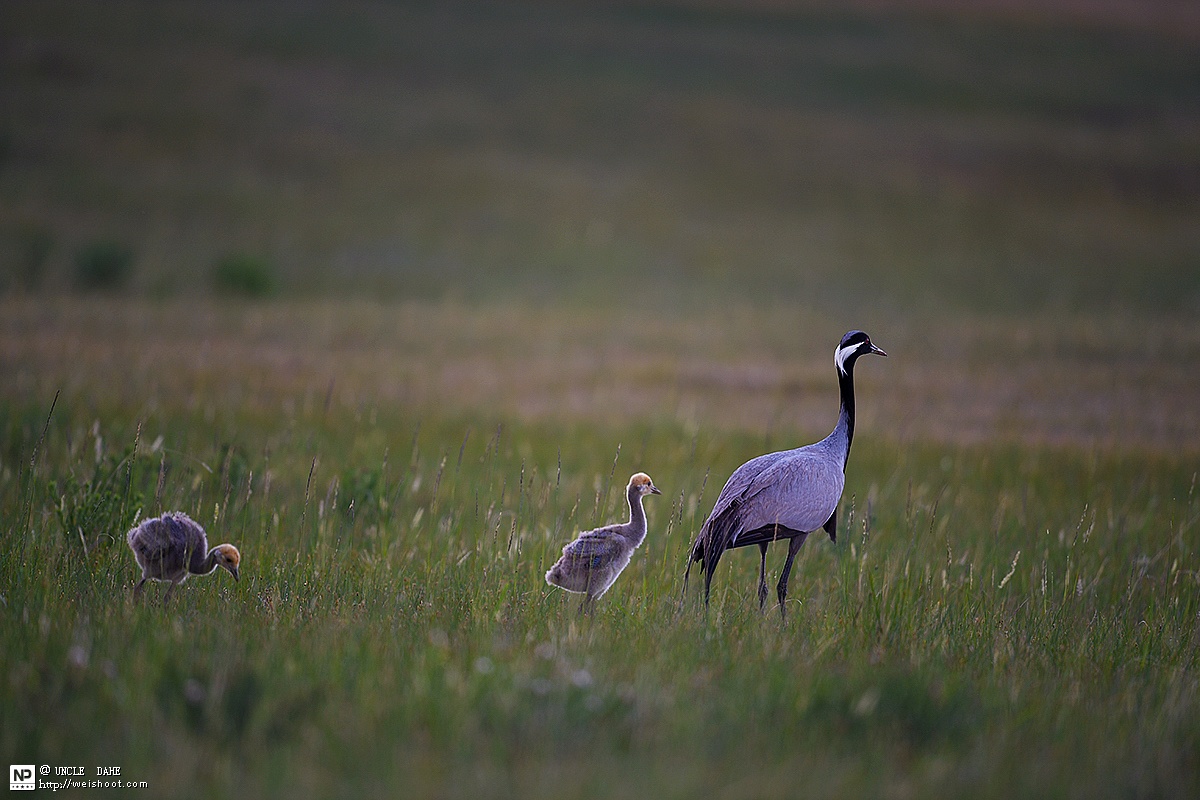 雨过天晴,内蒙古大草原上美丽的黄昏到来了。蓑羽鹤带着它们的孩子们在草原上放歌,歌声不时回荡在我的耳边……在过几个月,等待孩子展翅时,蓑羽鹤将带着它们的孩子远行,它们将飞越喜马拉雅山到达印度……此刻,仿佛听到天空中有人在说话:苦吃在哪里,心用在哪里,成果就会出现在哪里……