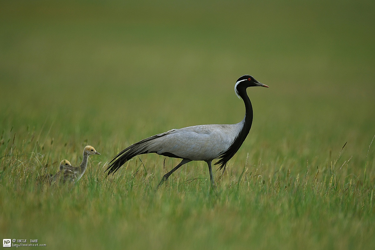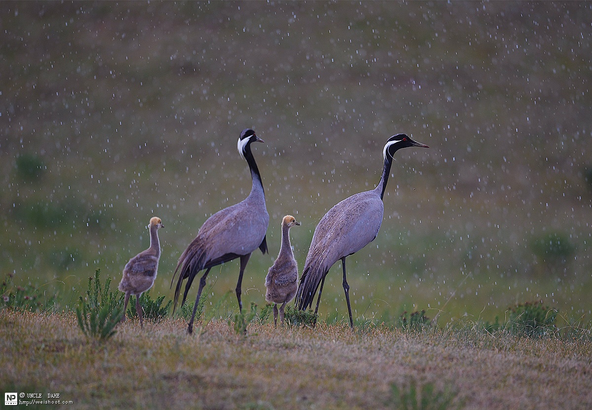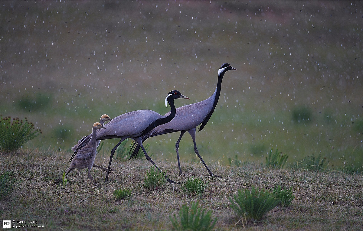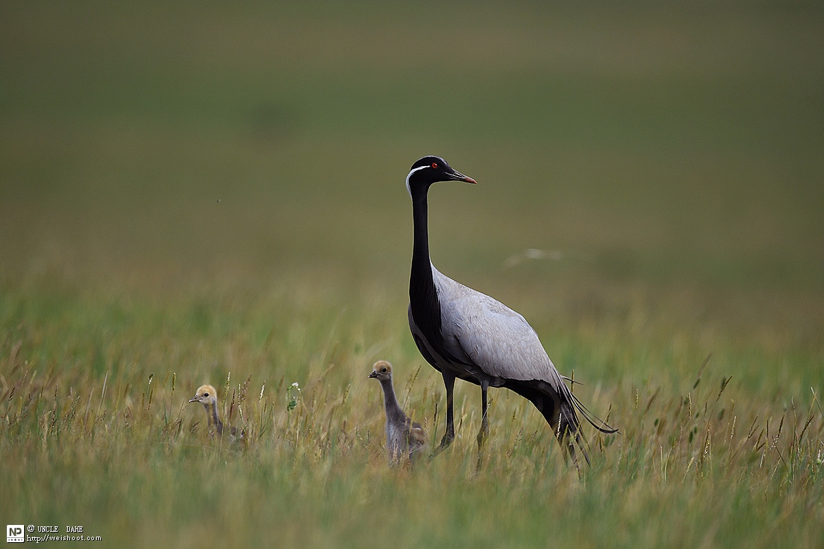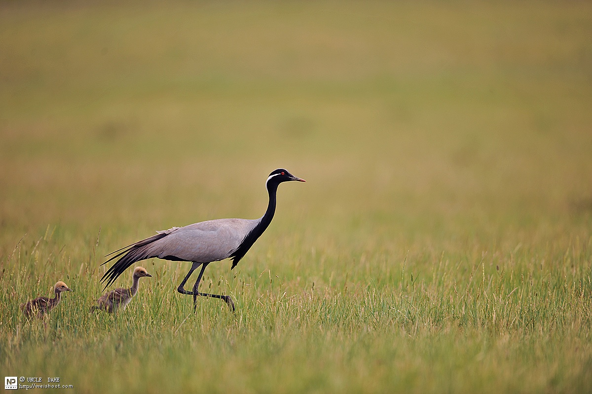 雨过天晴,内蒙古大草原上美丽的黄昏到来了。蓑羽鹤带着它们的孩子们在草原上放歌,歌声不时回荡在我的耳边……在过几个月,等待孩子展翅时,蓑羽鹤将带着它们的孩子远行,它们将飞越喜马拉雅山到达印度……此刻,仿佛听到天空中有人在说话:苦吃在哪里,心用在哪里,成果就会出现在哪里……