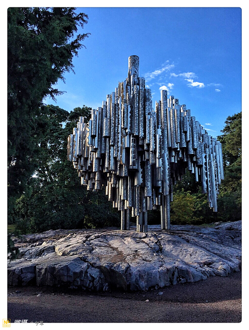 西贝柳斯纪念碑西贝柳斯公园坐落在赫尔辛基市中心西北角,是为了纪念芬兰的大音乐家西贝柳斯而建的。园内巨型管风琴纪念碑是以铁管组合成超现实意向的造型,洋溢着浓厚的现代气息。