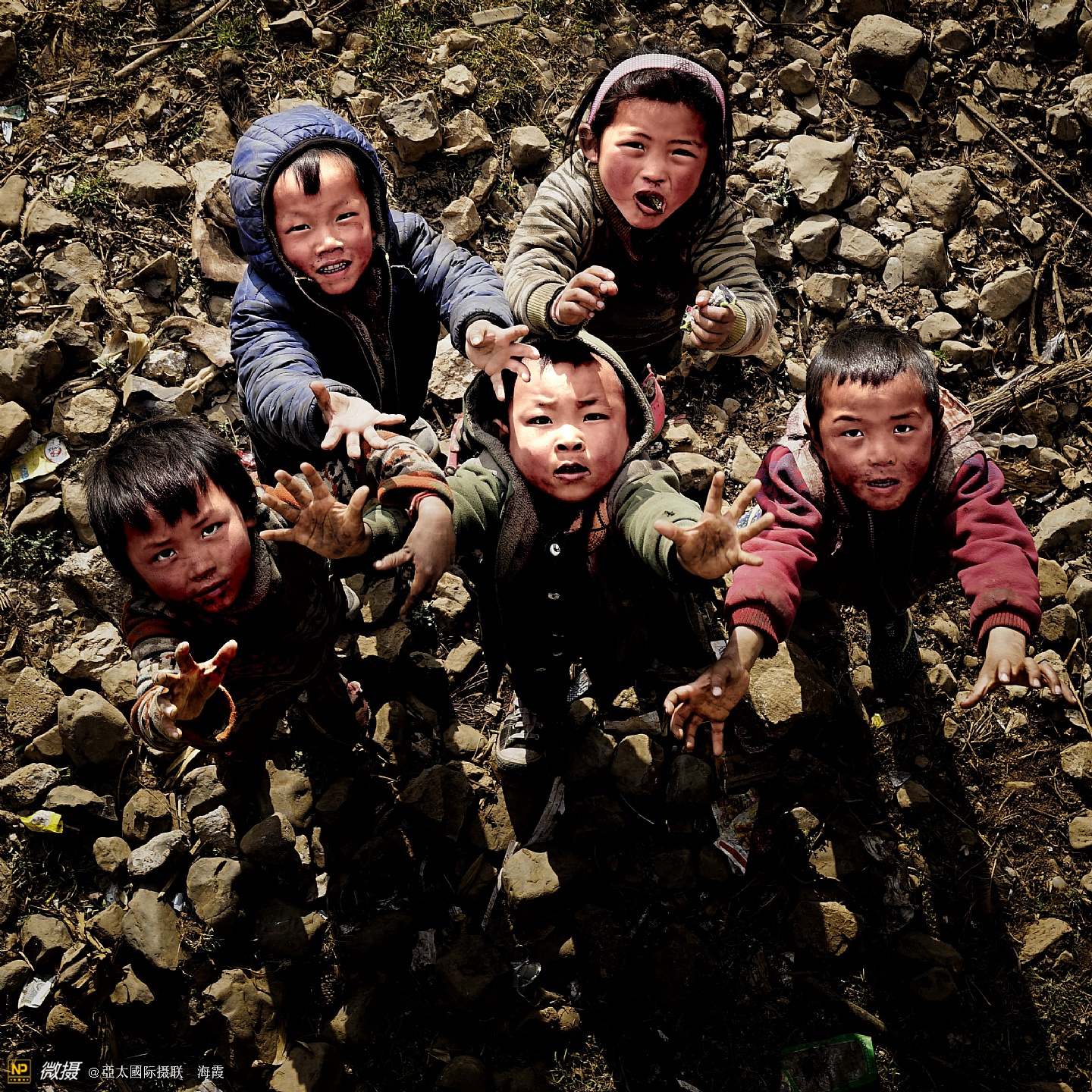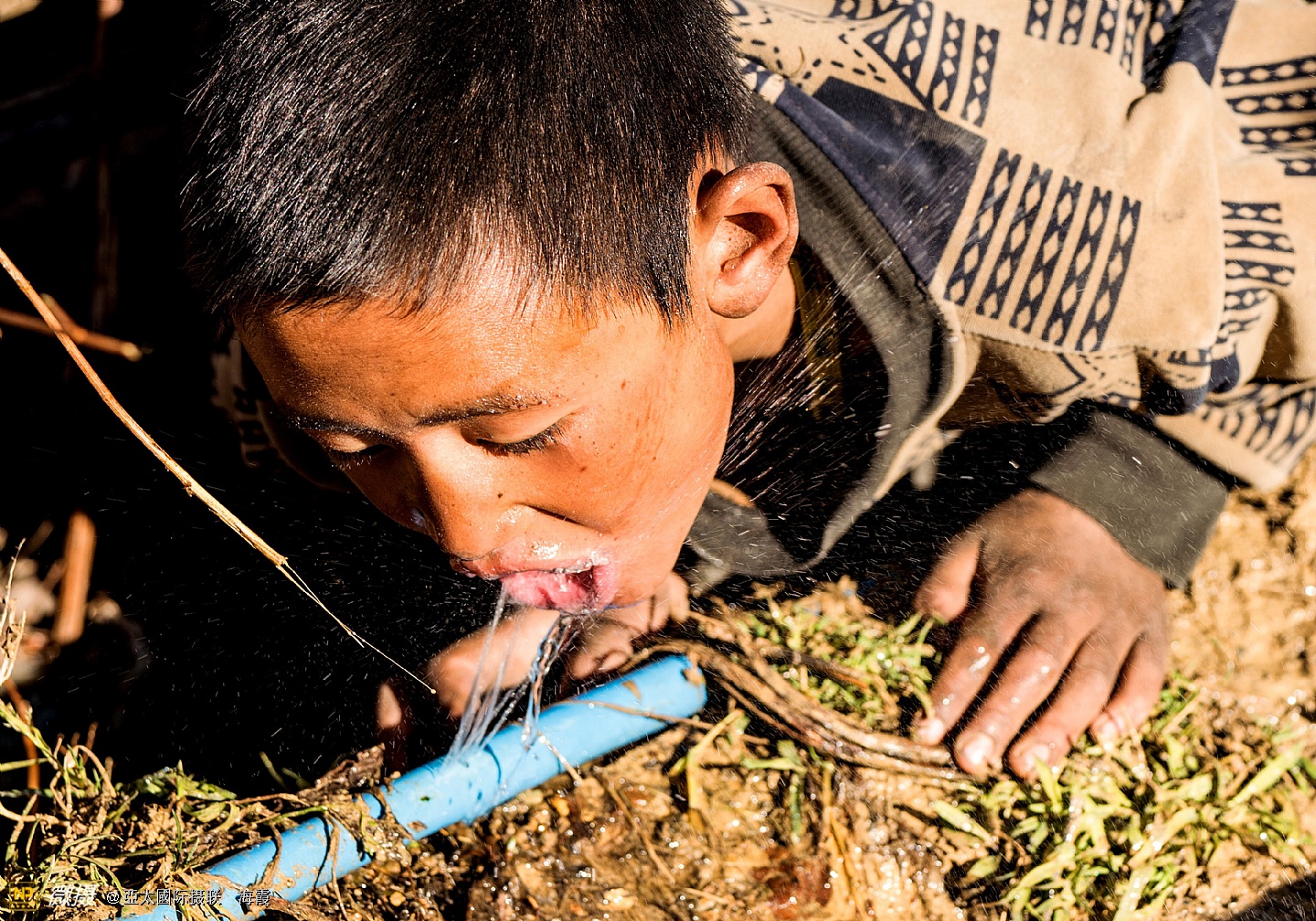 可怜的孩子们就是这样爬在地上喝水的