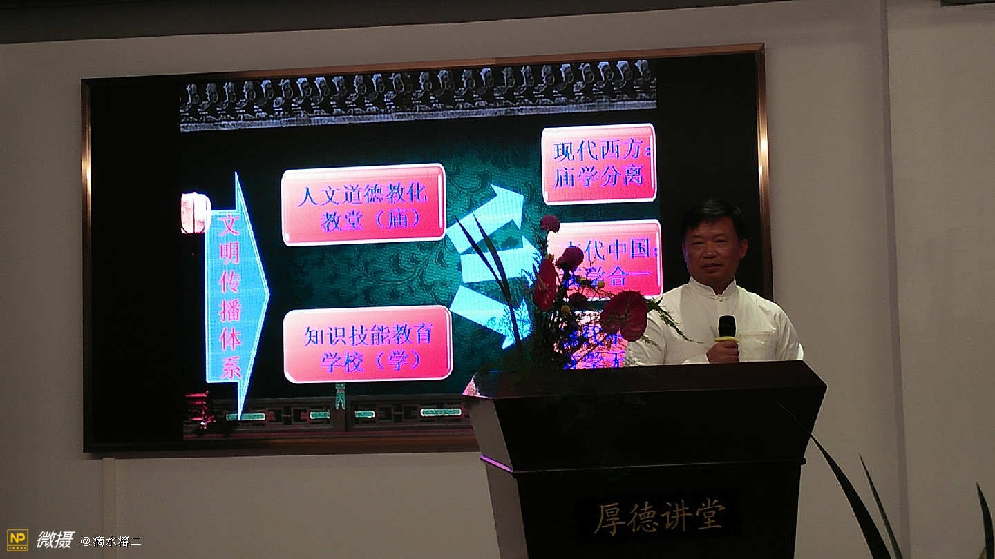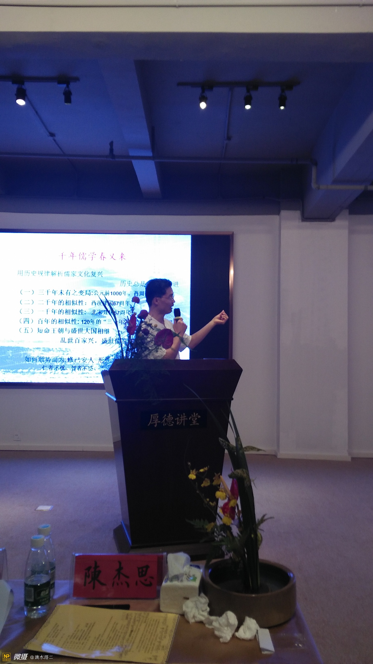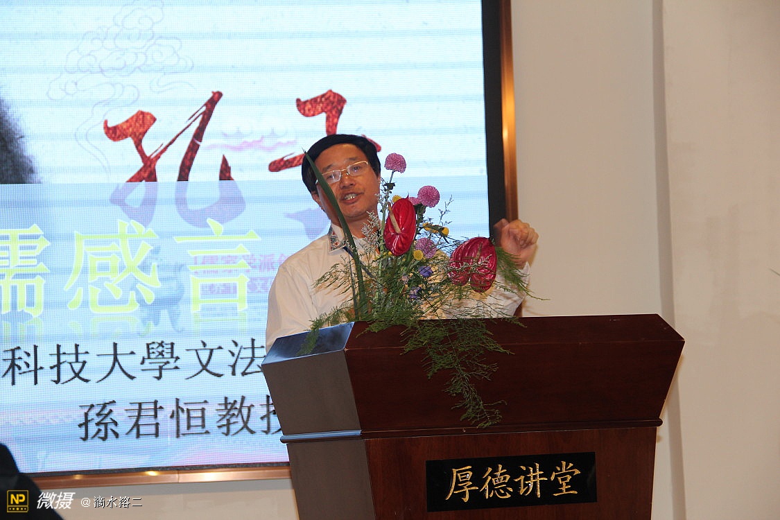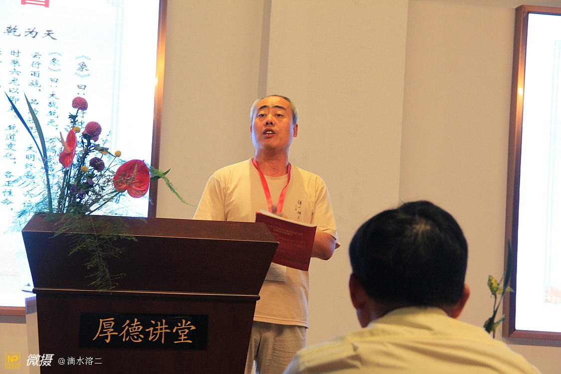 来自中华人文始祖伏羲·女娲故乡的天水师范学院赵铁成老师作主题演讲——“弘道养正与建构和谐社会的基本理念”