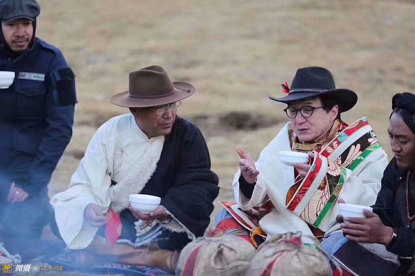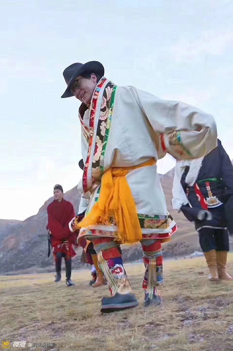 国际巨星成龙在澜沧江源第一县——玉树州杂多县,和当地藏人一起在海拔4000米的高原草地上跳起欢乐的格吉锅庄。[抱拳]