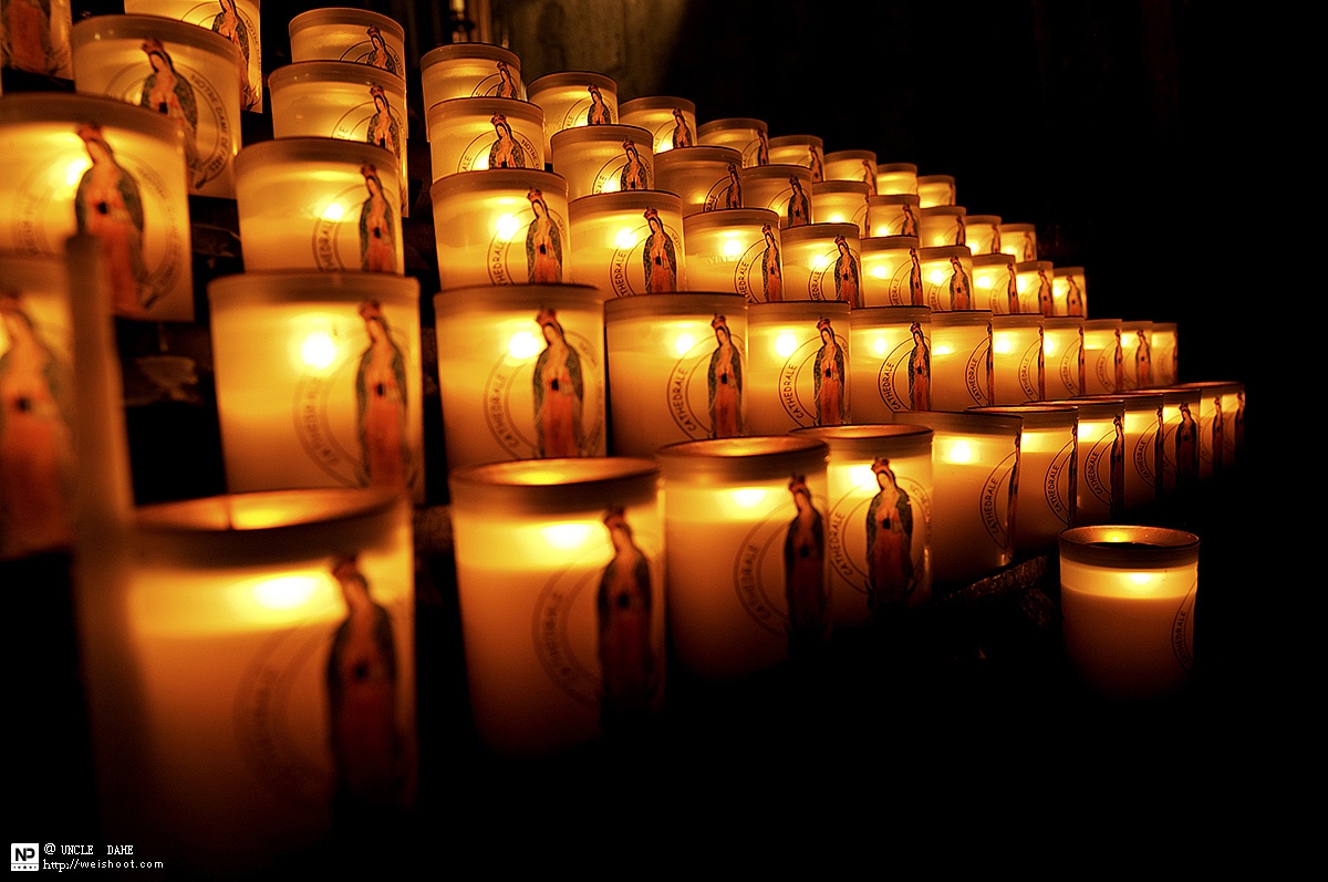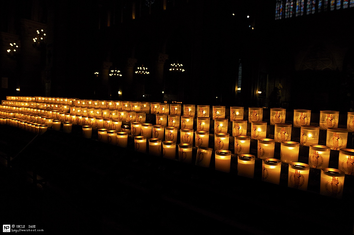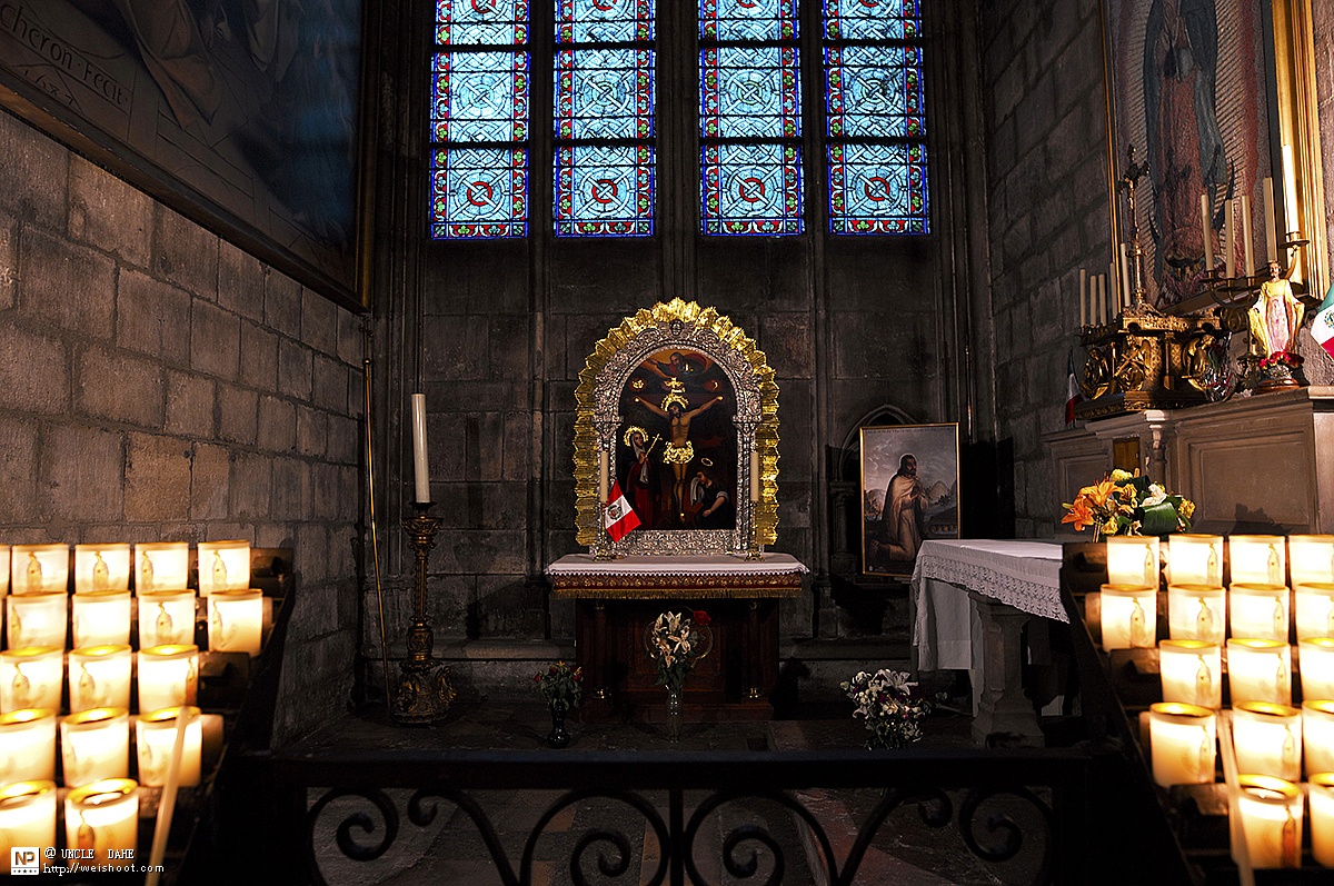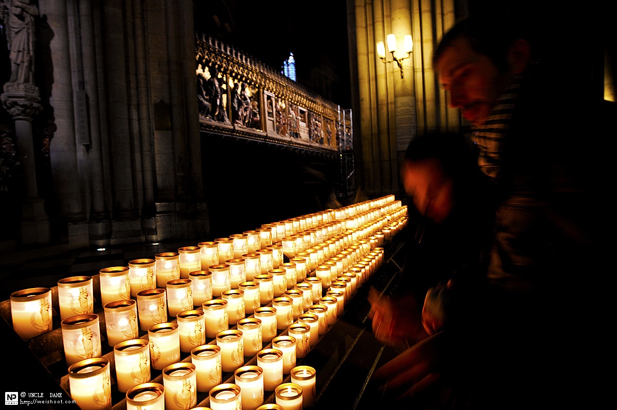 清晨的巴黎圣母院,很安静,安静到让你感受到信仰的可怕和畏惧。三五个教徒,虔诚的在礼拜和冥想,让我不敢对着他们拍照。 教堂里面有好多种烛台,5欧元一只。