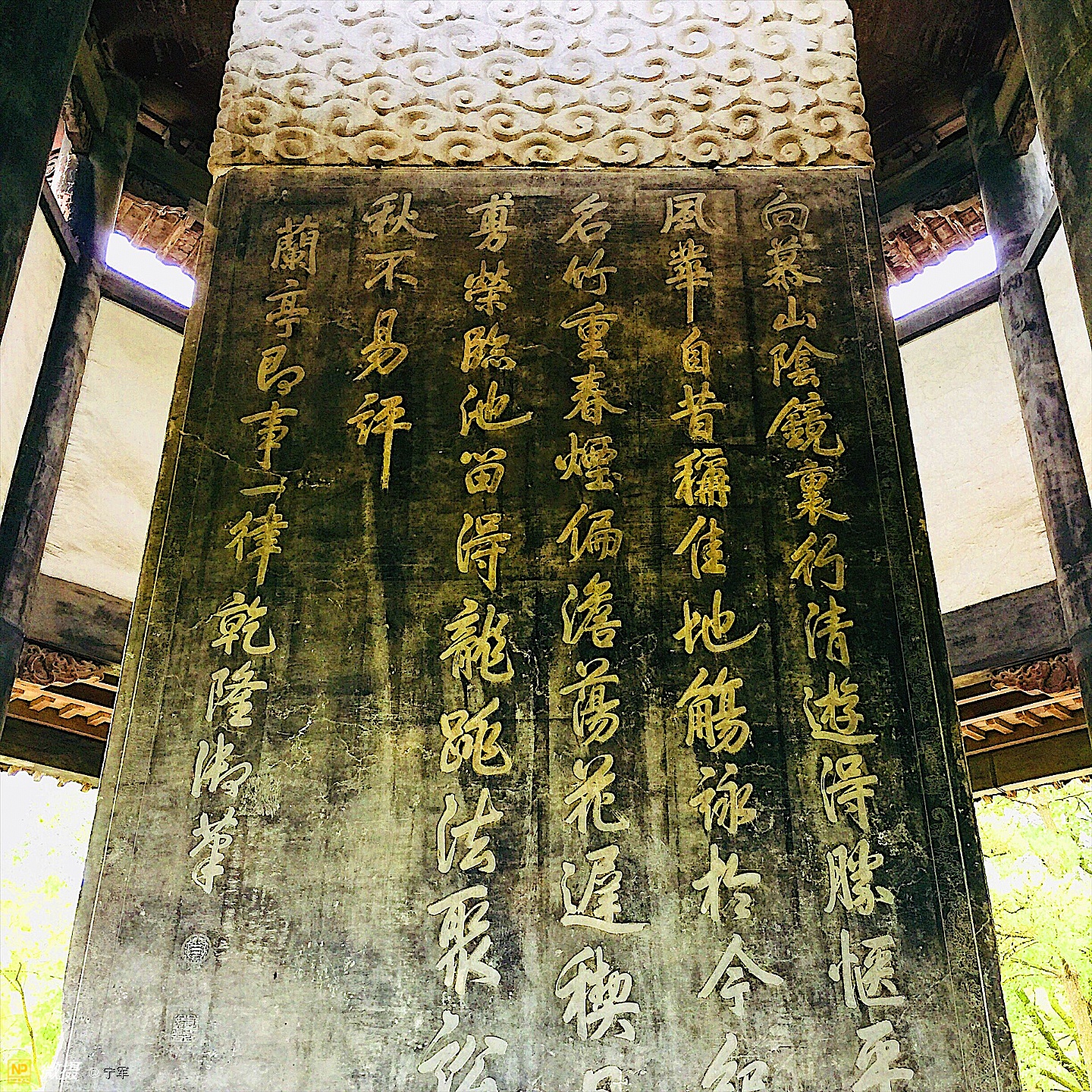 碑的背面是乾隆皇帝1751年游兰亭时即兴所作的一首七律诗《兰亭即事诗》,书法飘逸,对兰亭的仰慕之情溢于言表。