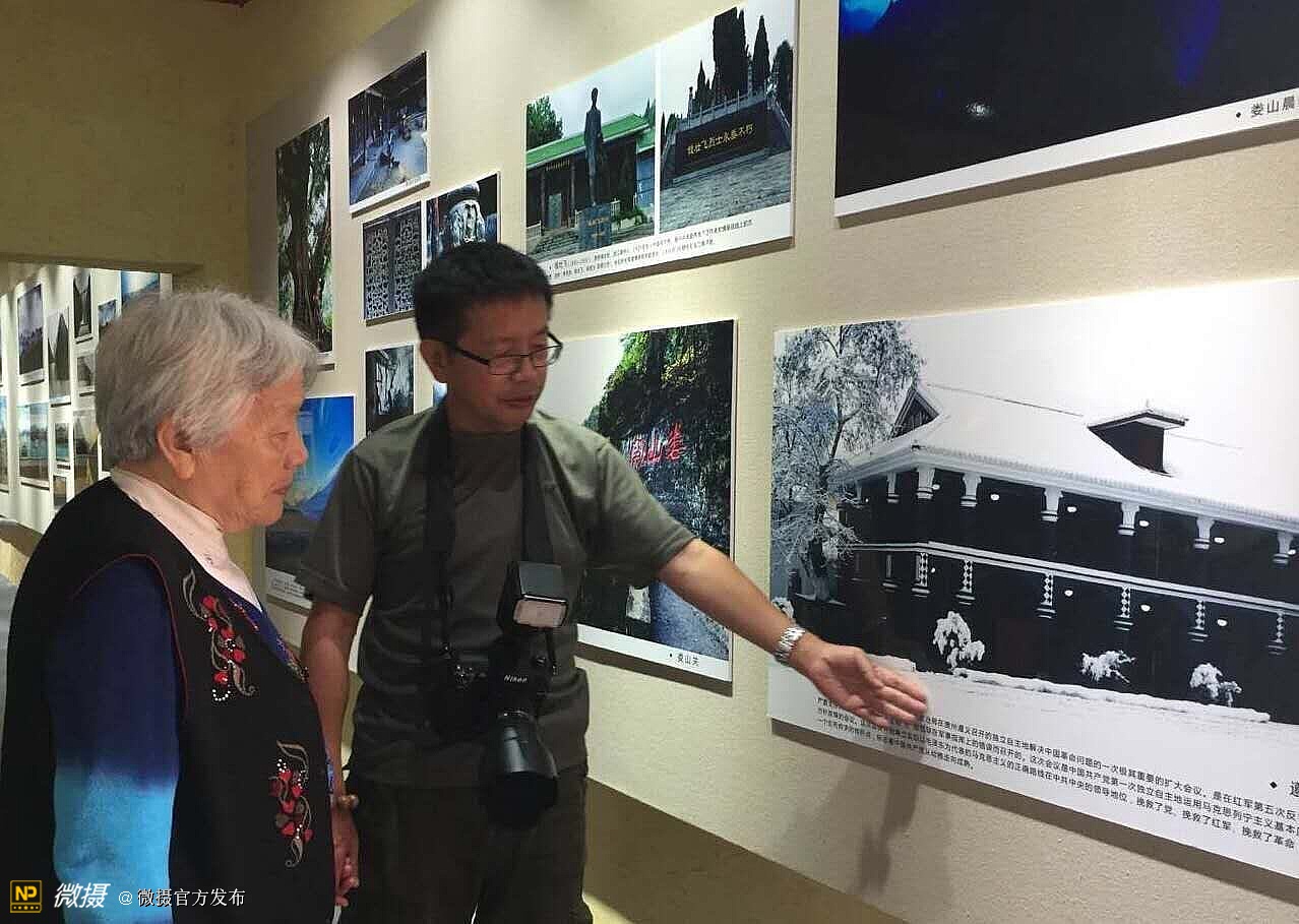 刘太华给母亲介绍自己的摄影作品