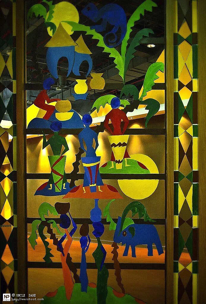 作品:《欢乐的非洲》 摄影/张桐胜。作品注解:他用摄影艺术独特的表现形式和影像语言,抓取上海世博各种设计、光电、材料、结构、色彩、韵律所形成的一种新的、令人难忘的神奇影像,把各种元素重新组合、截取,使拍摄的内容充分展现一种东西方当代艺术融和的审美观念。