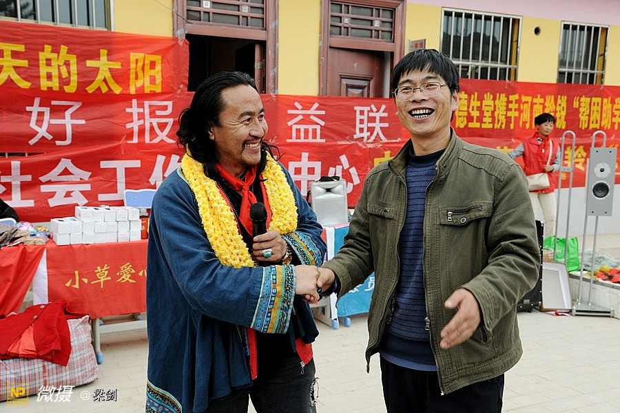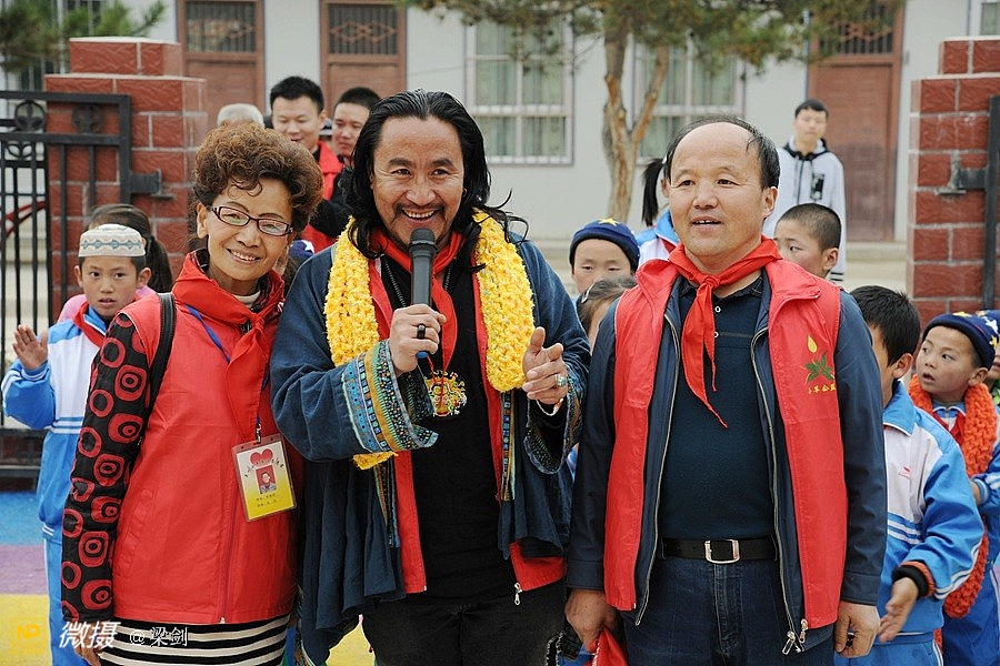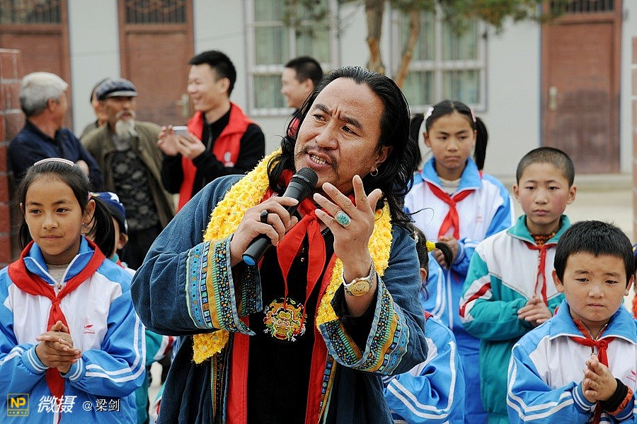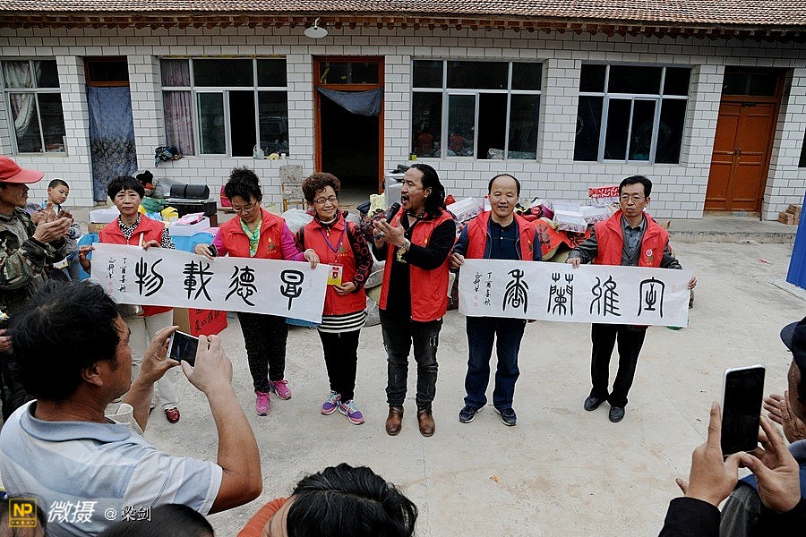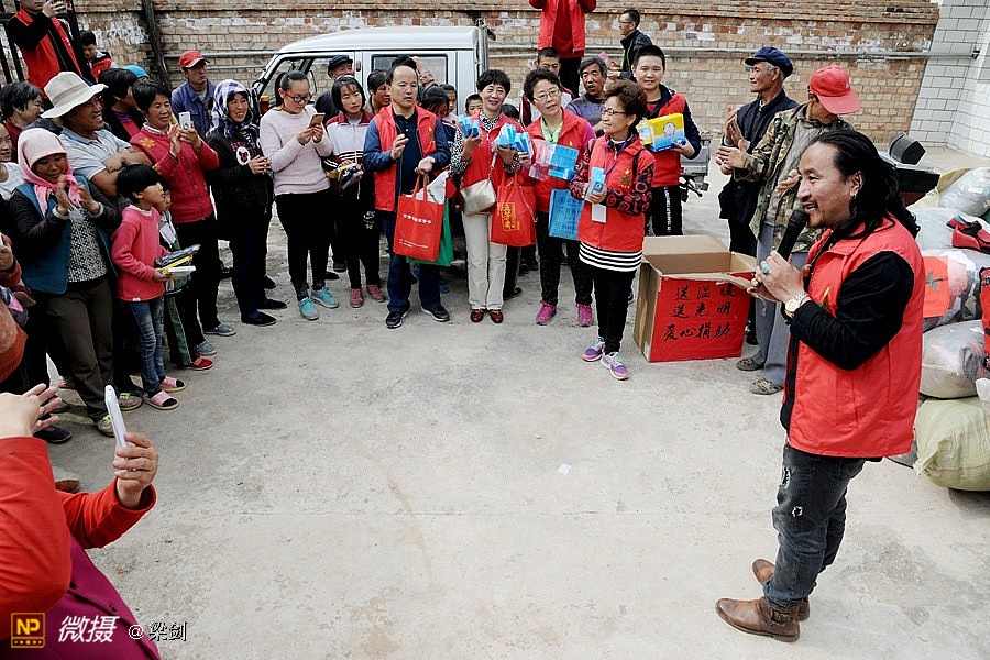 著名藏族歌唱家扎西老师,在为村民送上温暖物品同时,为在场村民演唱中国民族歌曲,使在场村民无比激动,纷纷使用手机记录拍摄精彩瞬间