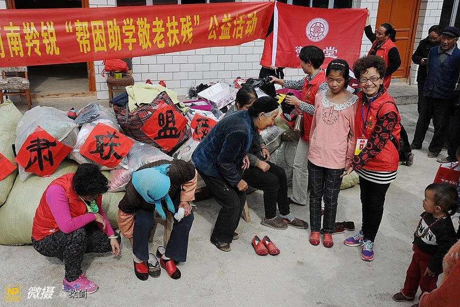志愿者和爱心企业人士,根据村中老人和儿童需求送上了生活用品