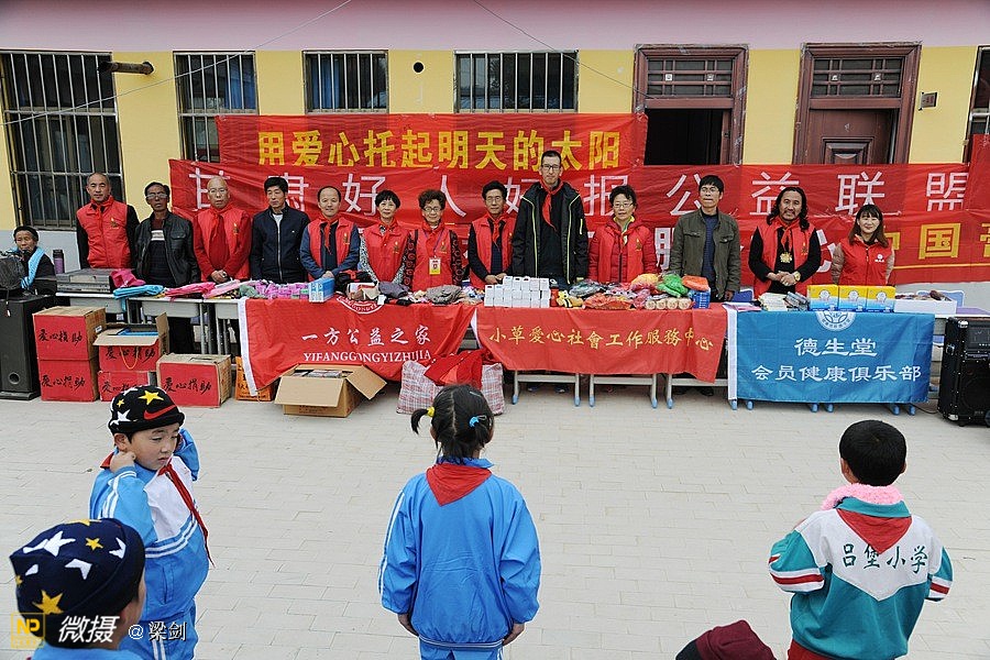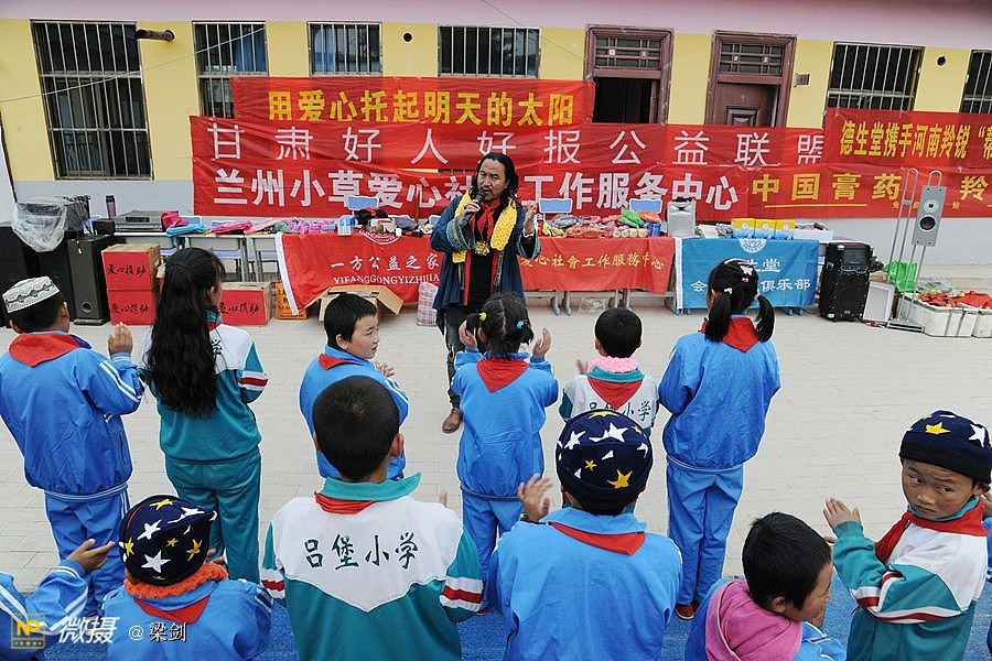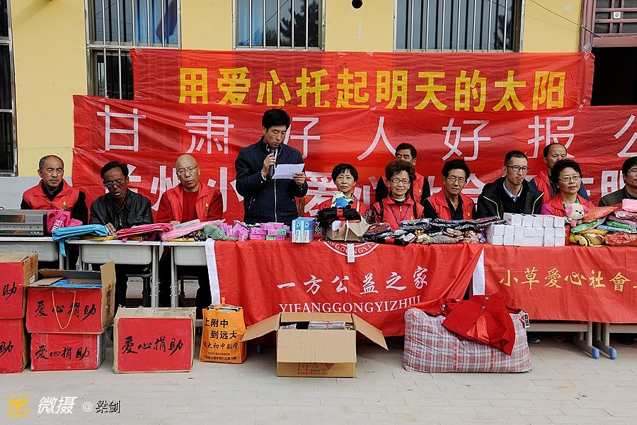 甘肃好人、好报志愿者联盟,兰州小草爱心社会服务中心志愿者、著名藏族歌唱家扎西和爱心企业人士一行16人,22日早7时由四辆货车拉运捐赠物资人员,集合整装驶离兰州市,前往白银市会宁县大山深处党家岘乡吕堡社村民委员会,和吕堡小学为村民、学生送去衣物、药物、学习用具等物资