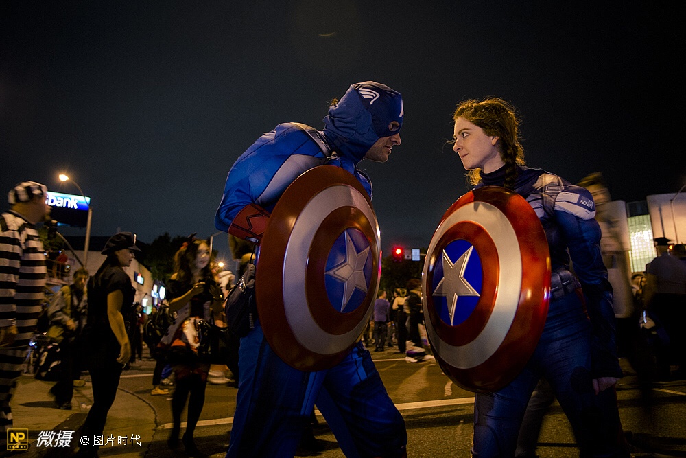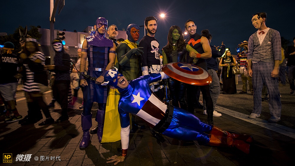 鬼节游行中,除了“鬼”这个主题,好莱坞的话题是不会缺场的。这幅图里就有几个“美国英雄”!