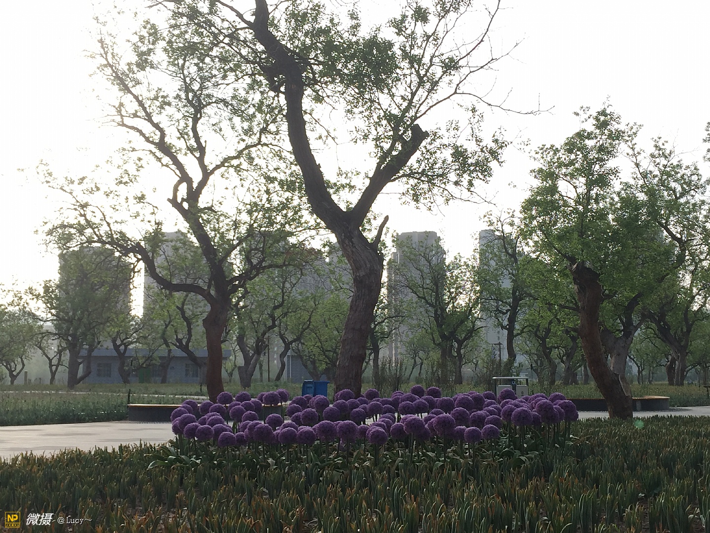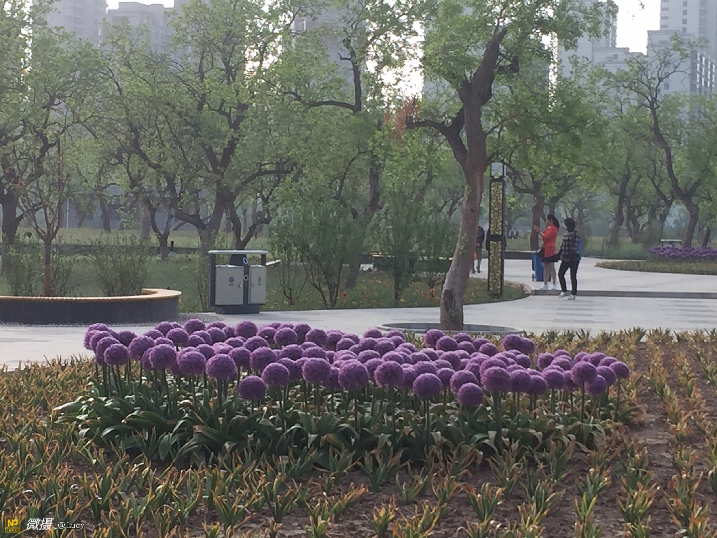 吐绿的枣树、盛开的大花葱、晨练的人们……和谐共处不是一句纸上的空话、而是每天日升而起的真实场景!
