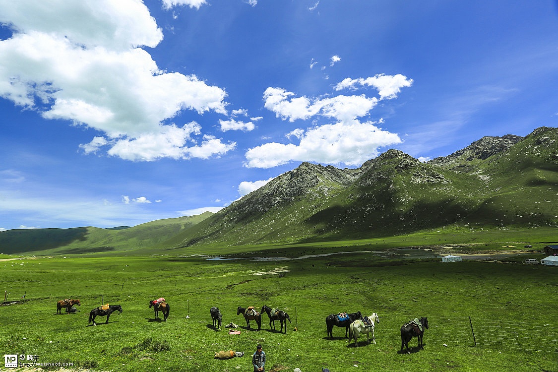 这是大自然的恩赐,蓝的天,绿的草,满山的牛羊骏马跑。