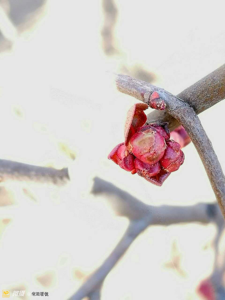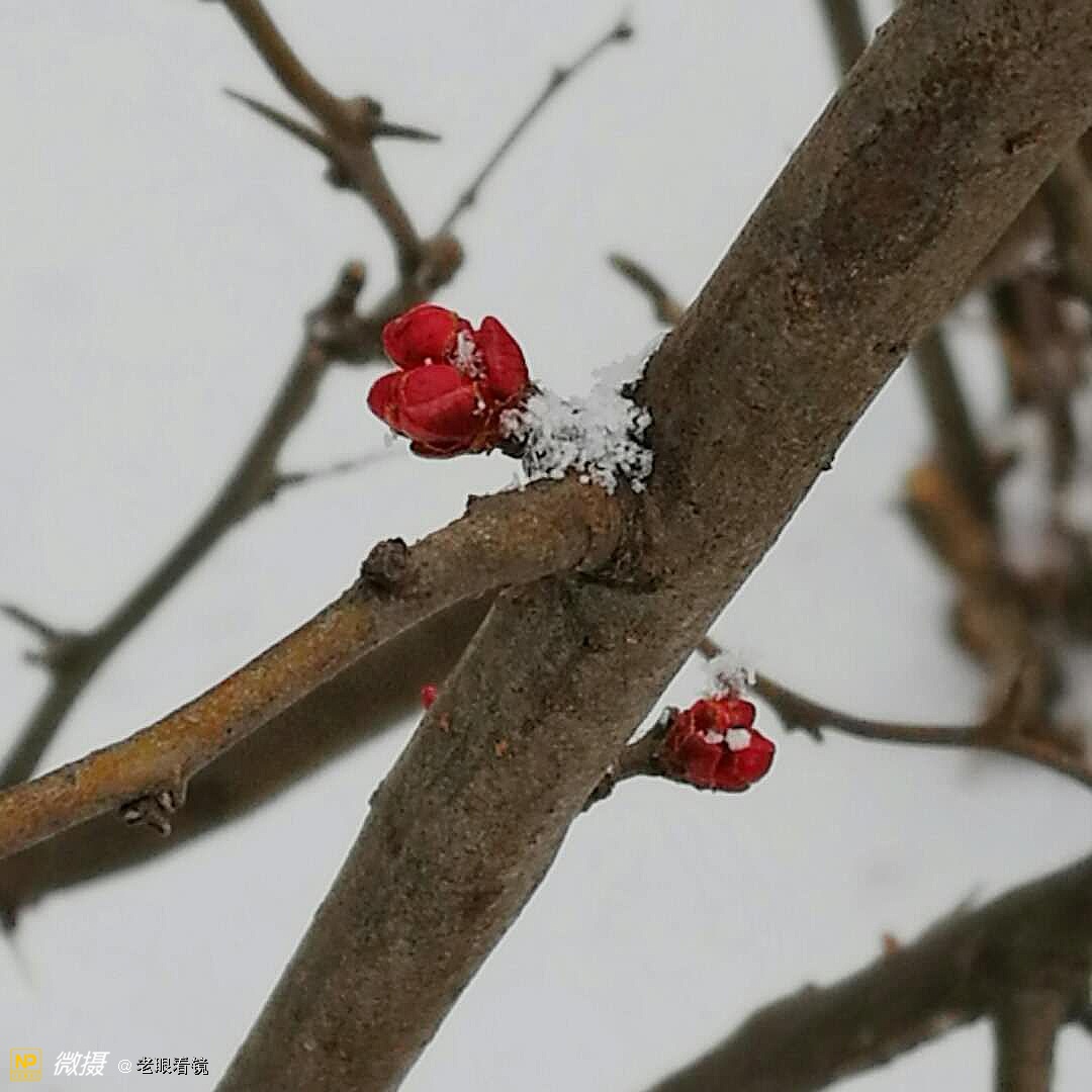 2月22日,这天北京下雪,花蕾仍然很小,没大的变化。但是,在雪中格外的艳丽 ,有点昂首傲雪的气概,很是招人喜欢。