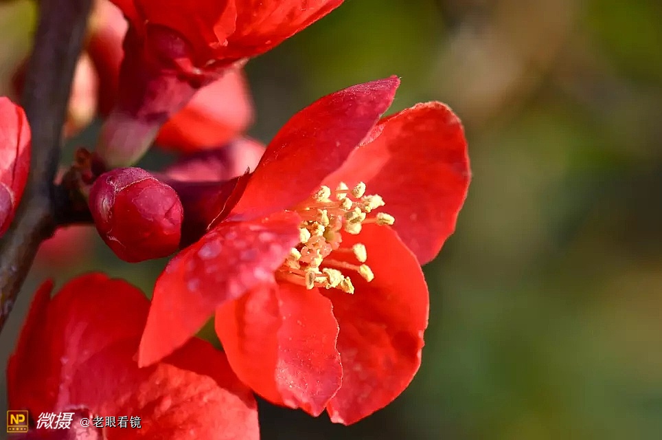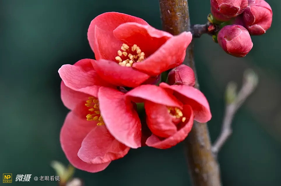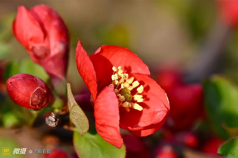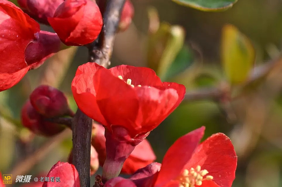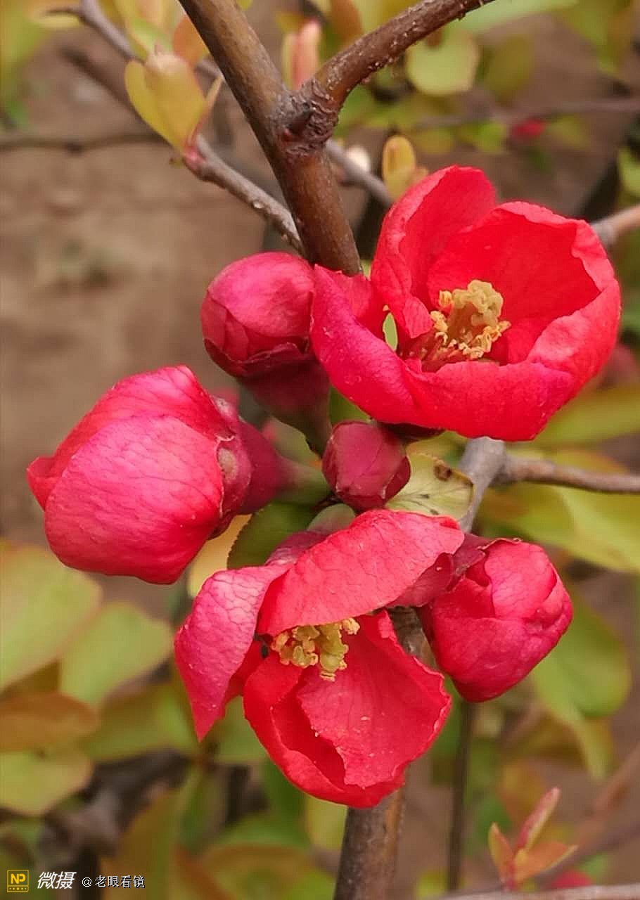 今天,终于盼来了盛开的贴梗海棠,红艳艳地甚是让人喜欢。52天的漫长过程,终于迎来了昂首怒放。