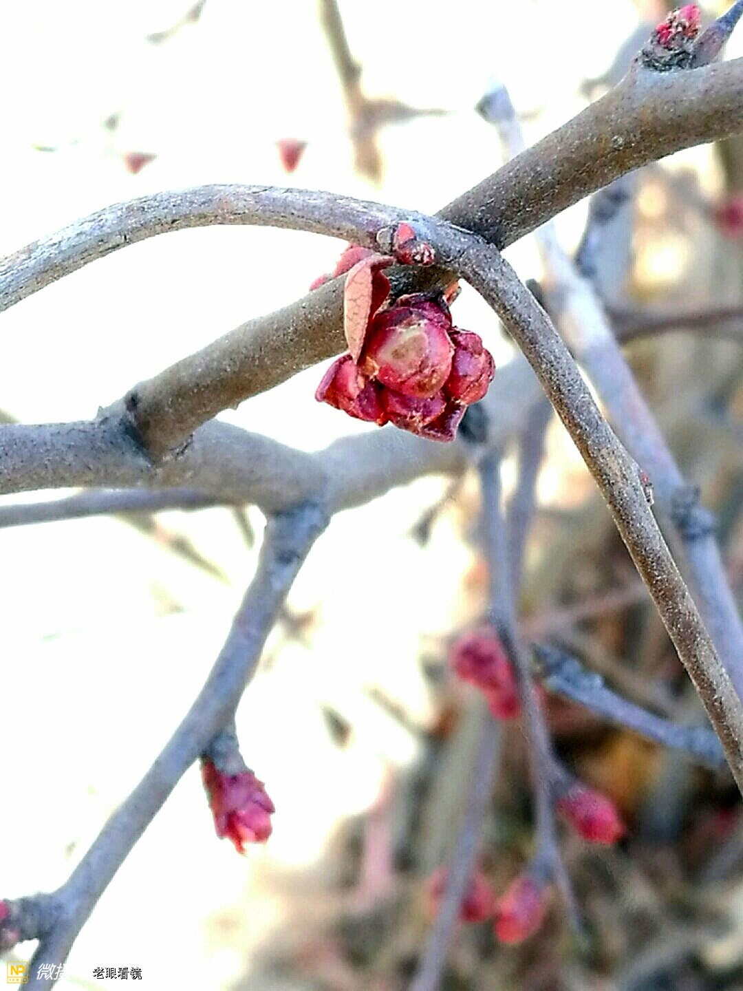 2月5日遛弯时偶然发现贴梗海棠孕蕾了。也就是从这天开始,我便经常的去观察它的生长过程。