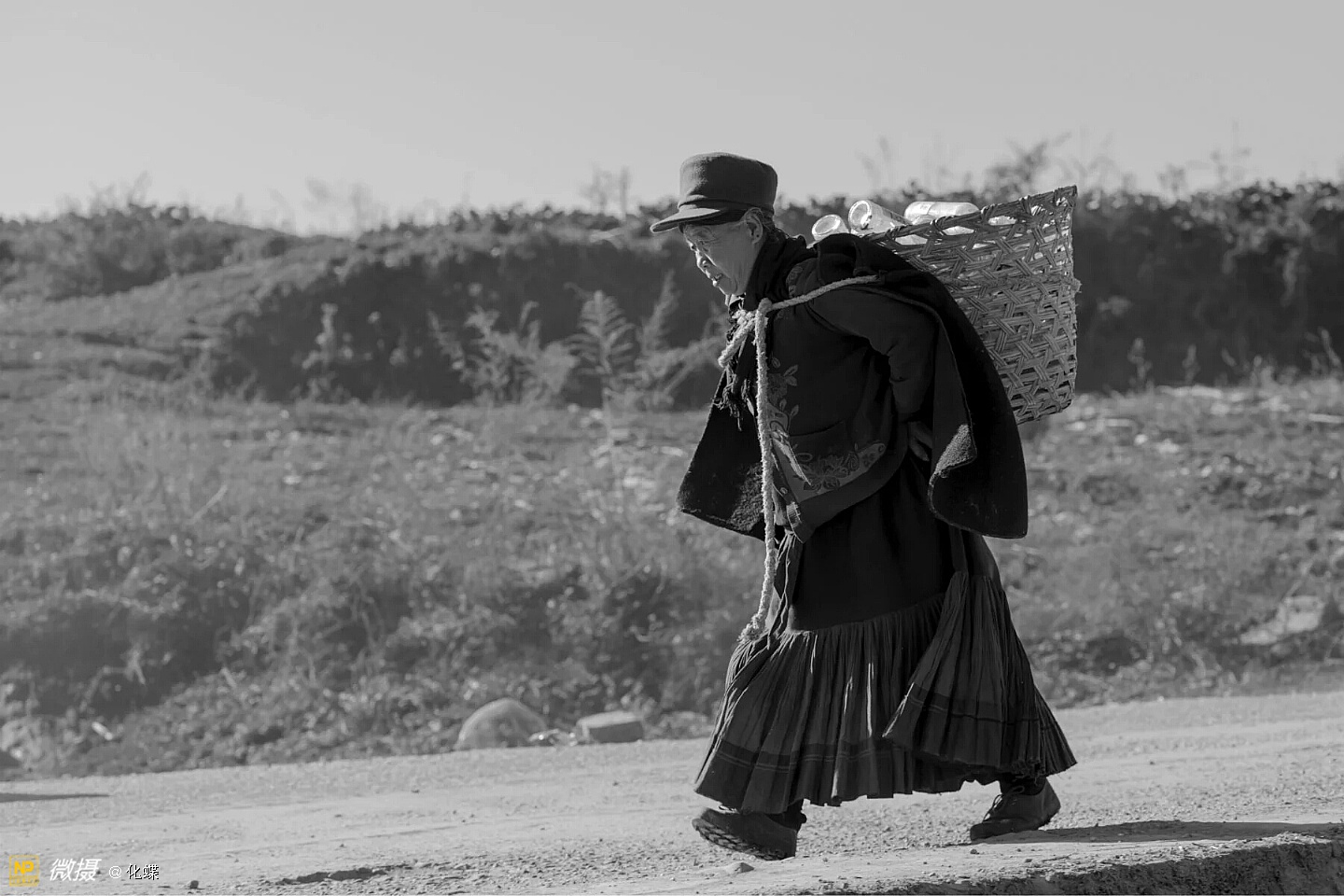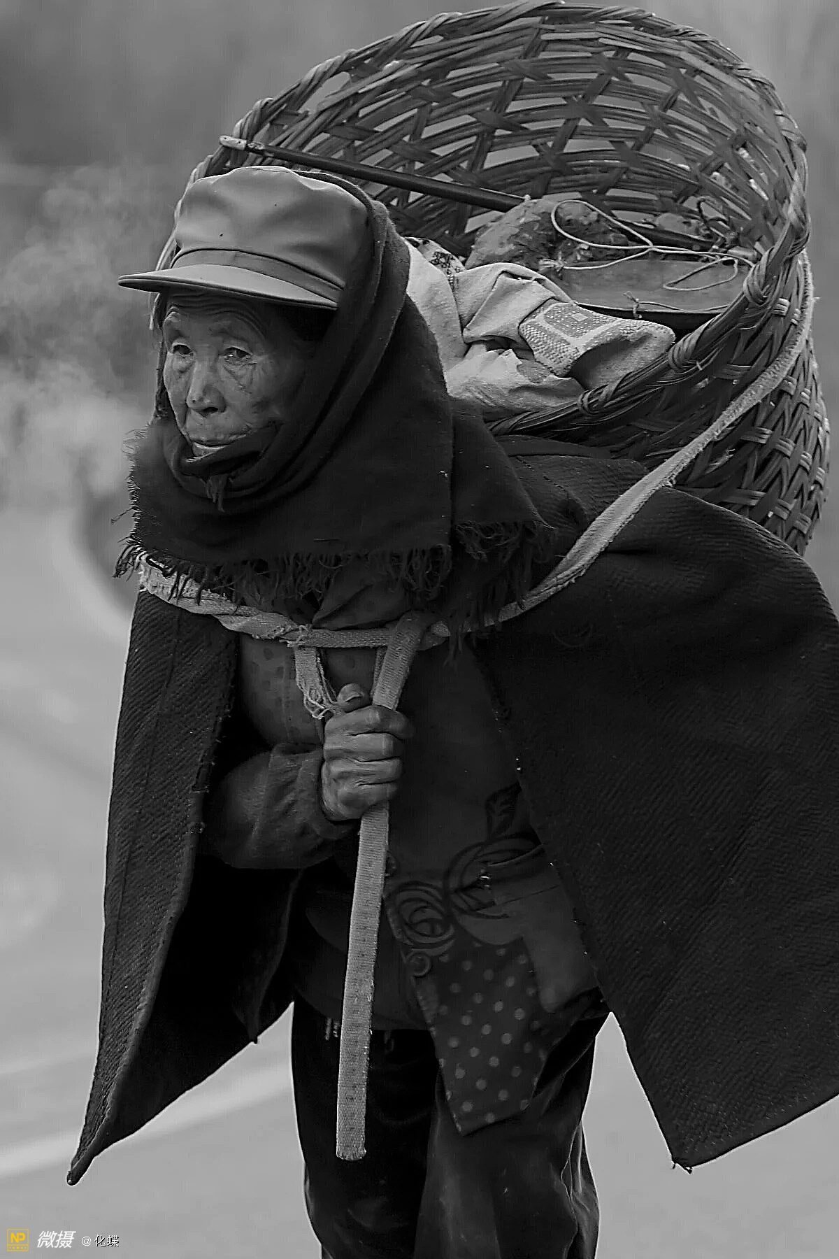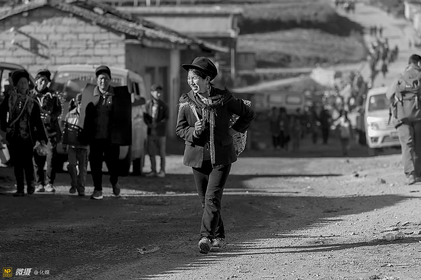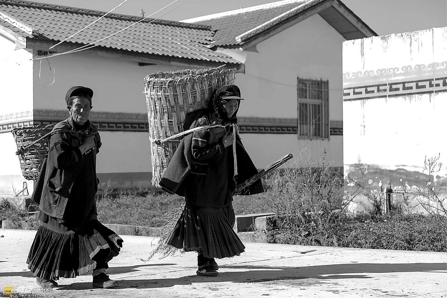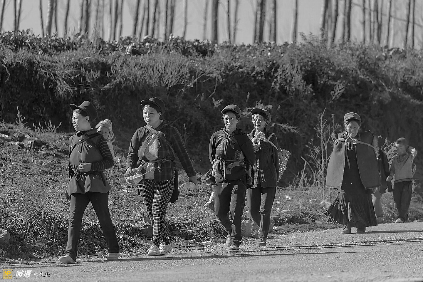 女人们开心的背着背篓去购年货
