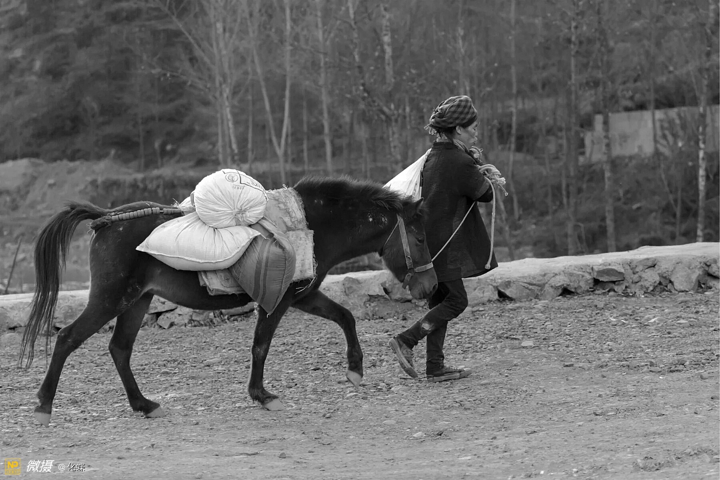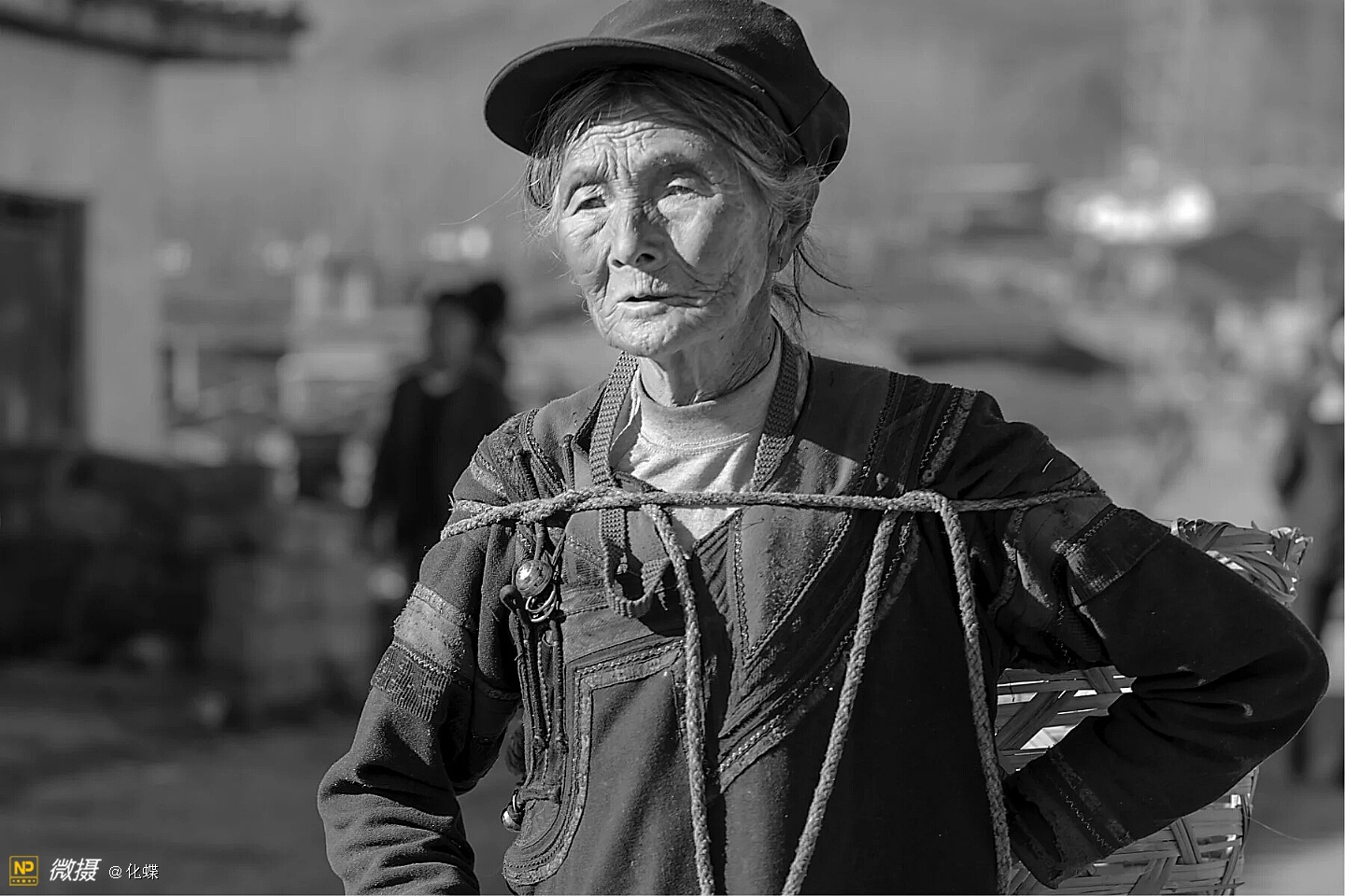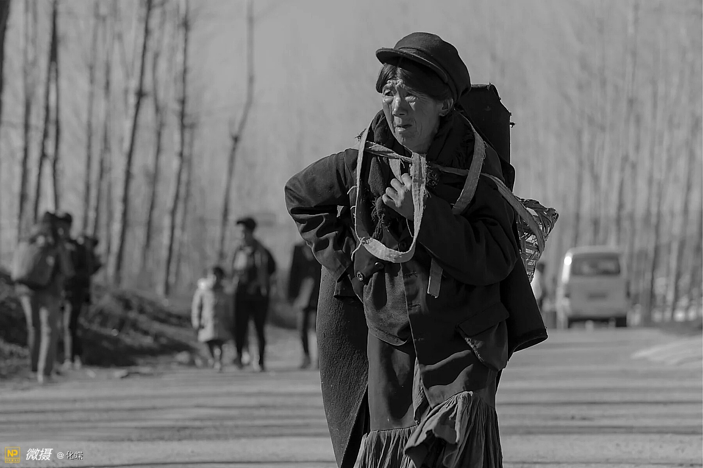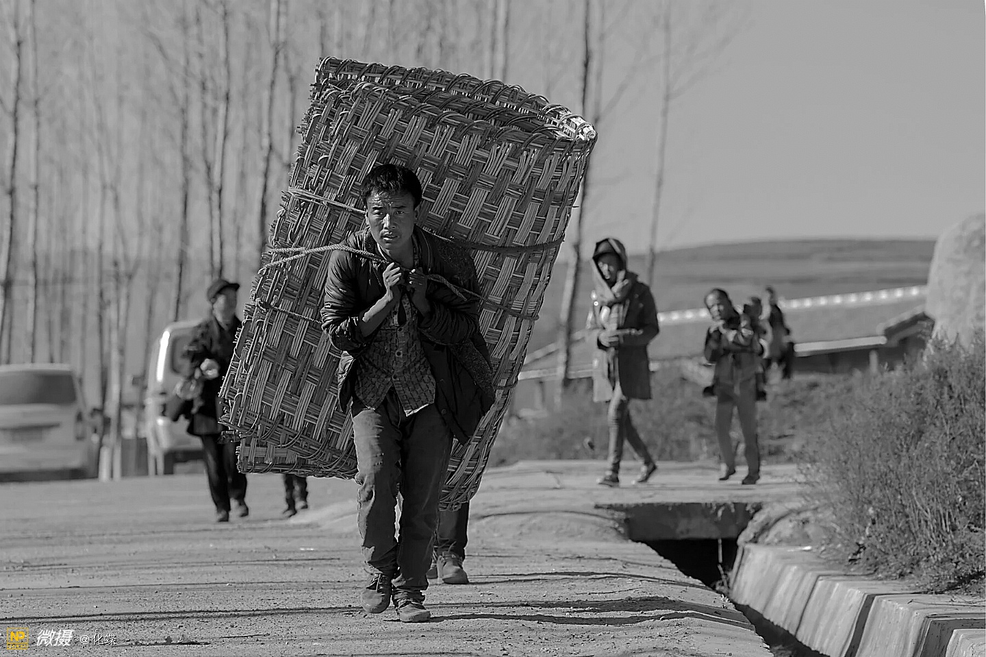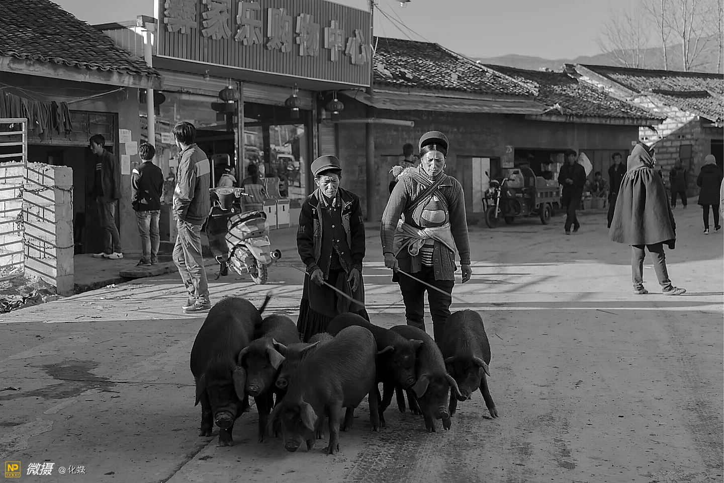 女人们开心的背着背篓去购年货