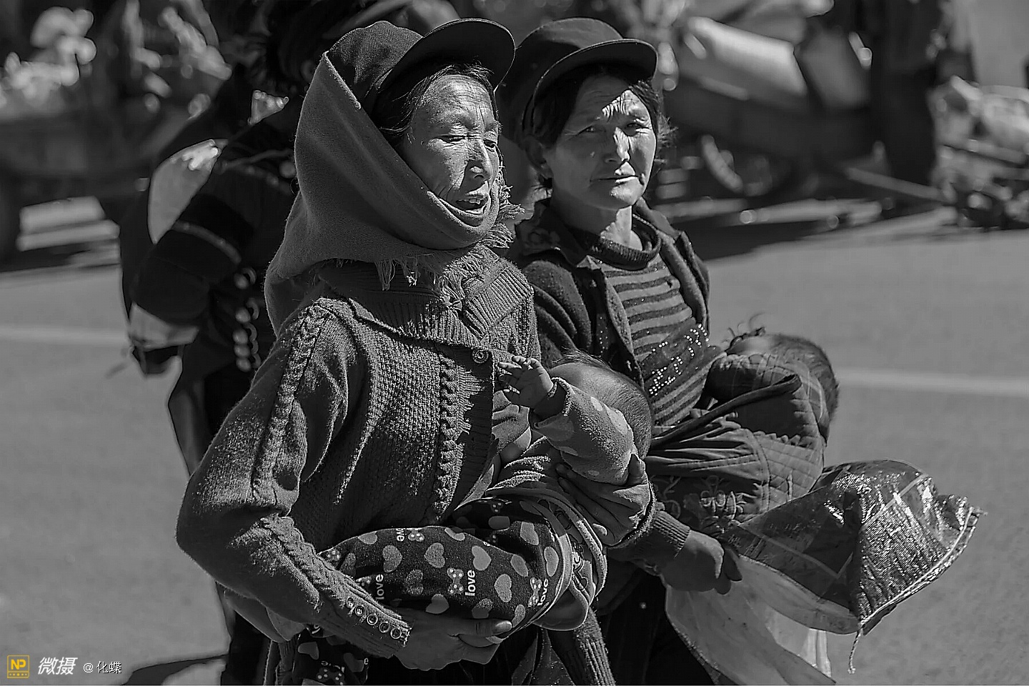 孩子生得多是彝族人的特点,瞧这两个大姐,这岁数还在奶孩子