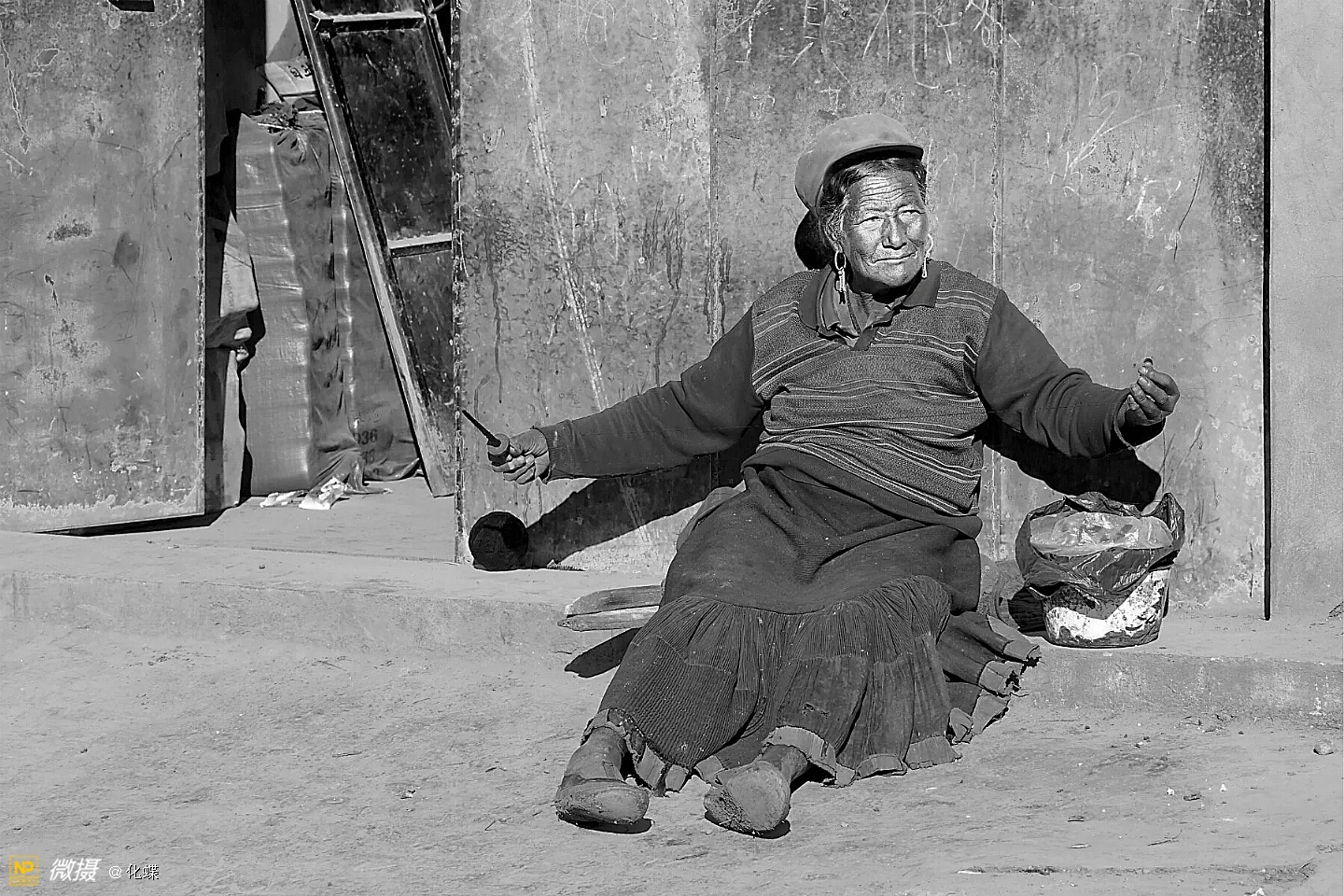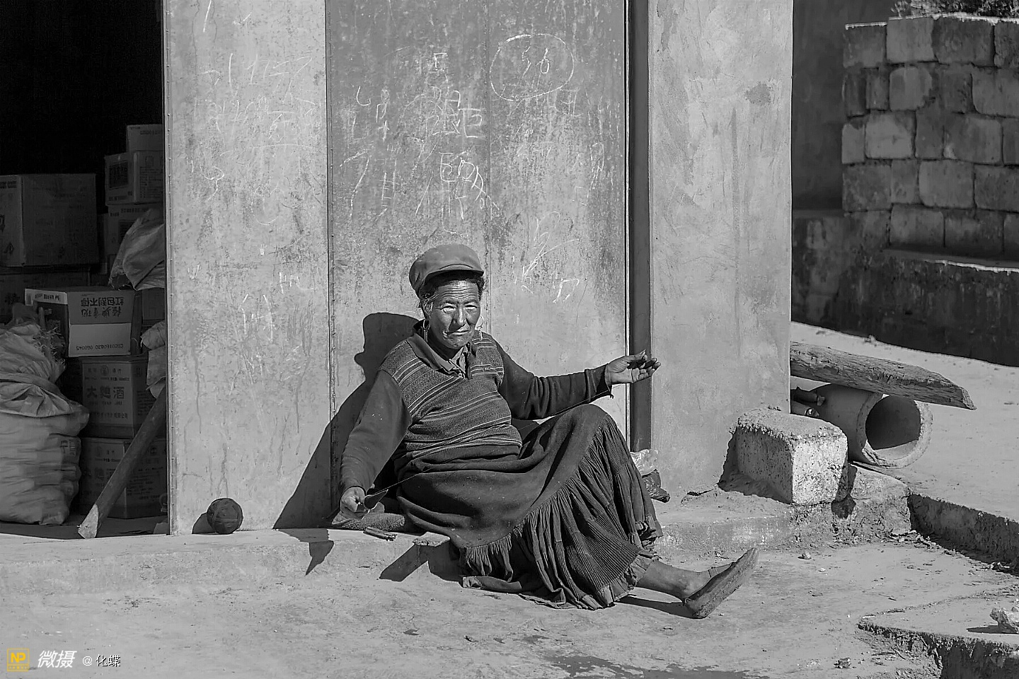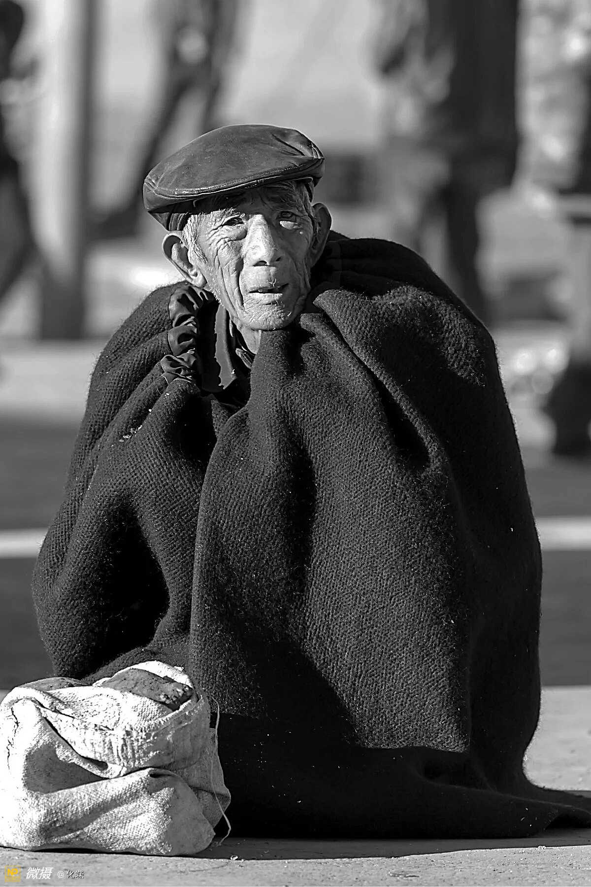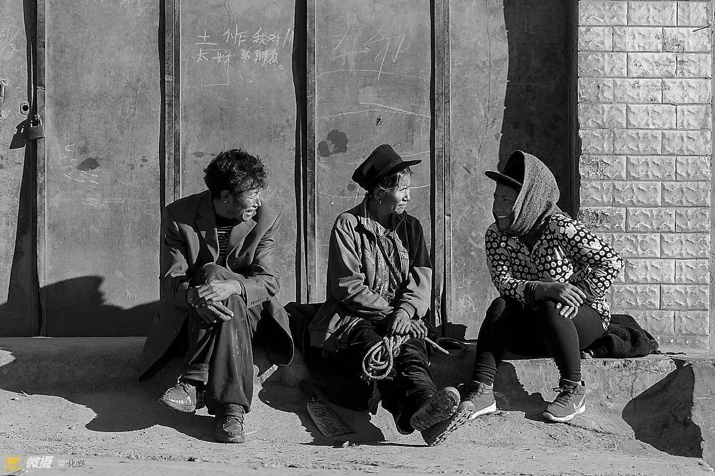 赶集累了,席地而坐的人们