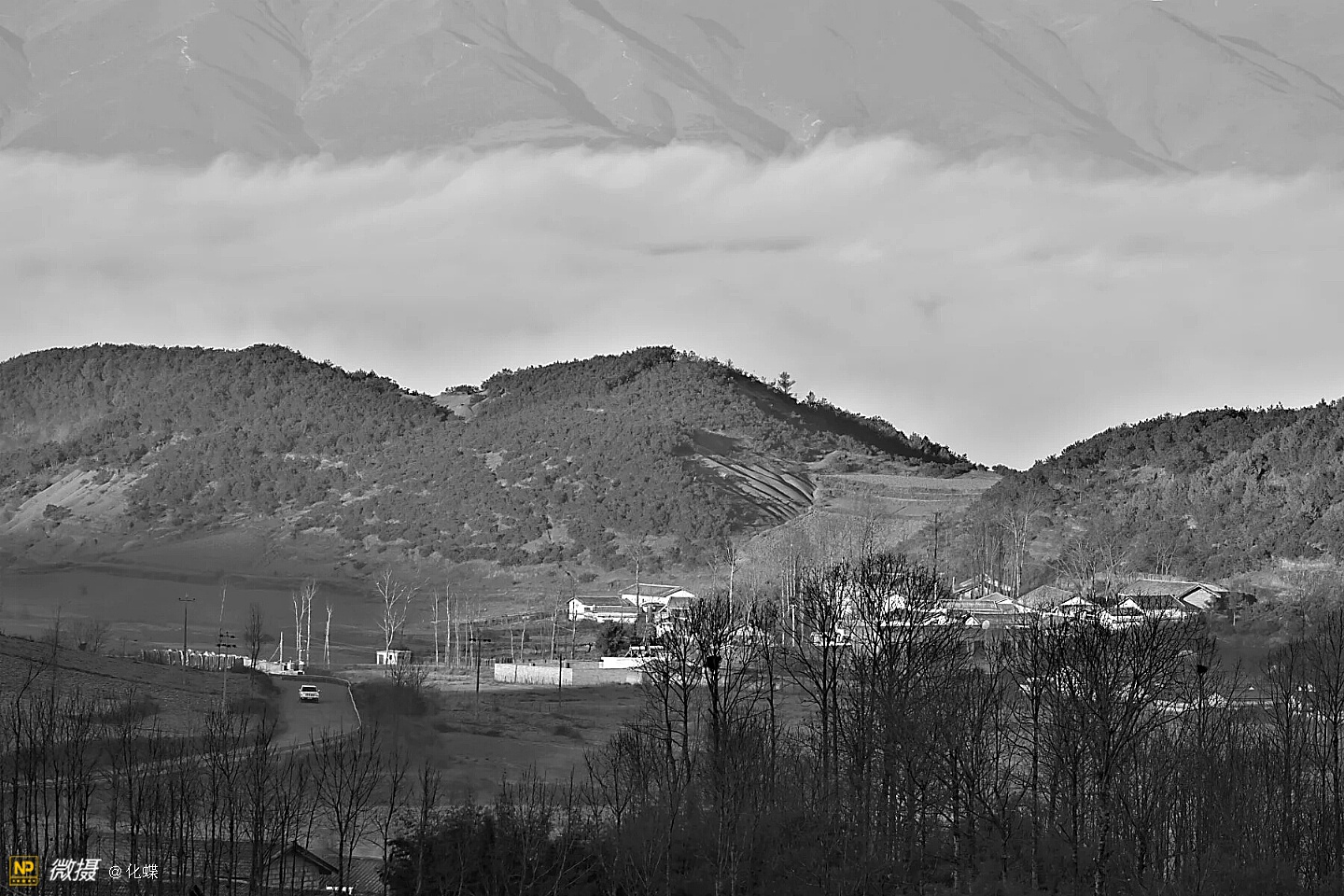 晨雾中漂亮的小山村