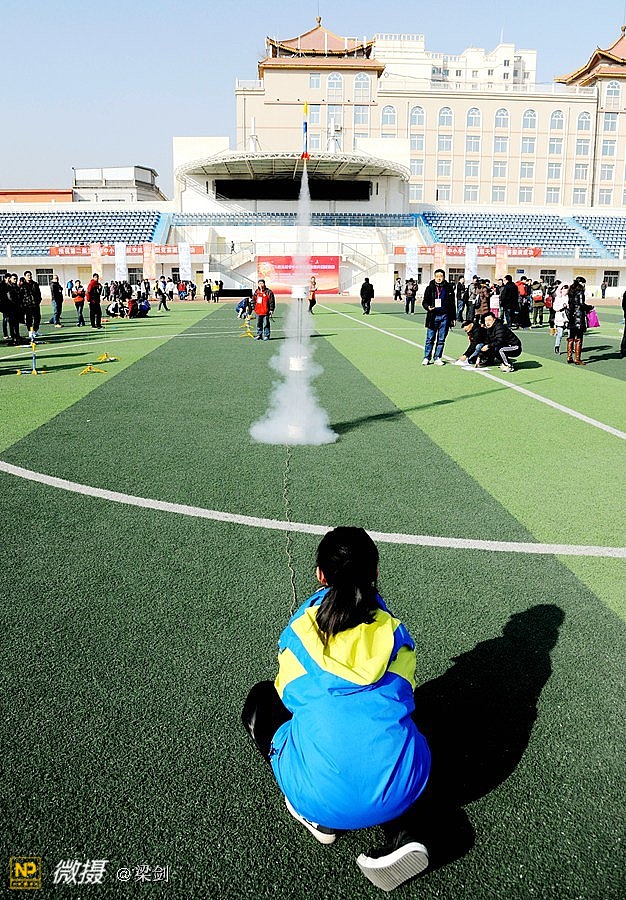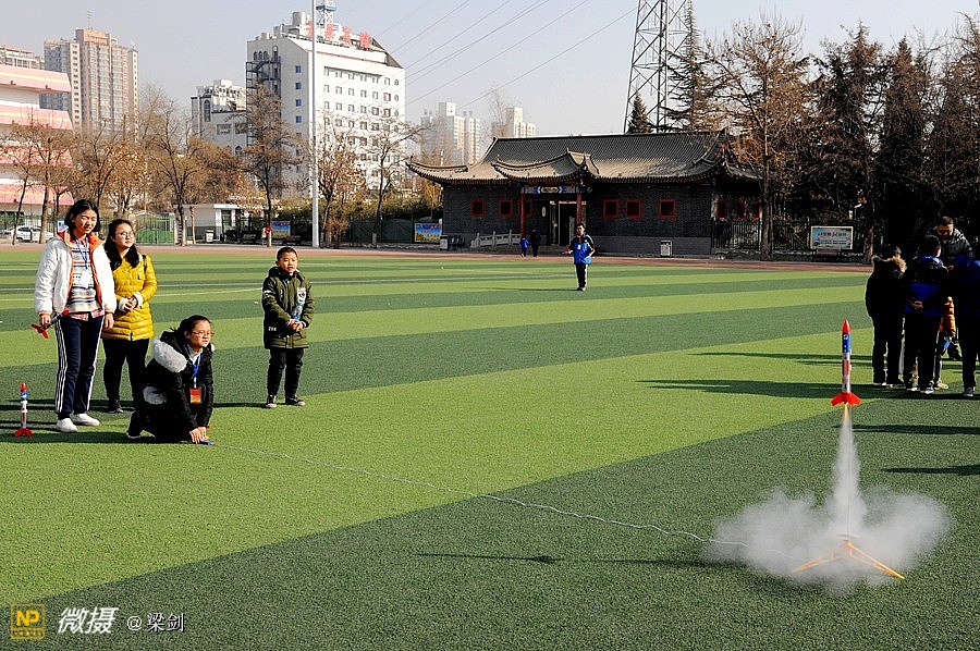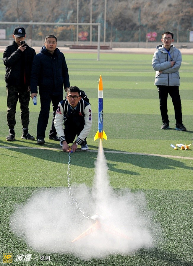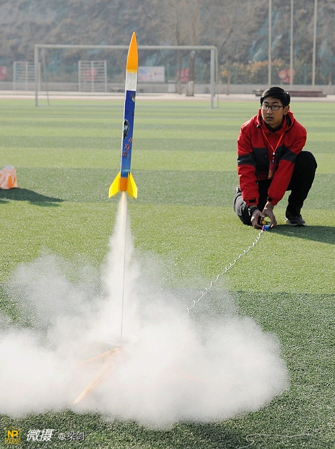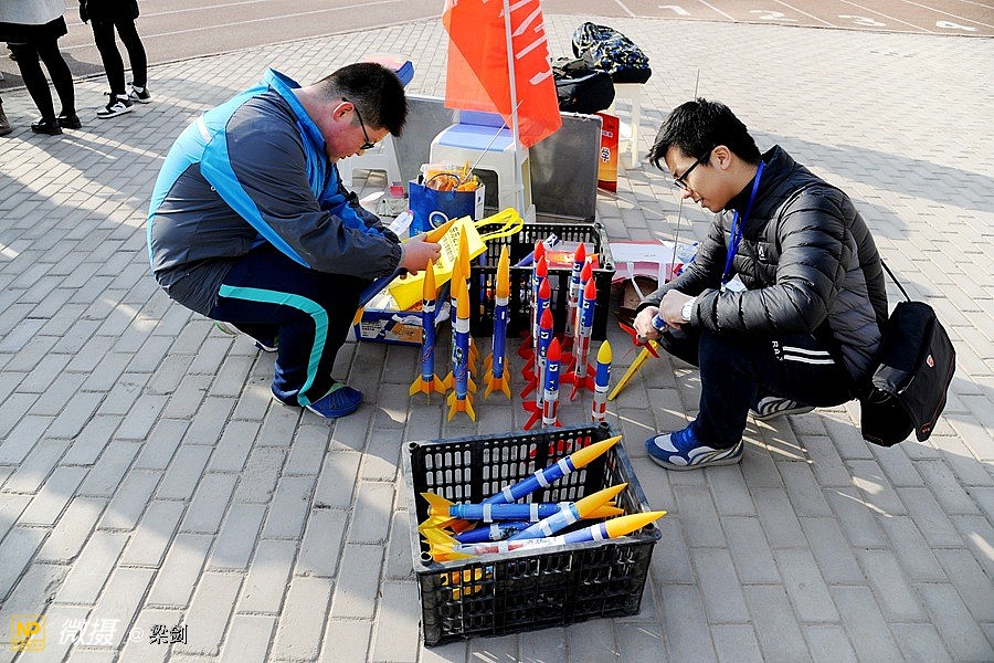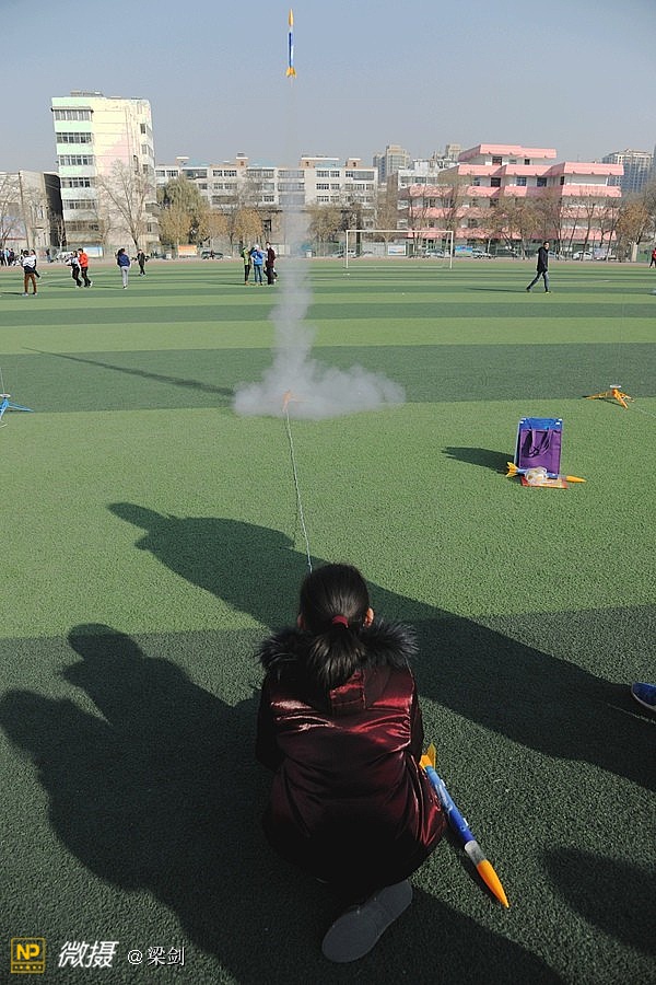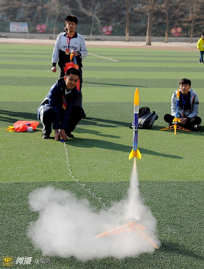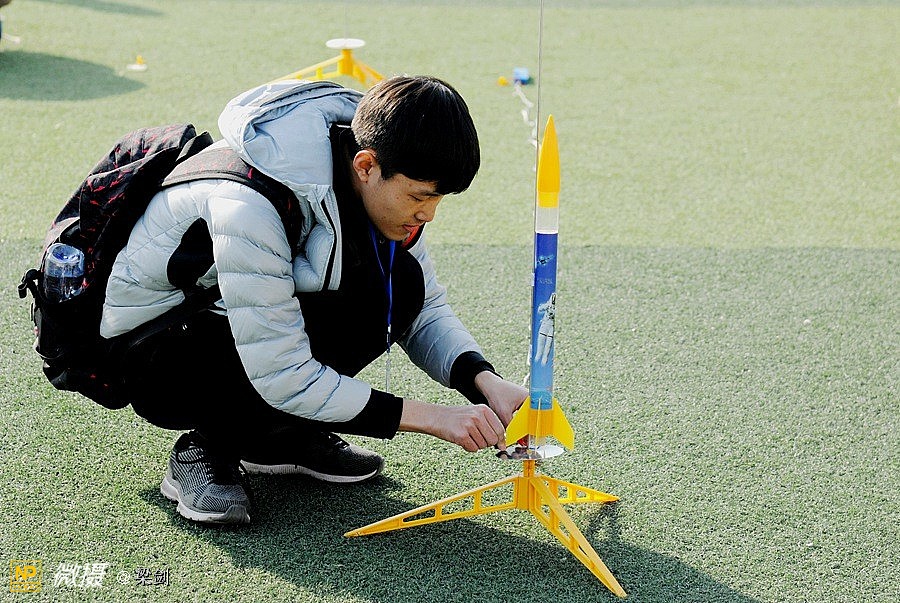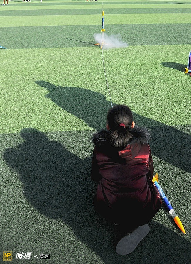 模型火箭发射比赛,再次让参加选手和陪同家长大开眼界,选手们认真协作认真依照比赛要求,使火箭频频飞向空中,在打开降落伞安全降落