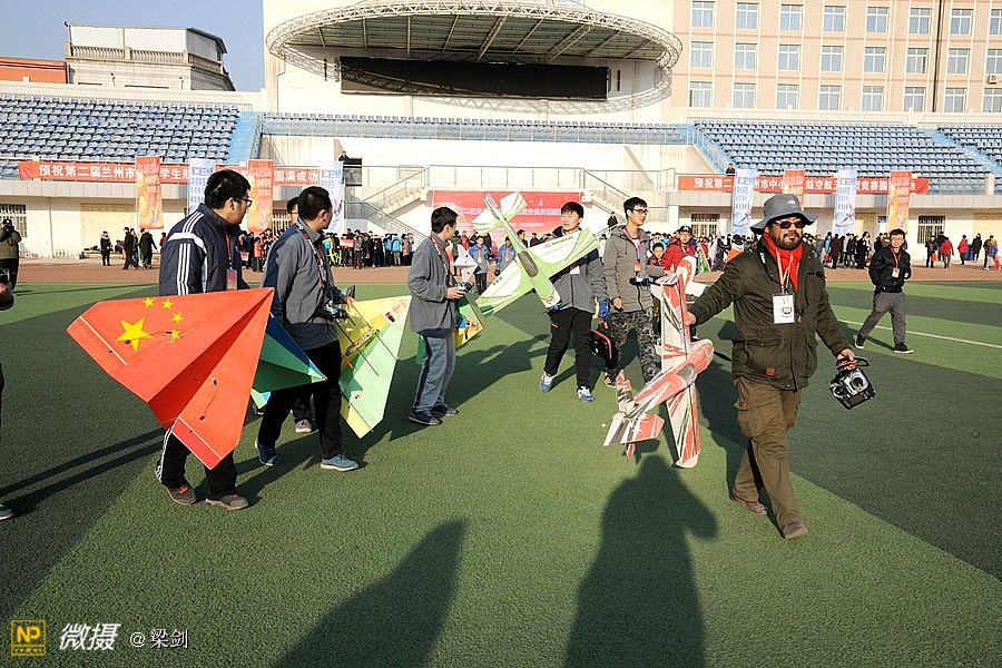 首先开始比赛的是遥控纸飞机竞速赛,在规定时间、规定区域,要求选手完成最长距离飞行