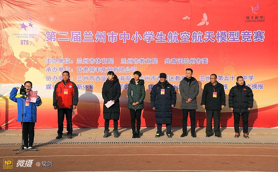 让我们一起飞上蓝天,从小培养航空科技人才,本届开幕式是由竞赛组组长范向阳老师主持,兰州市体育局、兰州市教育局、共青团兰州市委、甘肃翎丰模型负责人、西固区体育局、西固区教育局、兰州铁一中、兰化三中、兰州天空模型、陇西威运航空俱乐部等多家单位参加协助。兰州市体育局青少处副处长,详细介绍了航模竞赛活动的意义