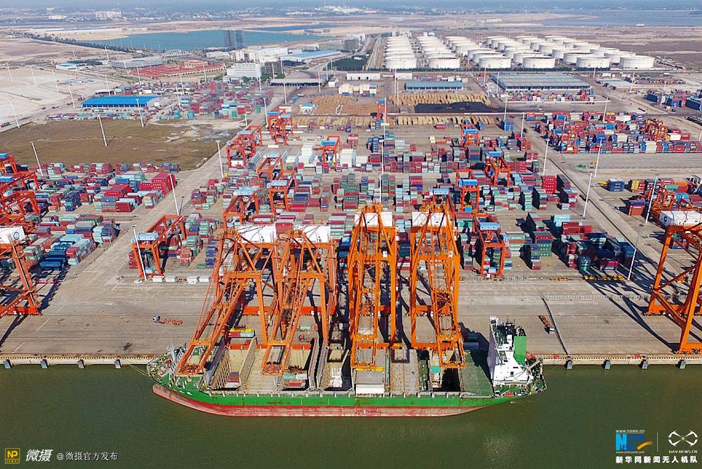 航拍钦州保税港区码头。新华网发 韦秀玲摄