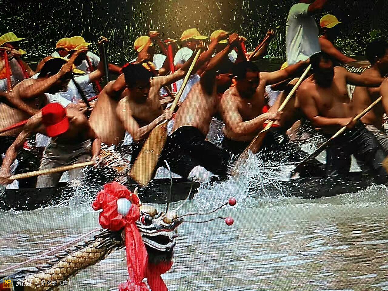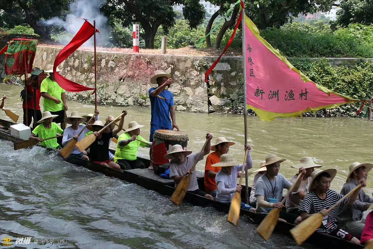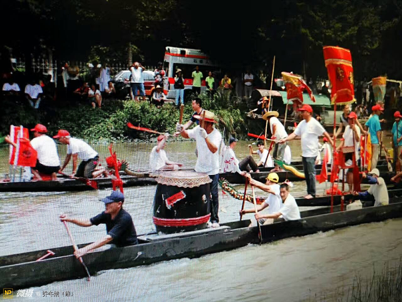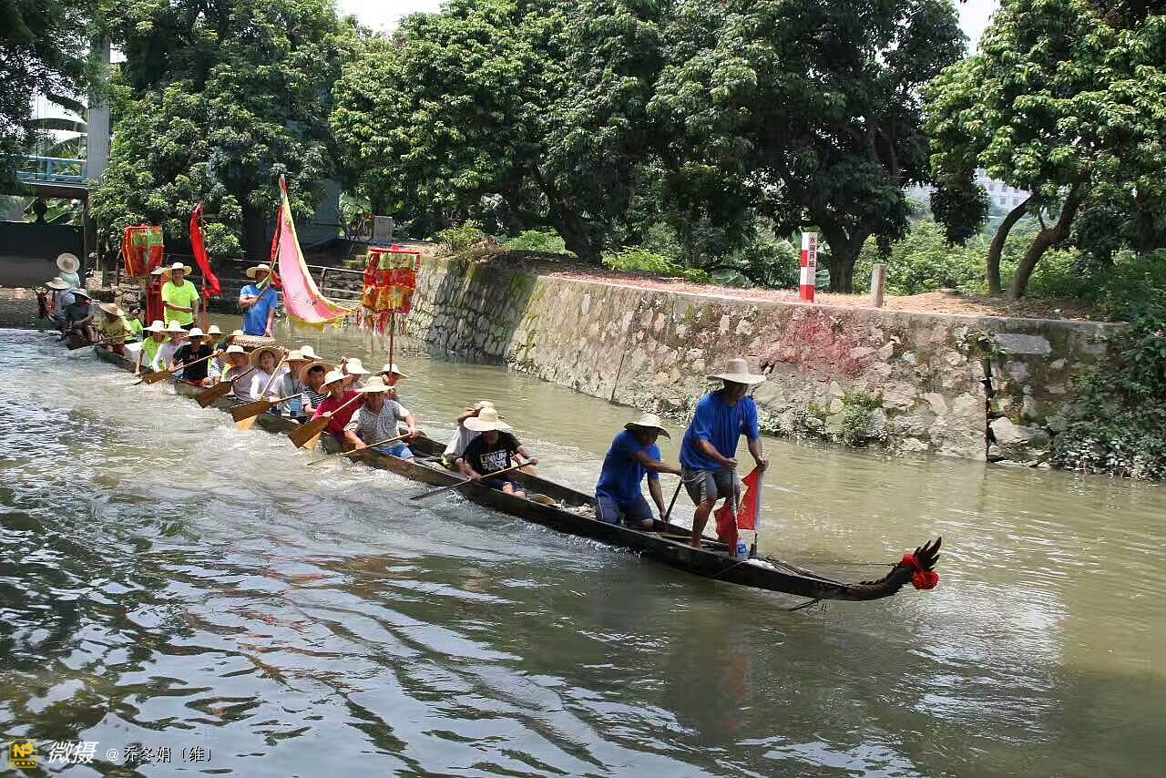 龙舟探亲访友:本村 的龙舟出发探亲。