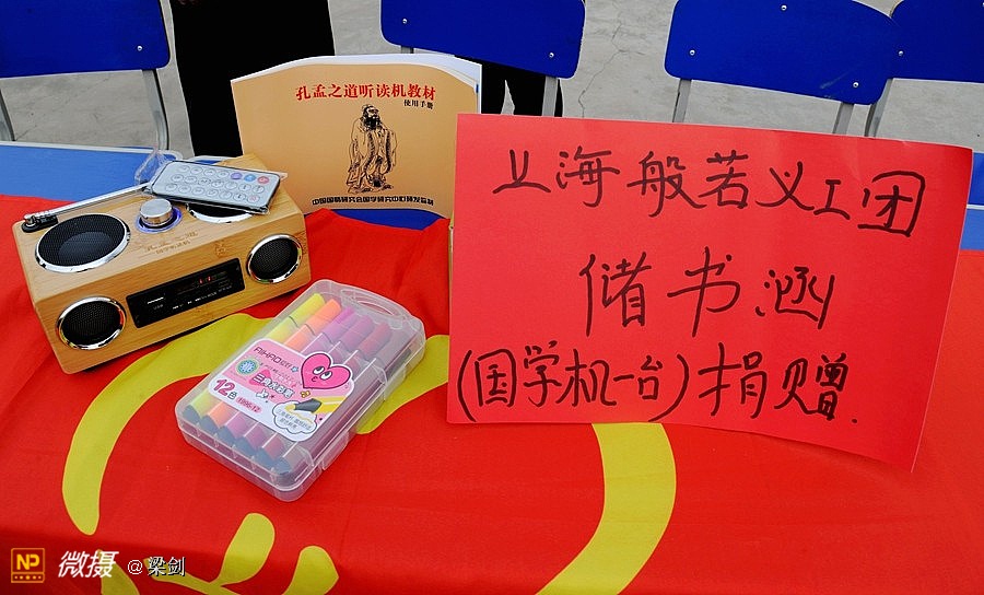 上海般若义工团储书涵捐赠的国学机一台,让孩子们从小就接触这些国学的精粹,在学知识的同时还能教人如何做人,如何安身,立命,培养孩子的知,情,意,行,弥补一些因为从小缺失的母爱父爱而影响的心境