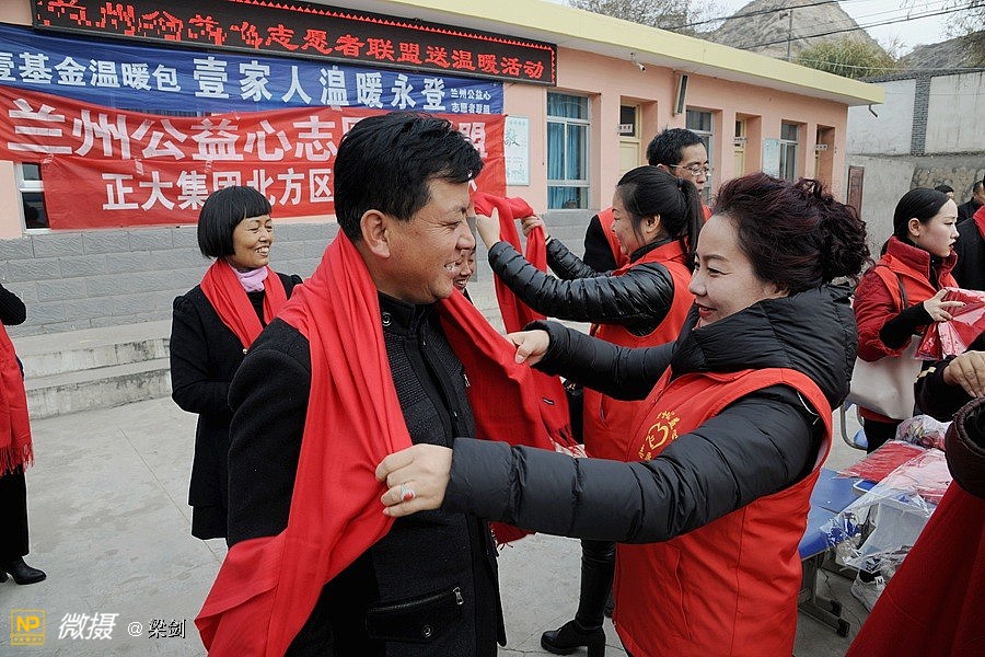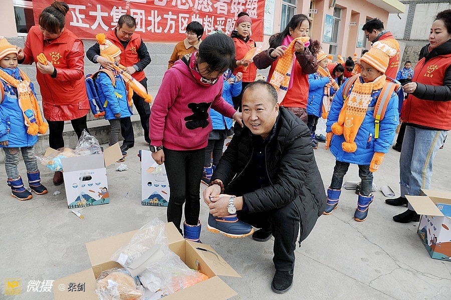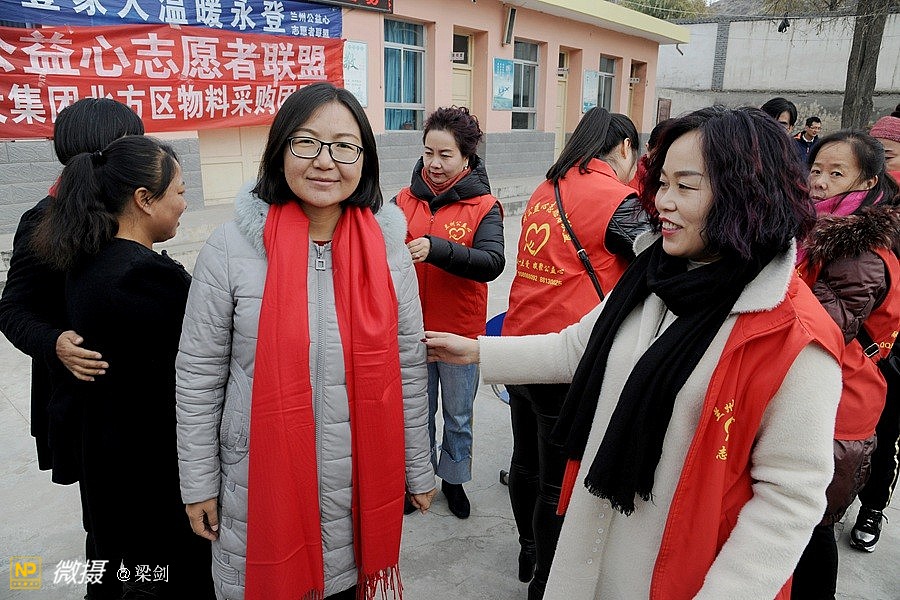 正大集团北方区物料采购团队,和兰州正大采购部的同事们购买了5000多元的东西,有围巾、棉手套、水彩笔和铅笔盒,并给16位辛苦执教老师们,送上佩戴中国红的羊绒围巾
