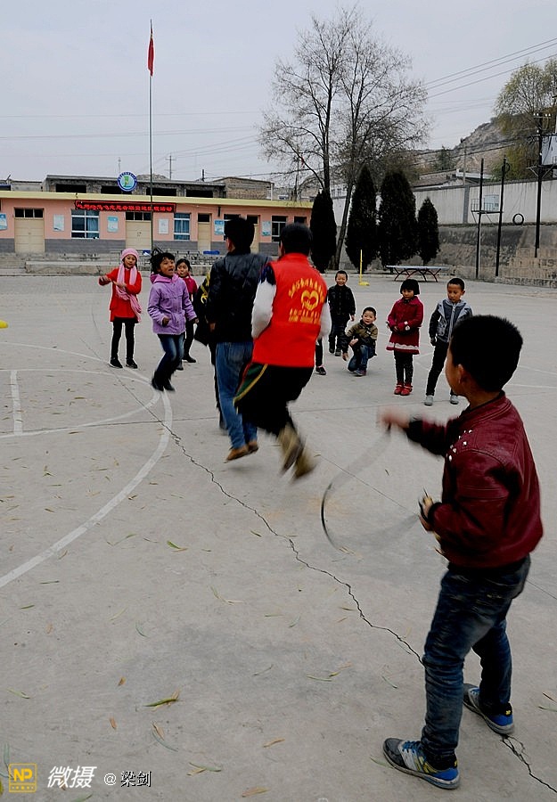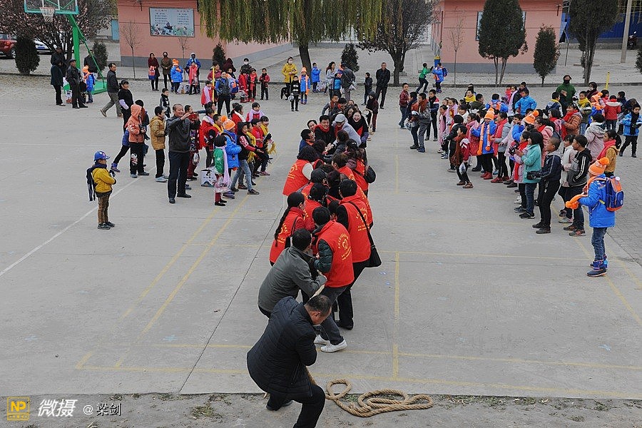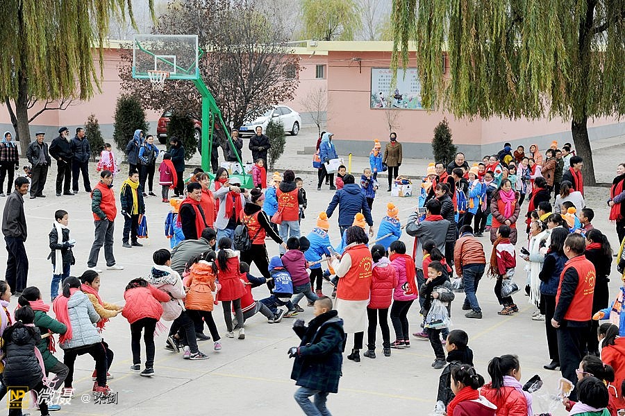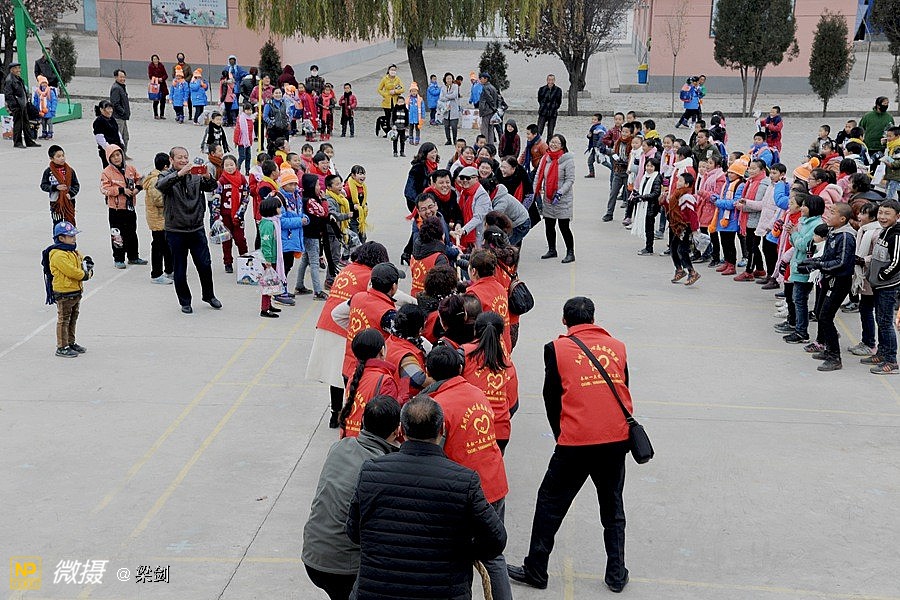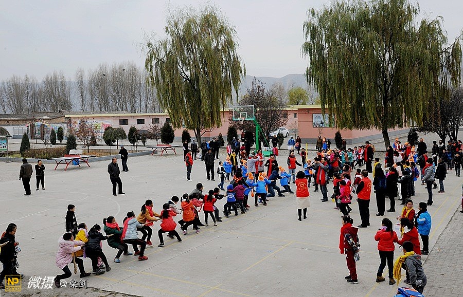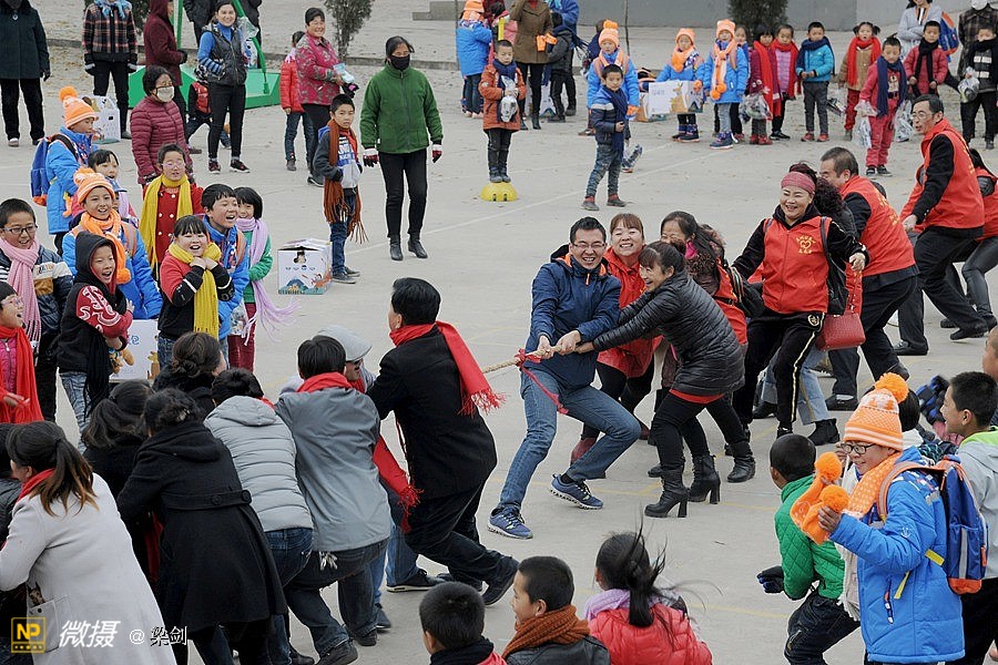 发放任务完毕之后,孩子们穿着新衣服灿烂的笑容,和老师围着火红的围巾在简陋的操场上,开始了孩子们、志愿者和老师们进行了拔河比赛,部分同学还当起了拉拉队,欢声笑语铺满了整个校园
