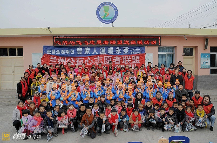 2017年11月17日天不亮,兰州公益心志愿者联盟的18人志愿者小分队,甘肃好人好报公益联盟,兰州市城关区亚太社区,以及兰州正大集团采购部的几位工作人员,带着壹基金温暖包以及一些过冬的围巾手套文具,经过2个多小时颠簸150多公里路程,车队终于进入了永登河桥镇乐山小学大门