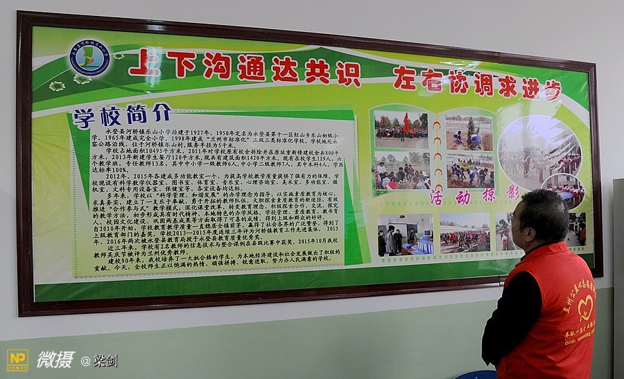志愿者一下车就看到了一张张孩子们的笑脸,和各位老师的热情接,那种默契,那种开心若没有真实的经历过想必是很难体会的。永登河桥镇乐山小学始建于1927年,现有在校学生123人,6个教学班,教师16人