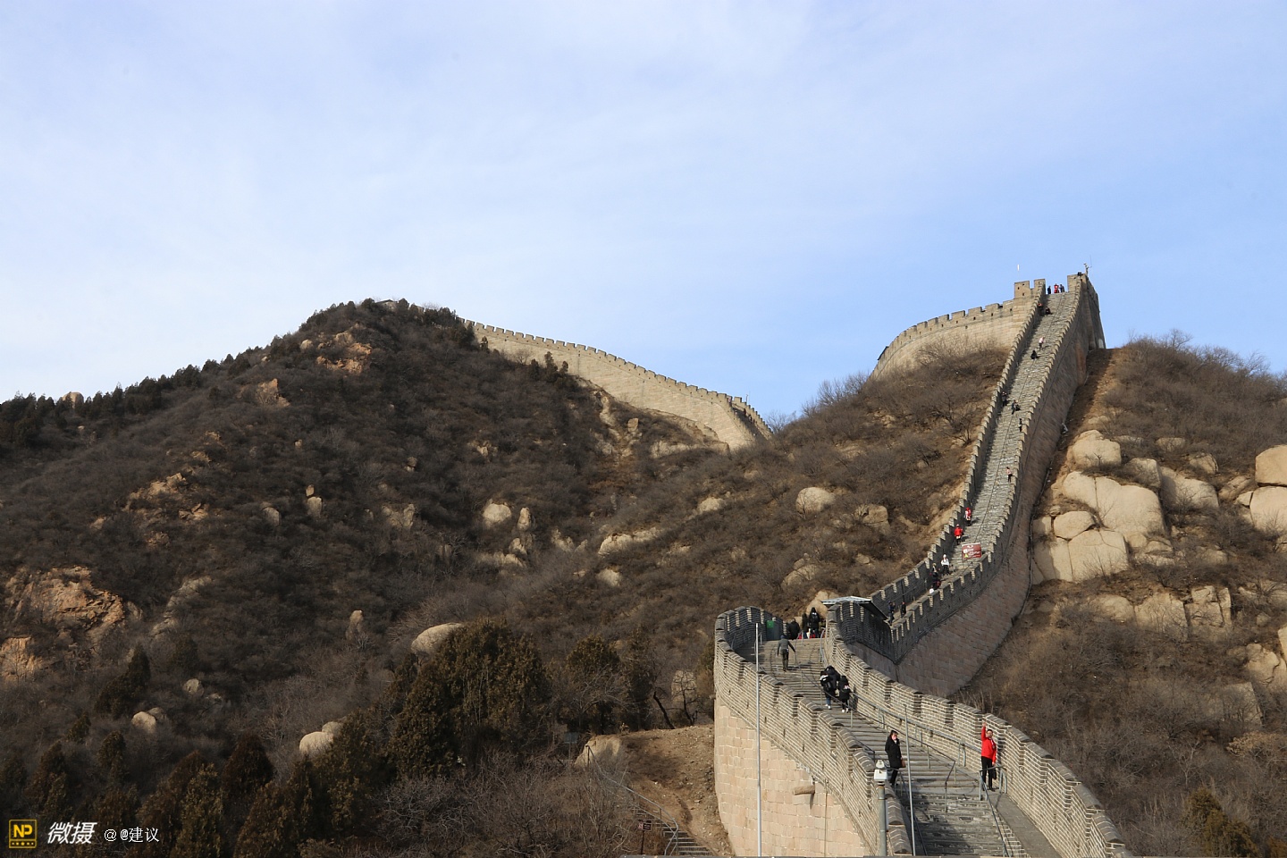 长城壮美走不完美景壮丽看不尽起春秋,历秦汉,及辽金,至元明,上下两千年。数不清将帅吏卒,黎庶百工,费尽移山心力,修筑此伟大工程。坚强毅力,聪明智慧,血汗辛勤,为中华留下巍峨丰碑。跨峻岭,穿荒原,横瀚海,经绝壁,纵横十万里。望不断长龙烽垛,雄关隘口,犹如玉带明珠,点缀成江山锦绣。起伏奔腾,飞舞盘旋,太空遥见,给世界增添壮丽奇观。