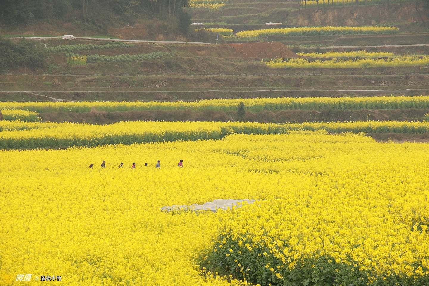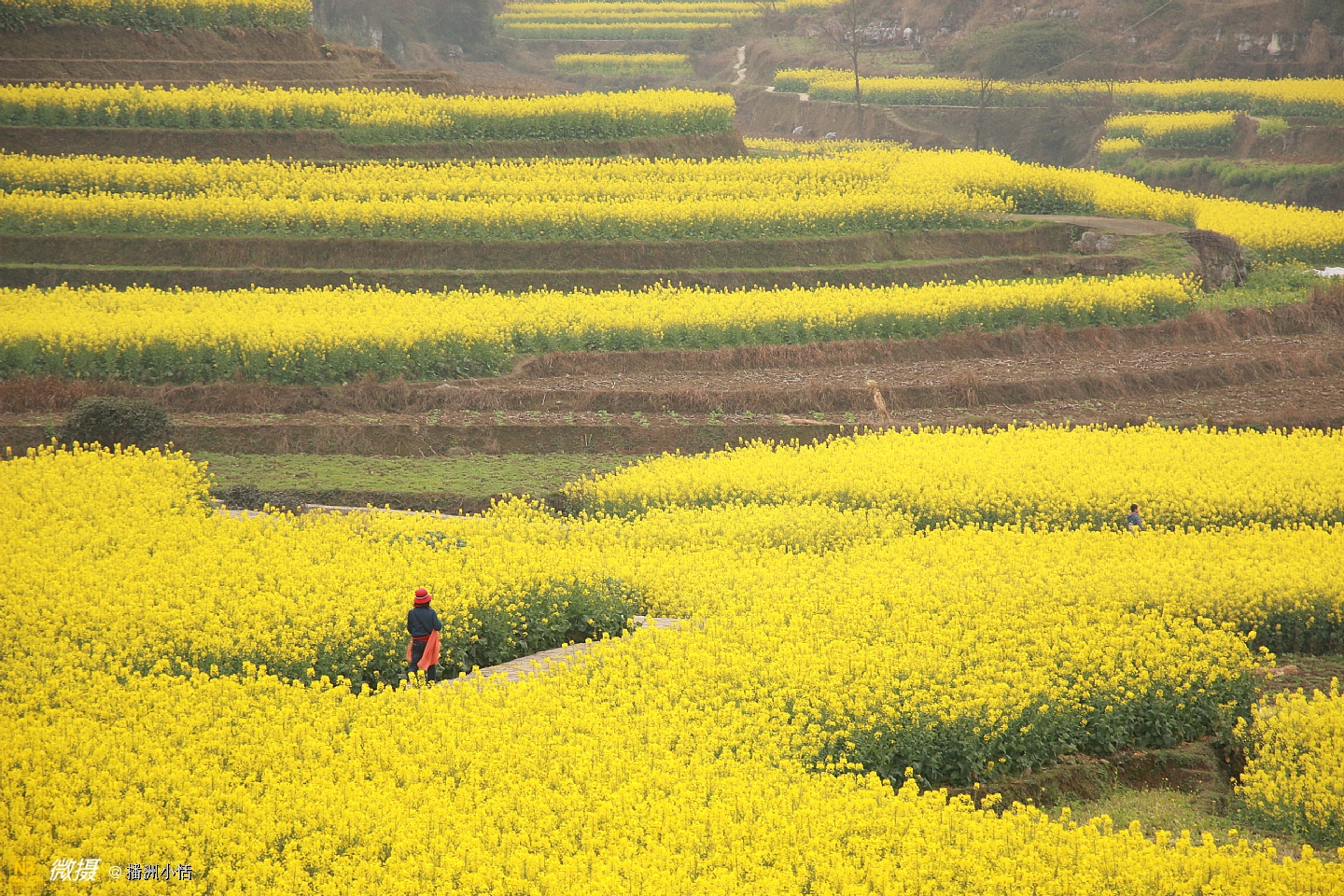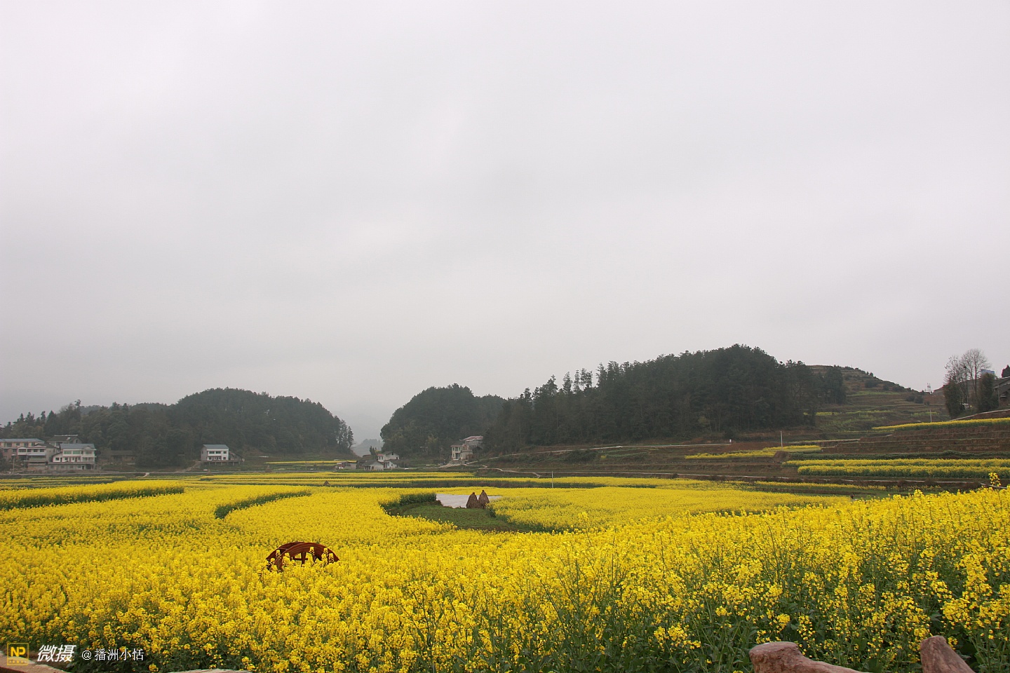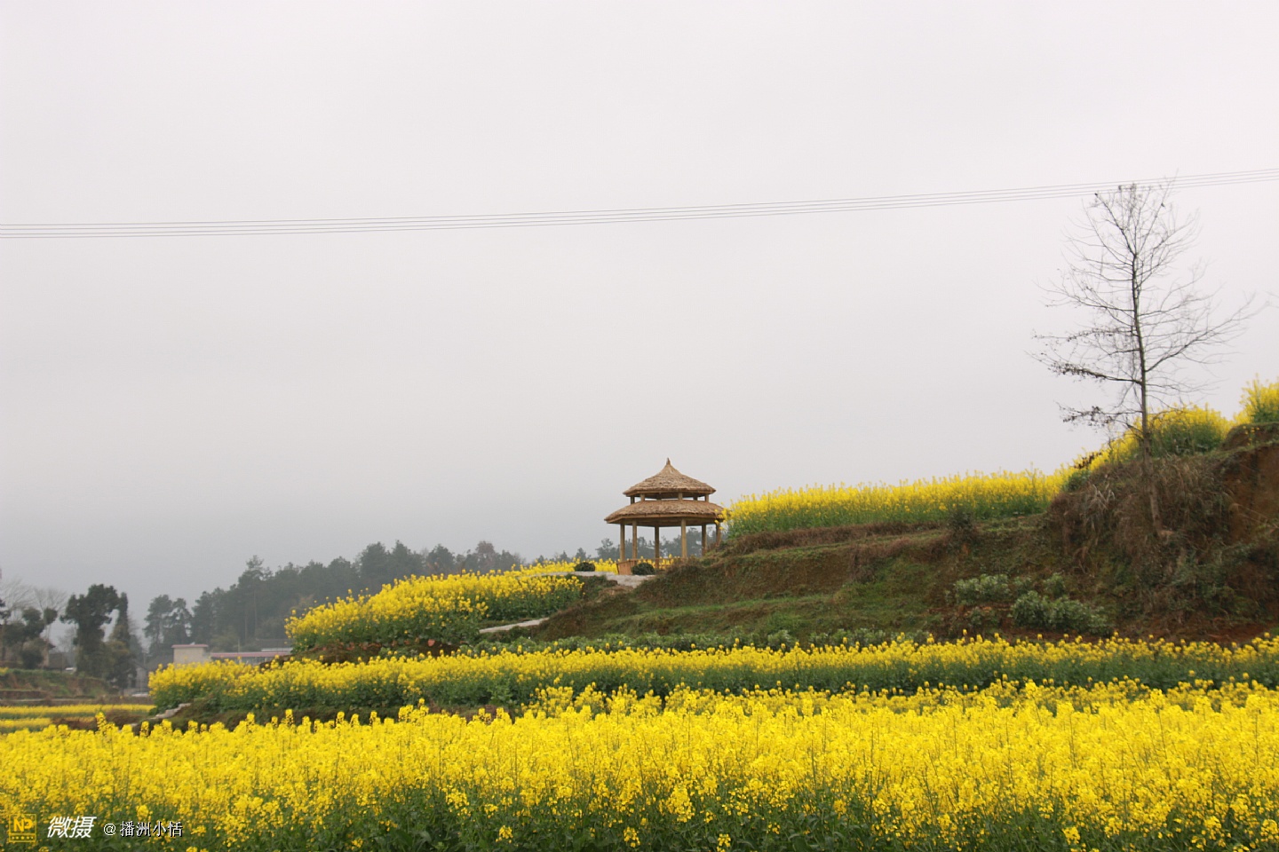 “山枕薄雾隐浓妆,风摇菜花送春芳”描写的就是莲池村美丽的景色。大片大片的油菜花竞相开放,流金溢彩,仿佛是金色的海洋。有的像一条条黄金织成的绸带,环绕山峦,层层叠金,错落有致。置身花海中,沁人心脾的菜花香让人沉醉。花海与村落、亭阁交相辉映,构成一幅绝美的乡居画卷。