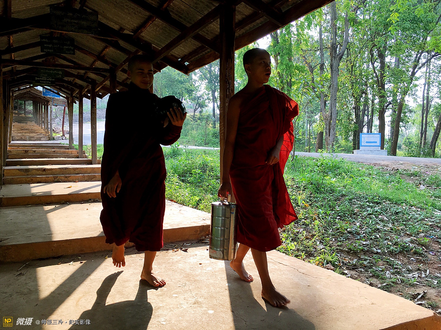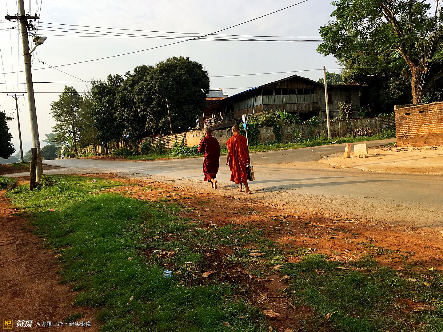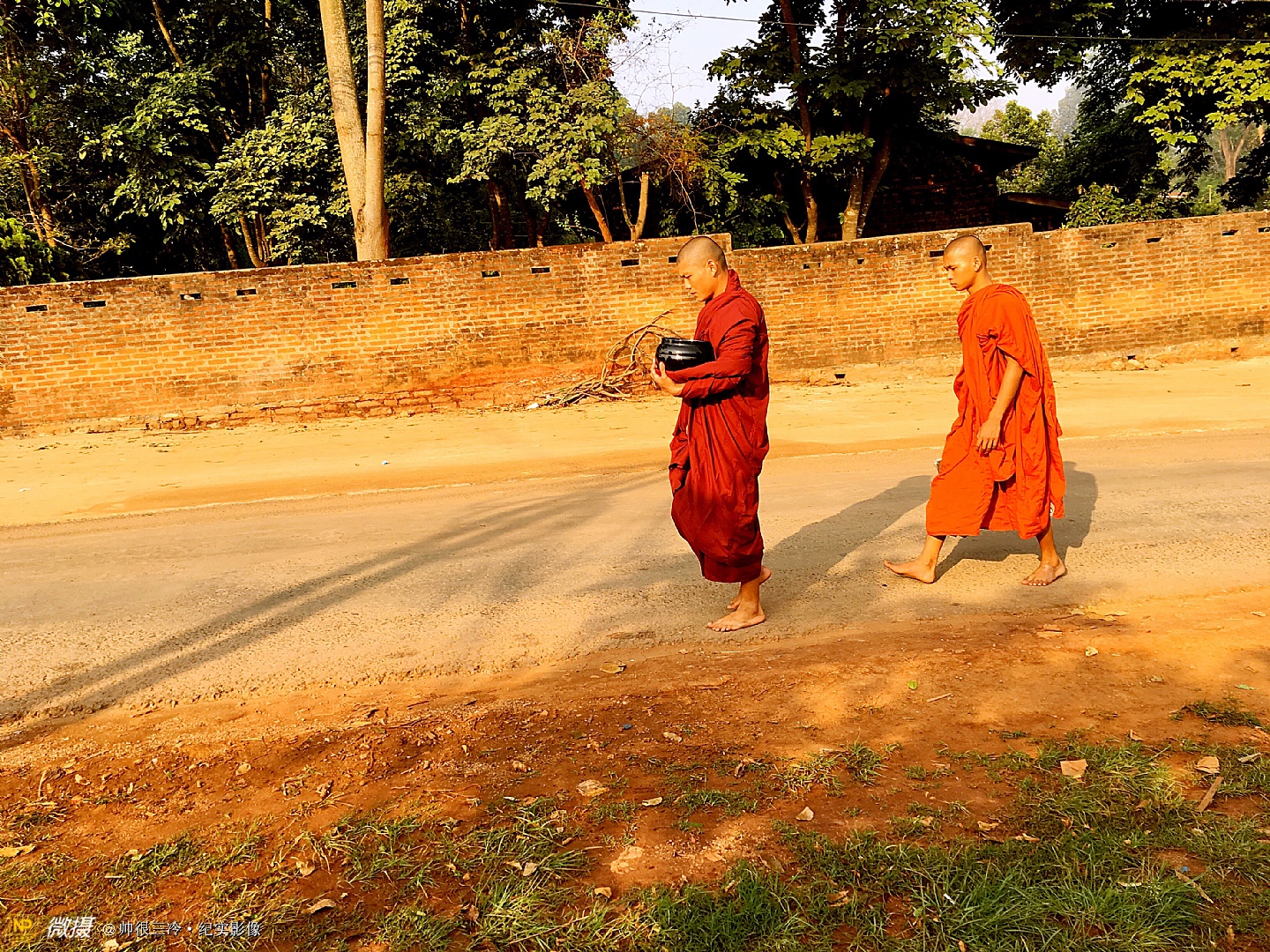 每天到腊戌山晨练,总是遇见小和尚下山化缘