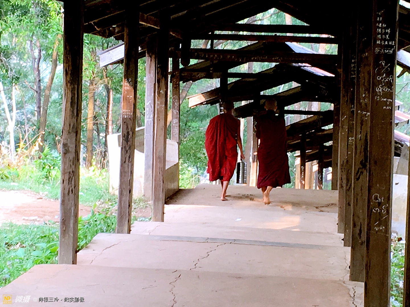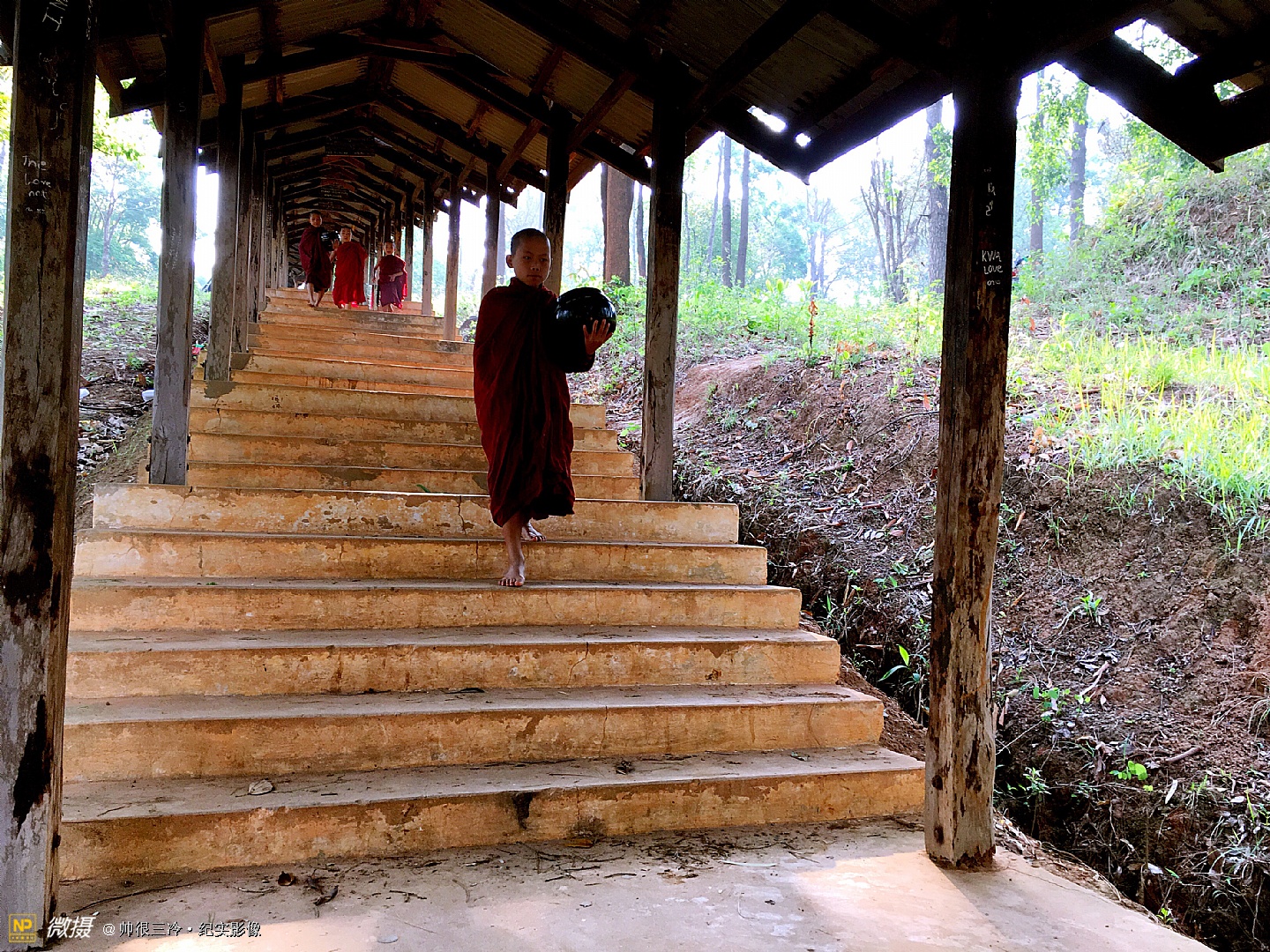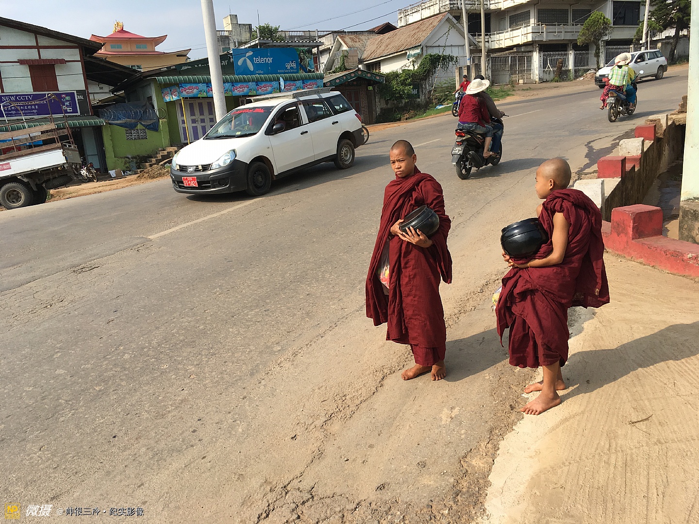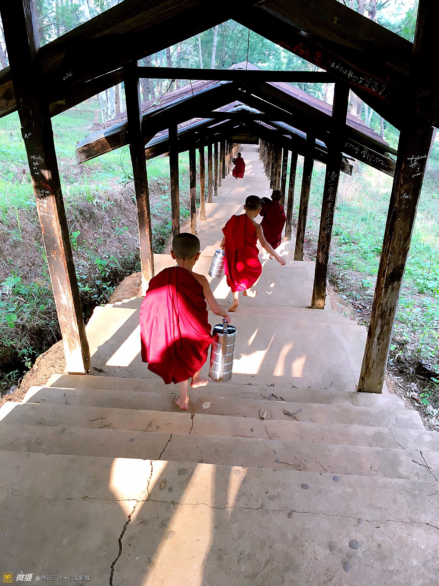 每天到腊戌山晨练,总是遇见小和尚下山化缘