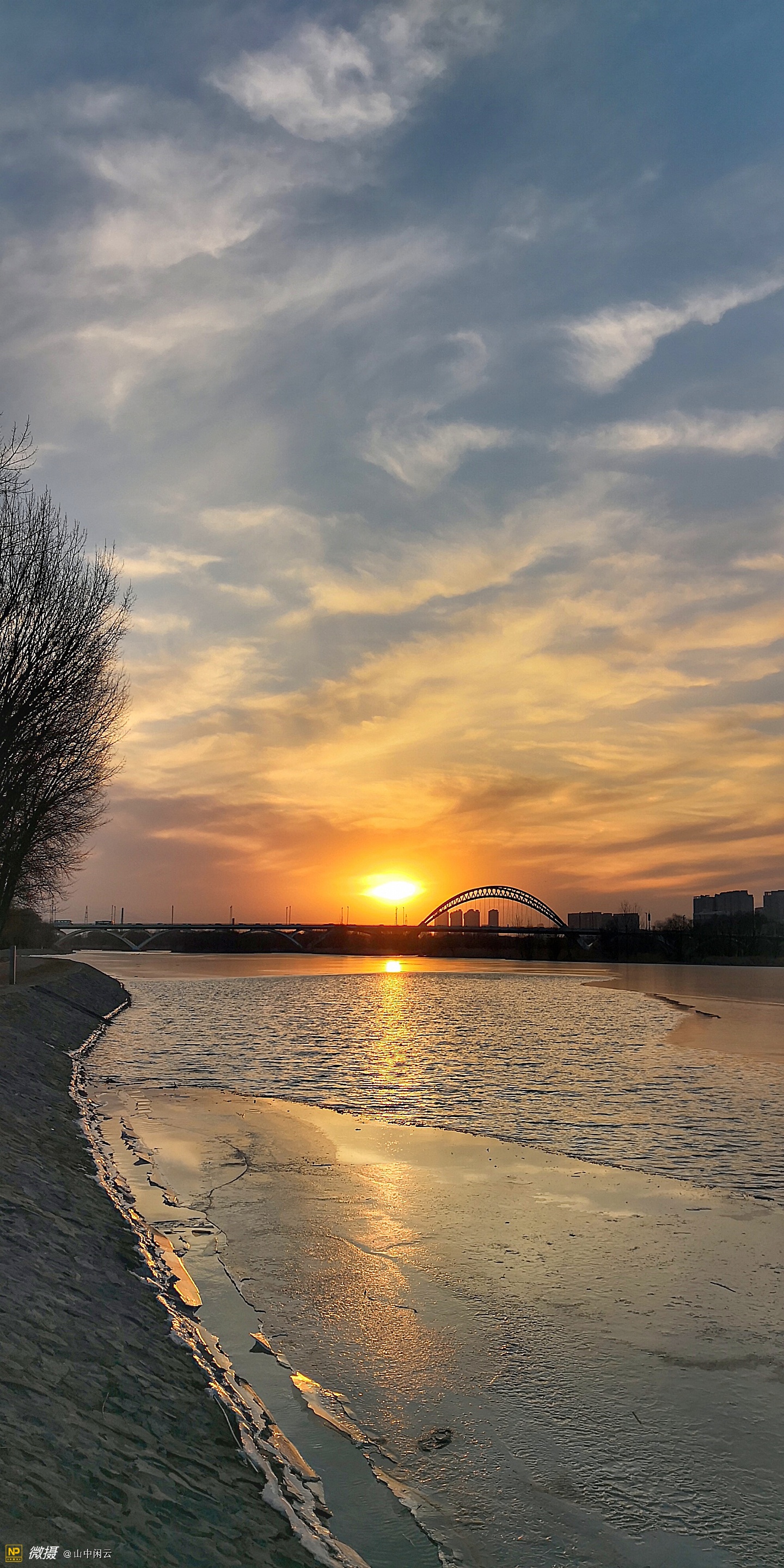 夕阳西下的洛河岸边
