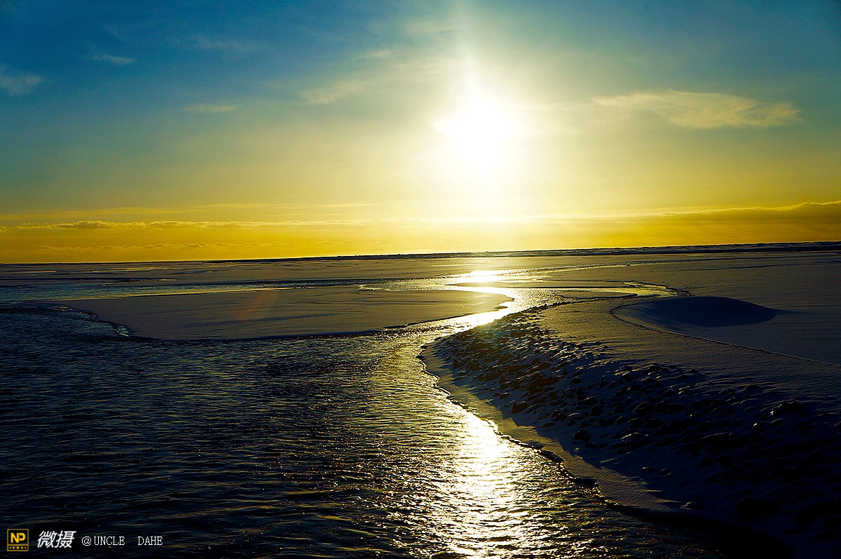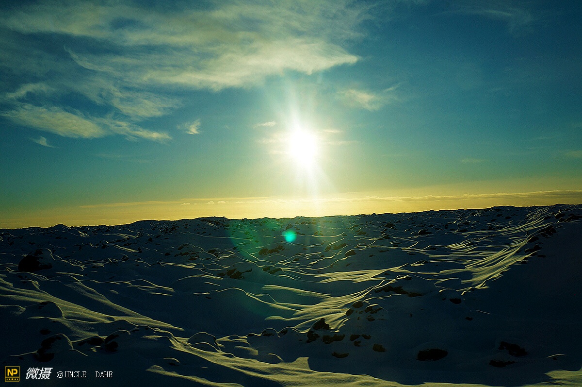 太阳越来越高,光晕照在冰雪的大地上,别有一番韵味。