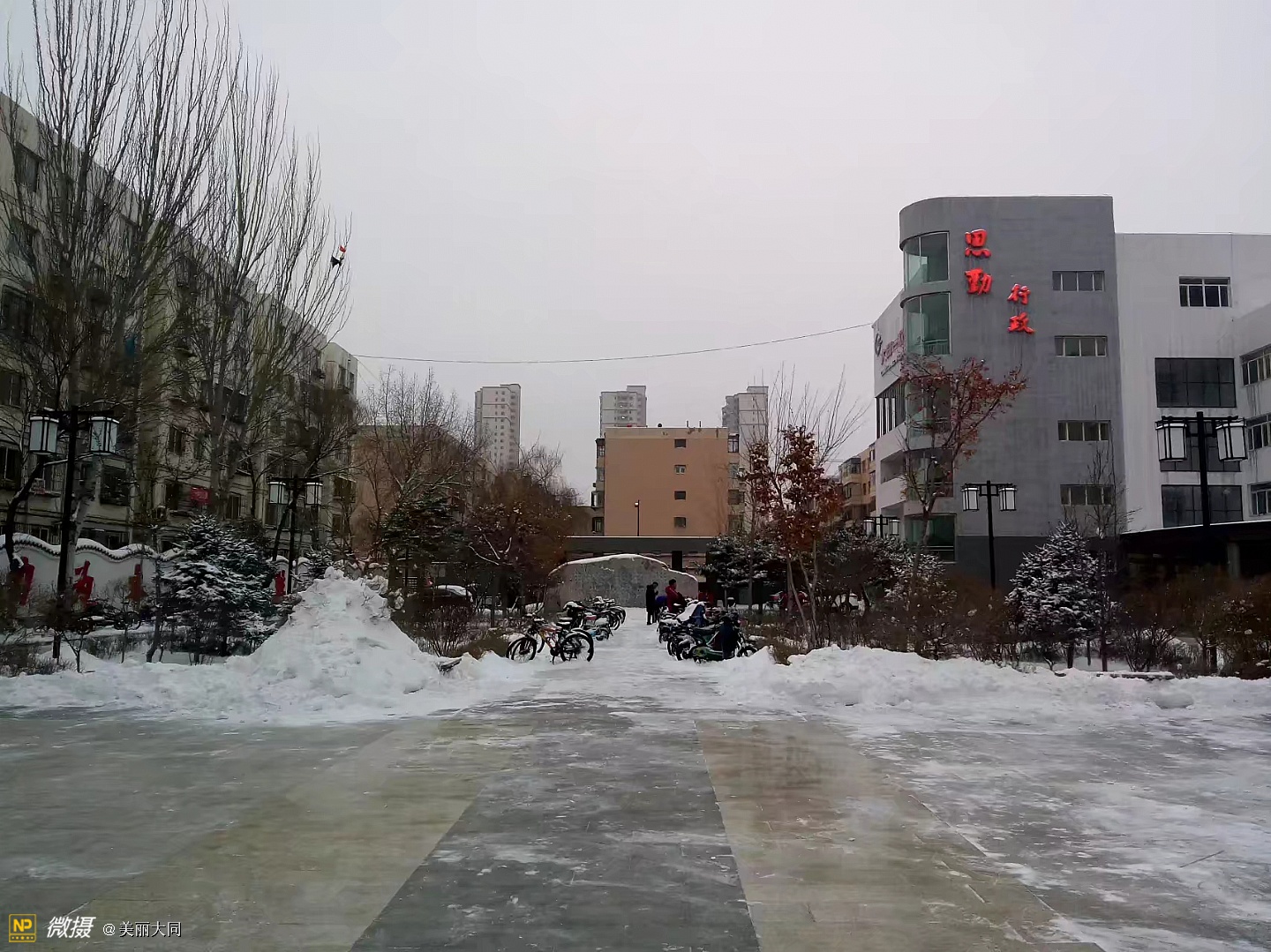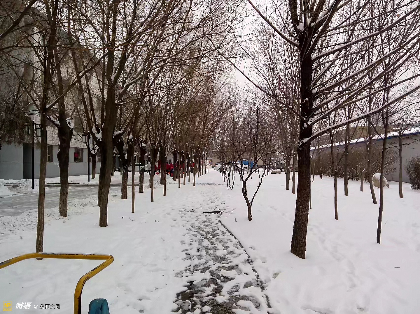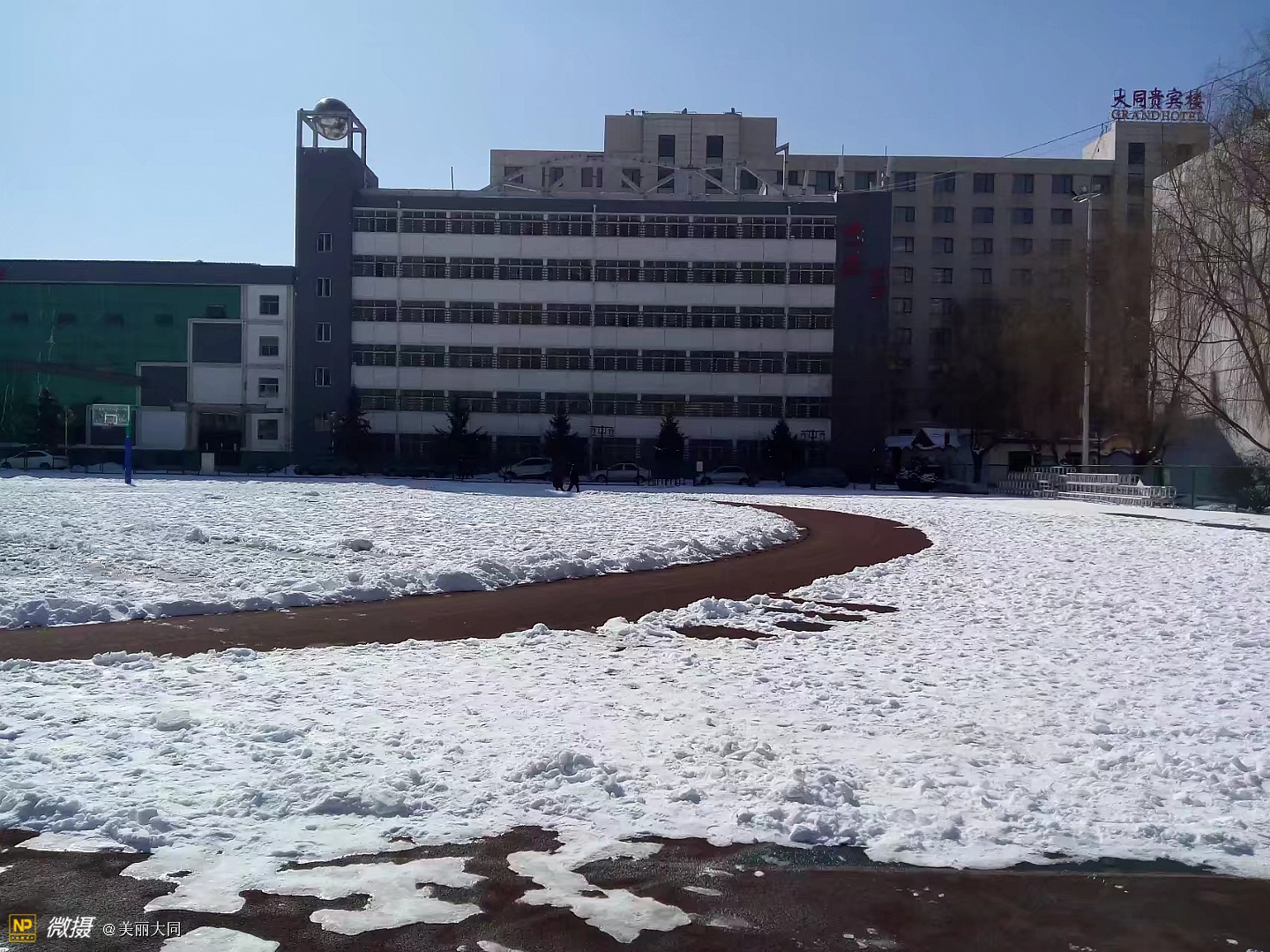 “北国风光,千里冰封,万里雪飘!”给打大同披上了一层洁白的“面纱”,充满了神秘感!同时,净化了空气!也使校园显得格外美丽!