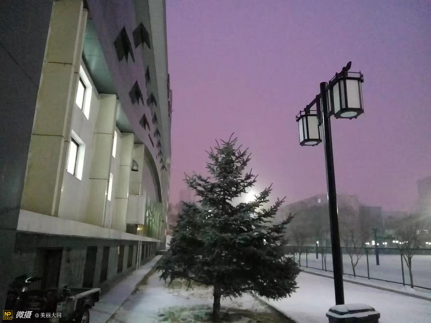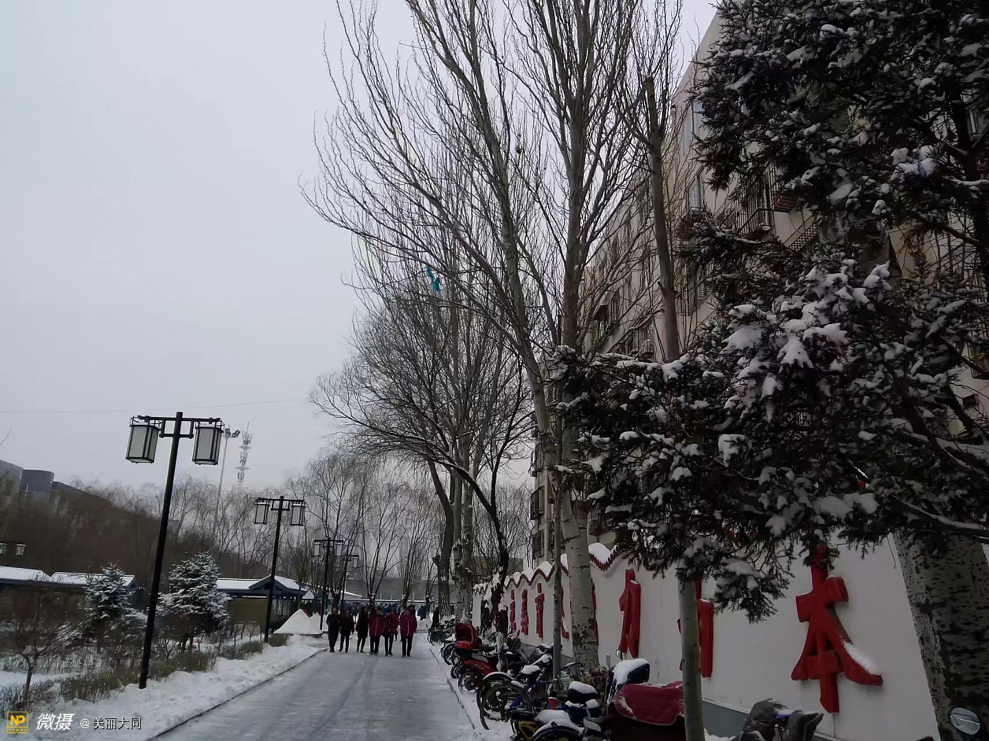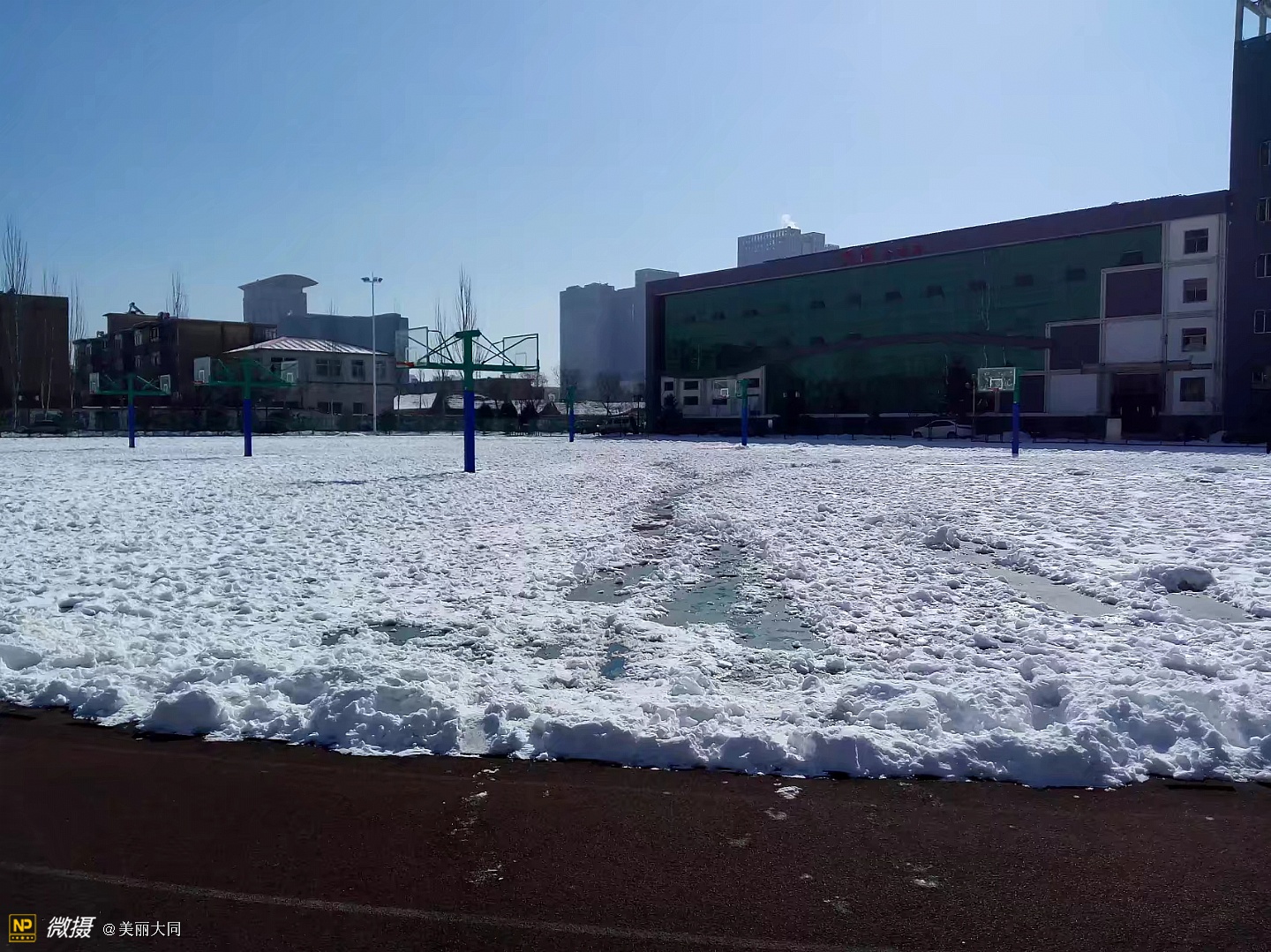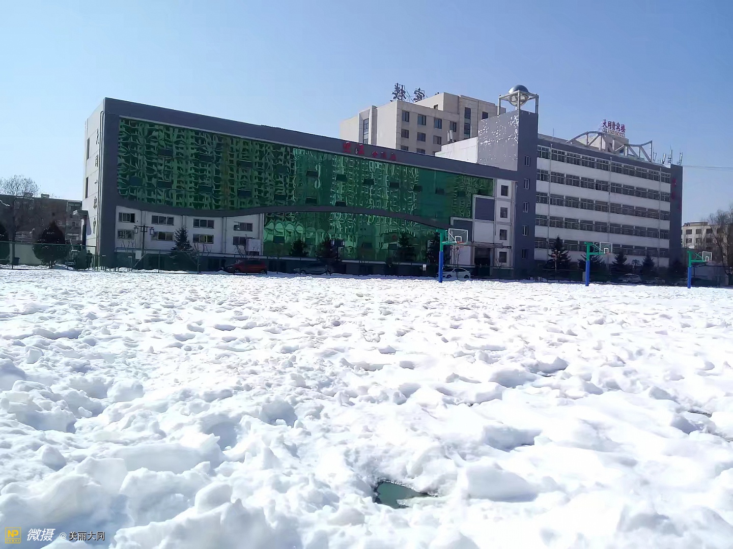 “北国风光,千里冰封,万里雪飘!”给打大同披上了一层洁白的“面纱”,充满了神秘感!同时,净化了空气!也使校园显得格外美丽!