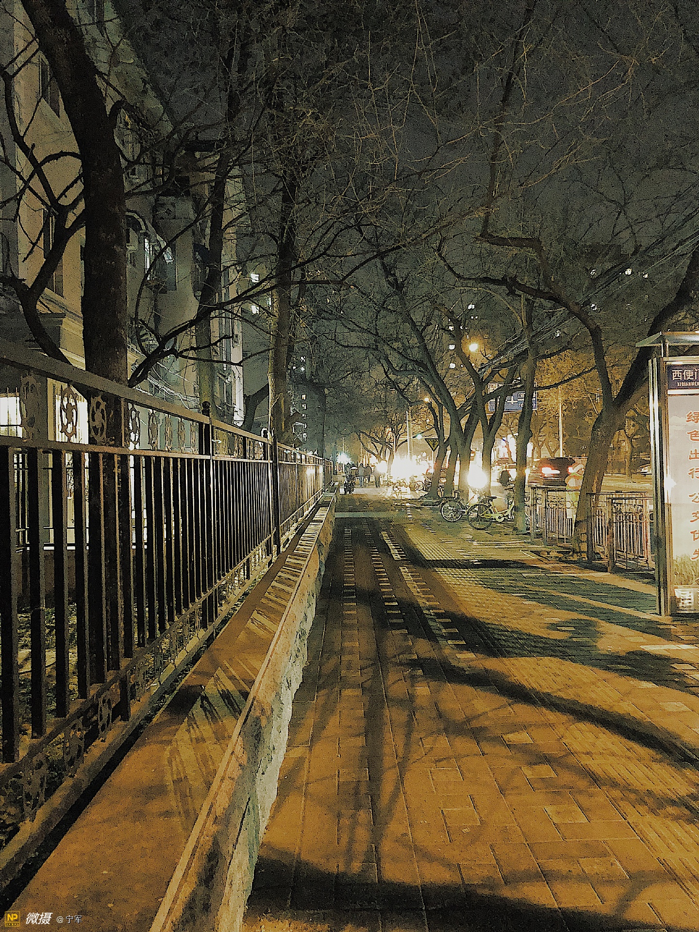 路边整齐的栅栏让我回想起过去的北京…
