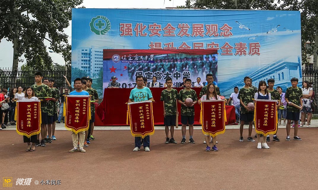 保定容大中学新生军训闭营