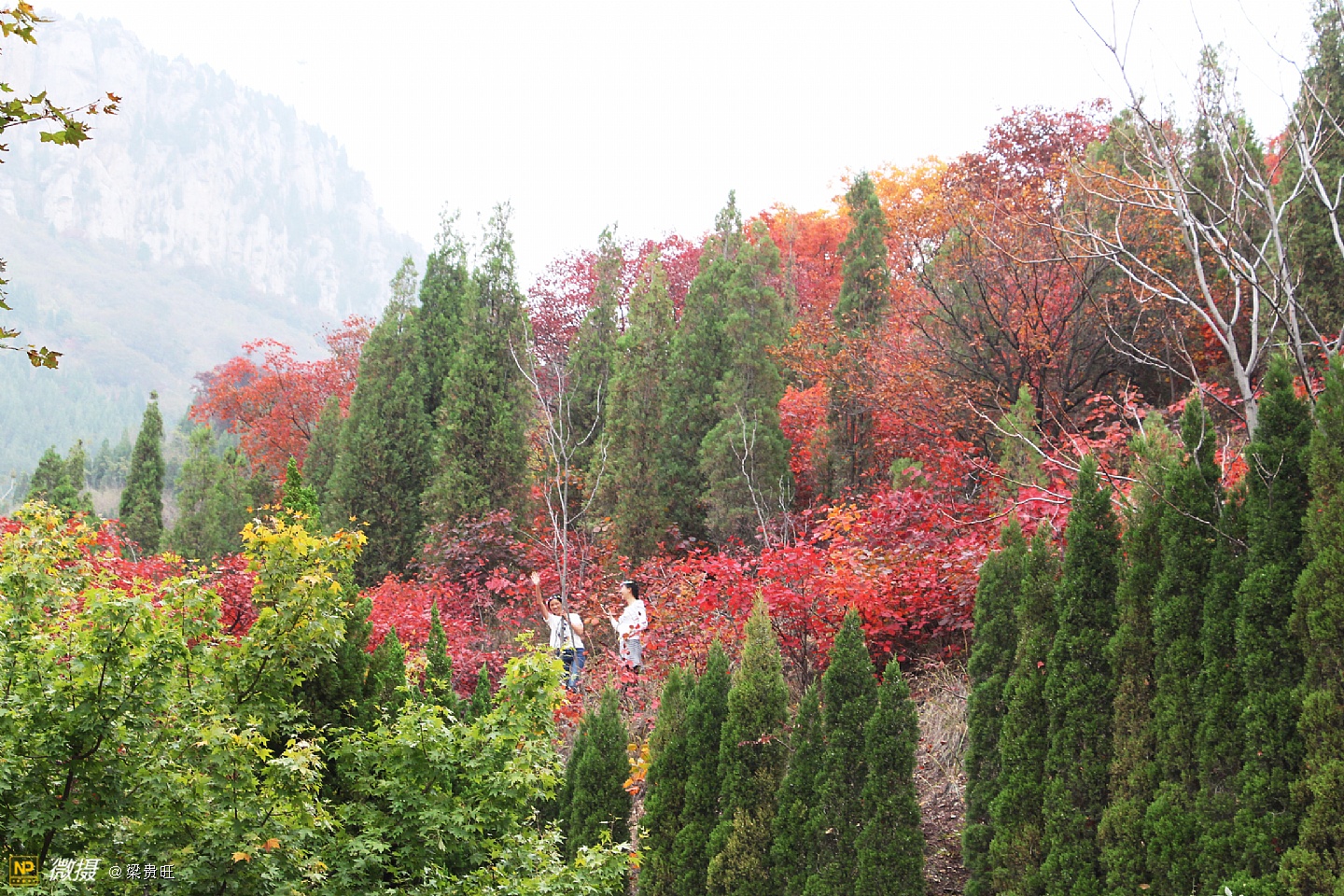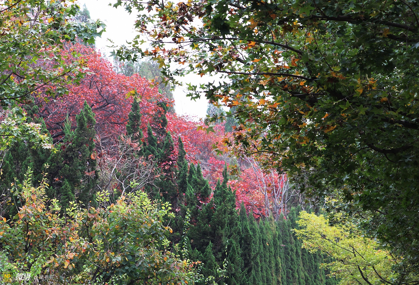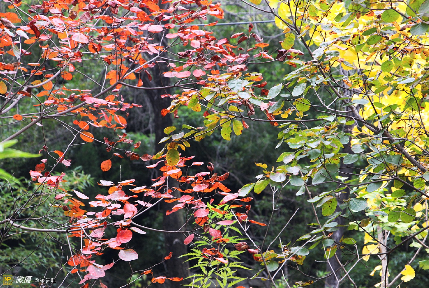 红叶绿叶和黄叶,枝繁叶茂游客多