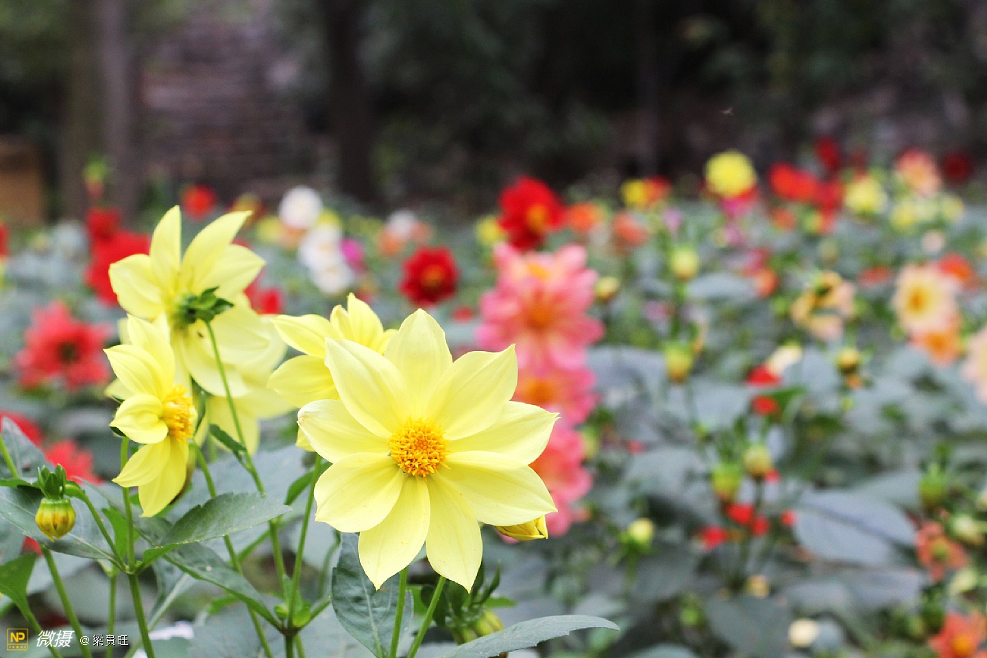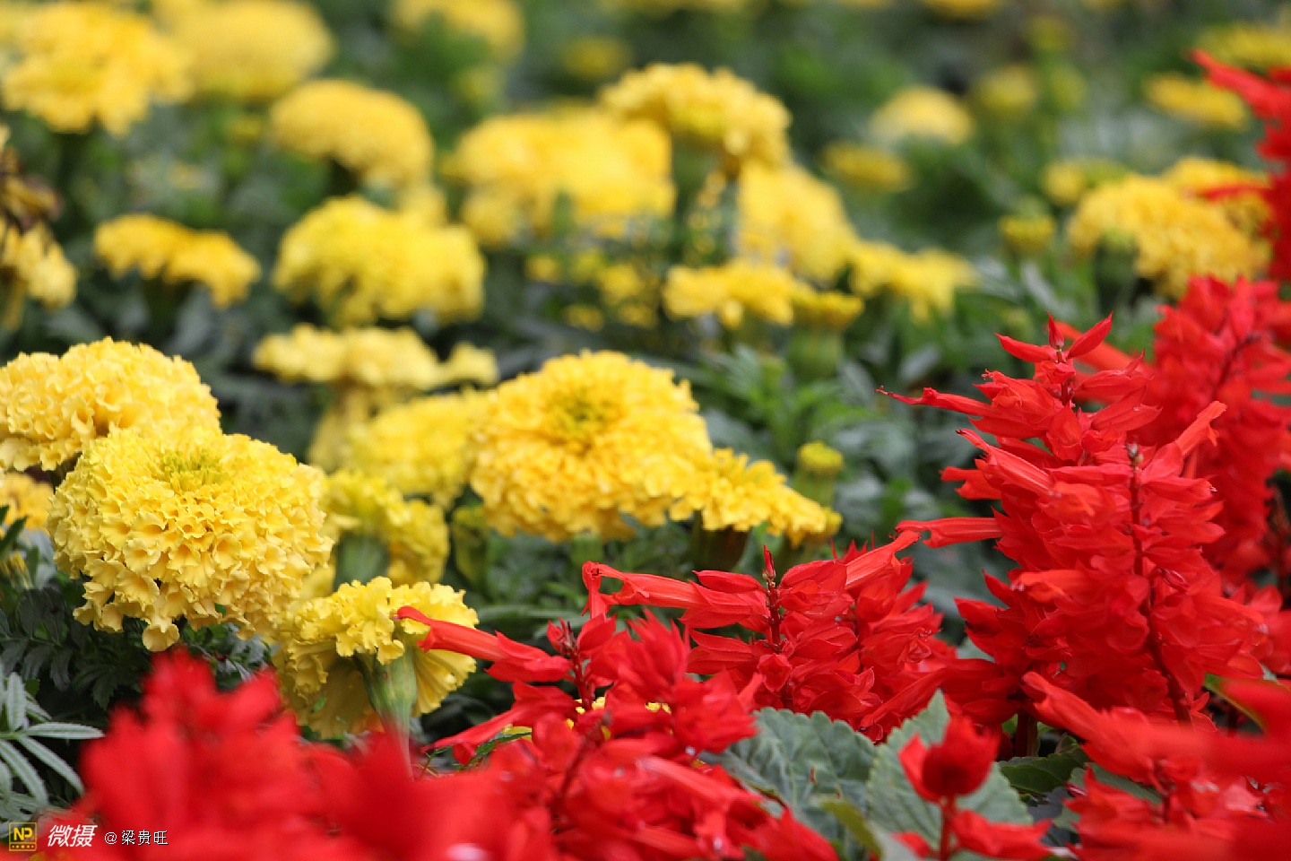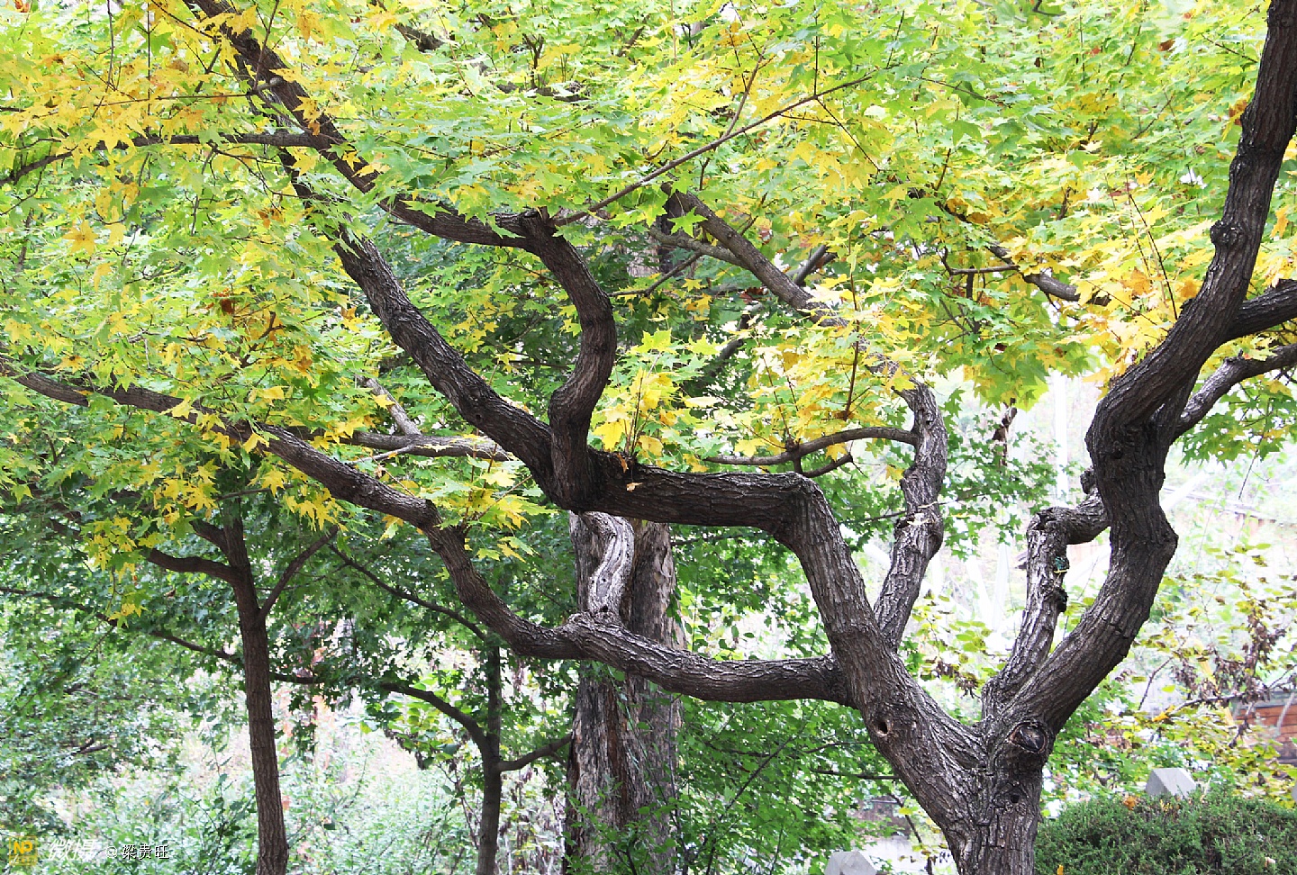 红叶绿叶和黄叶,枝繁叶茂游客多
