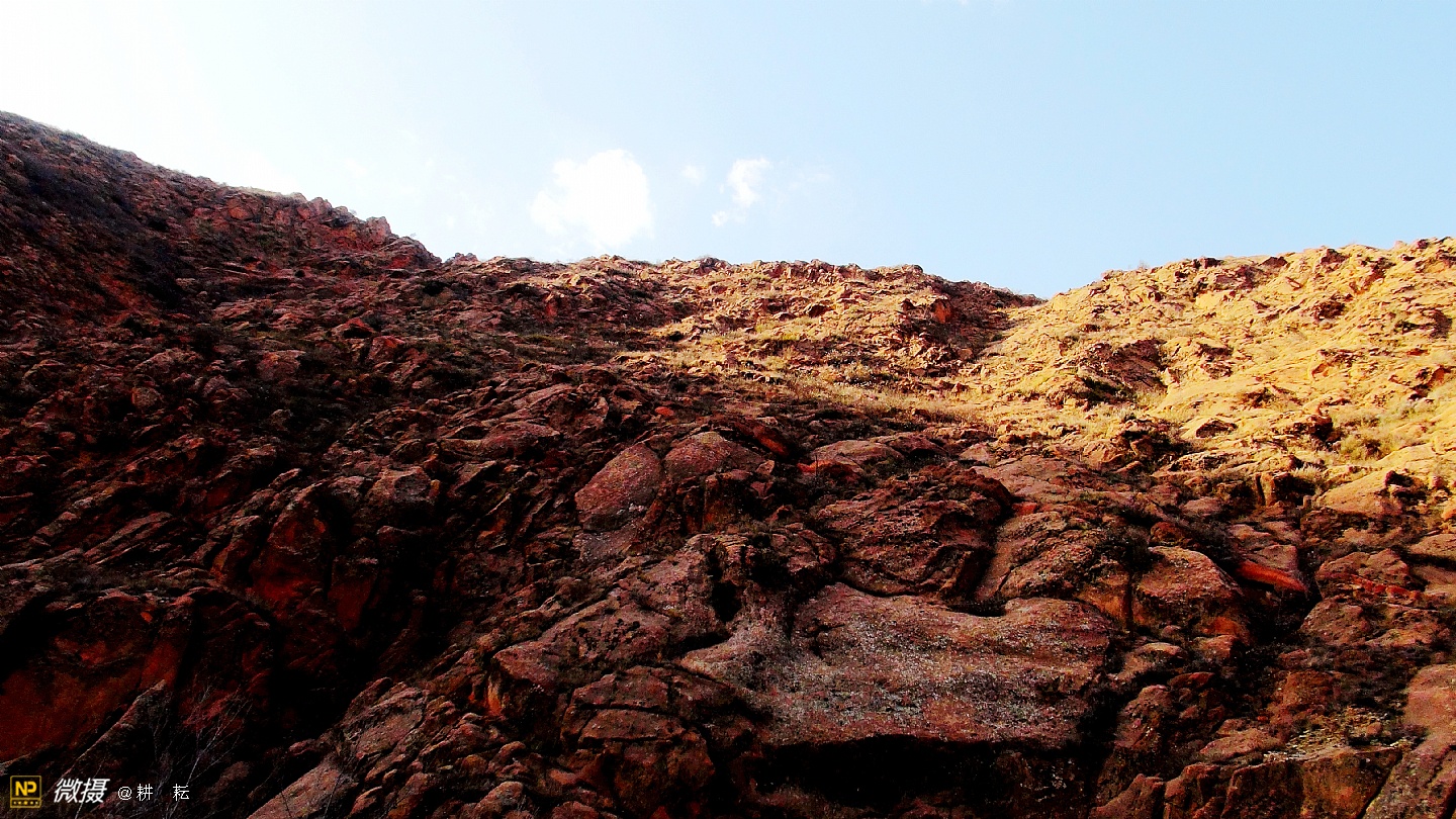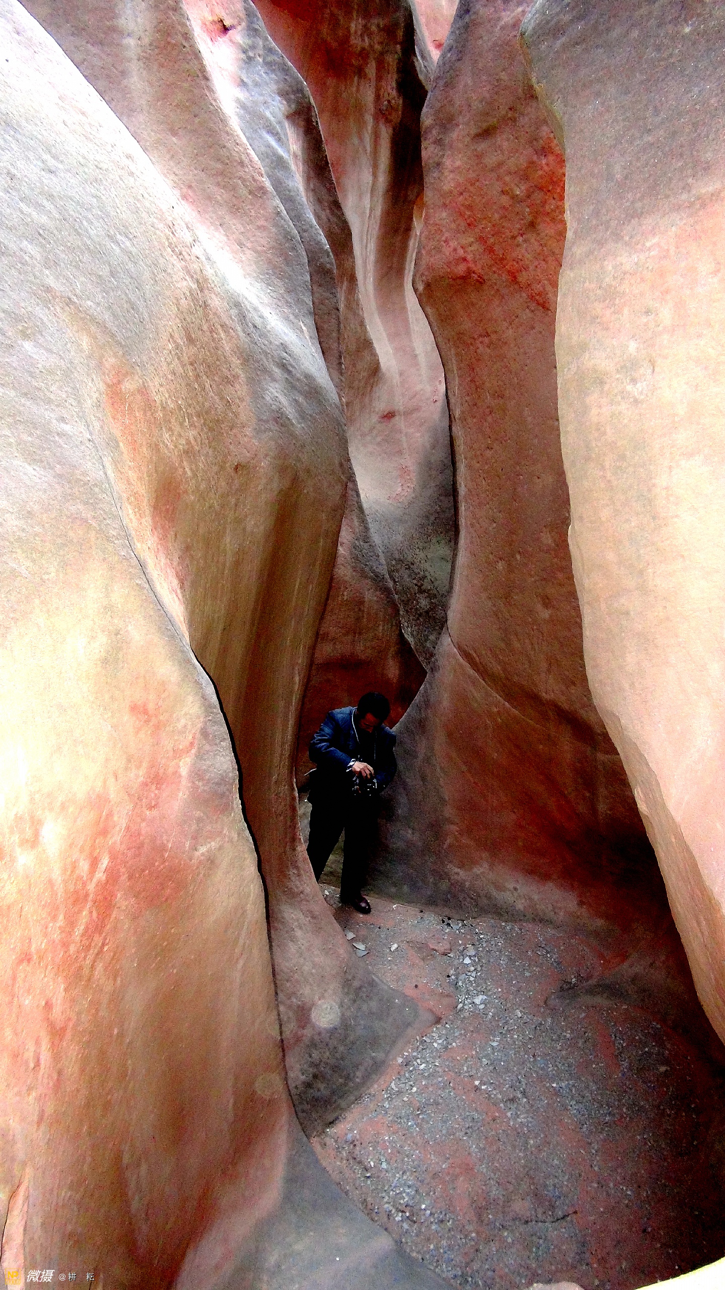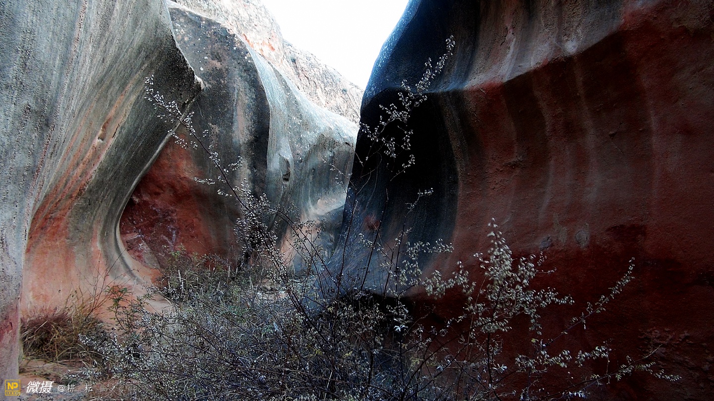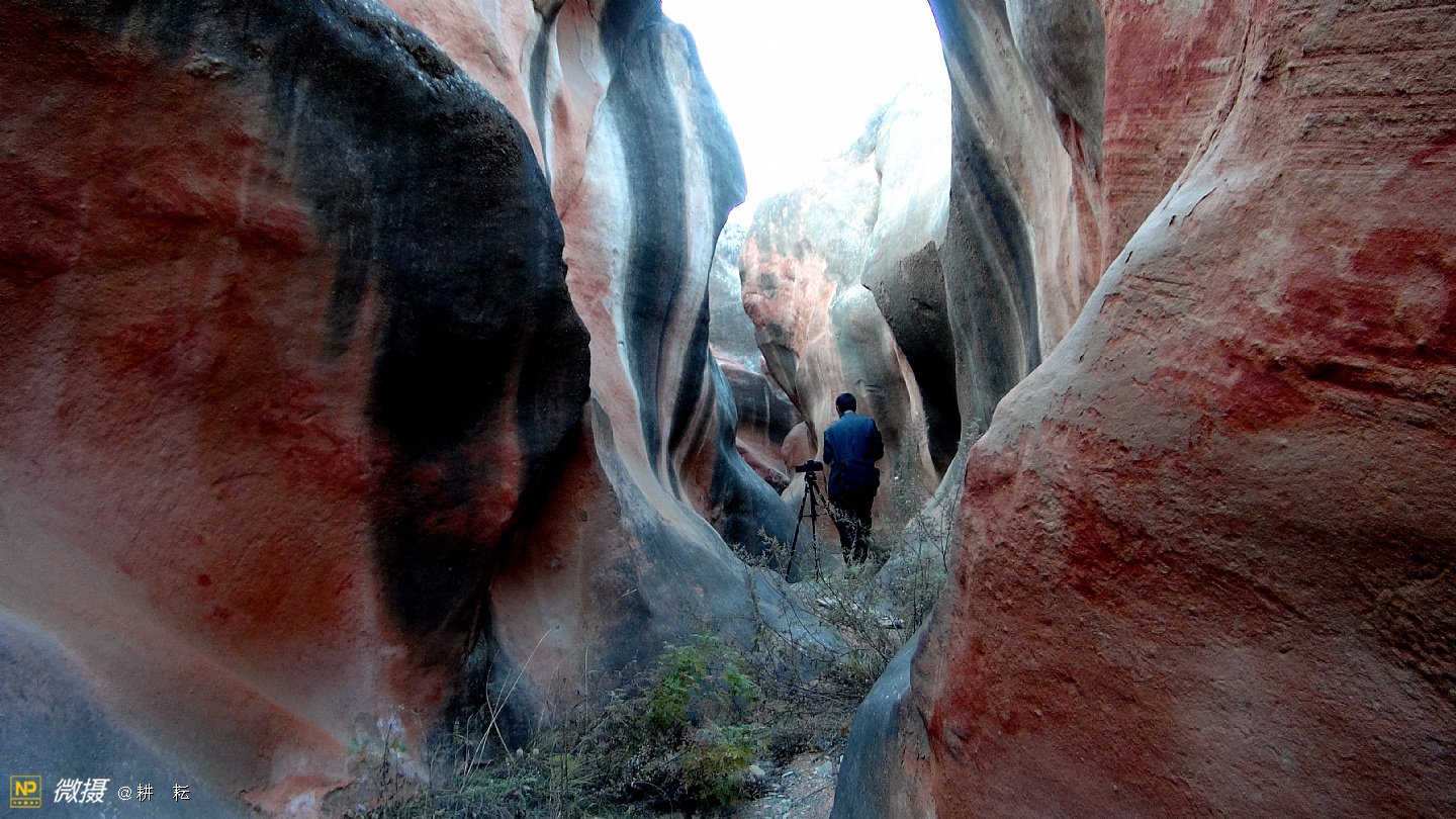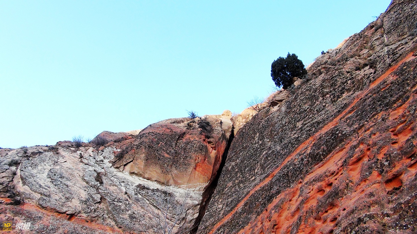 我与一影友走进禅塔山迷魂沟,被眼前奇特的自然景观所吸引,这里的山,红入朝霞千姿百态;石,橙中泛白峥嵘岭峻峭;树,近坡慢云郁郁葱葱;洞,或悬于悬崖峭壁。最后我们又走进狭小的地沟,又被眼前的景观所吸引——
